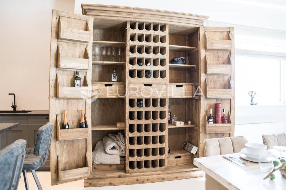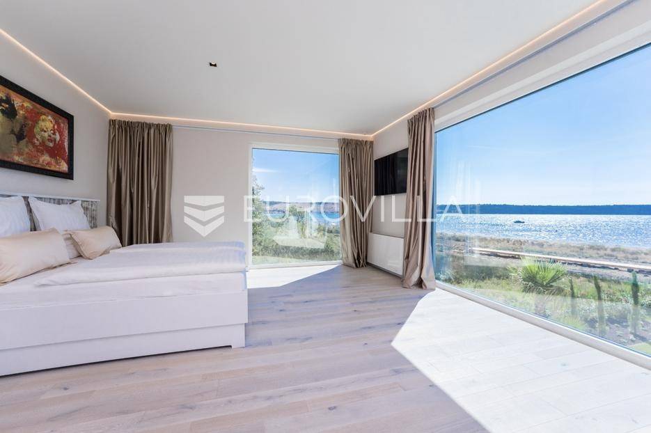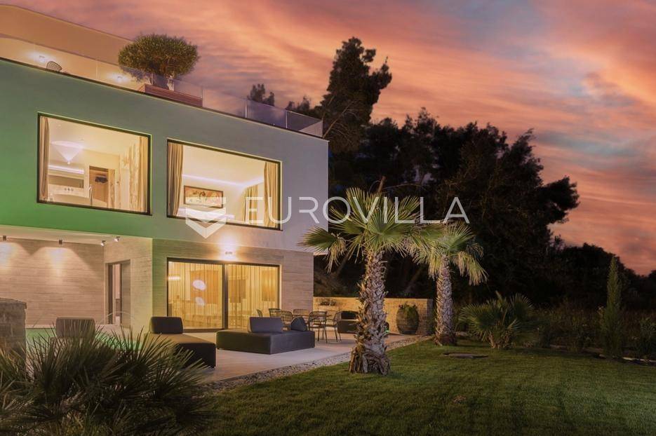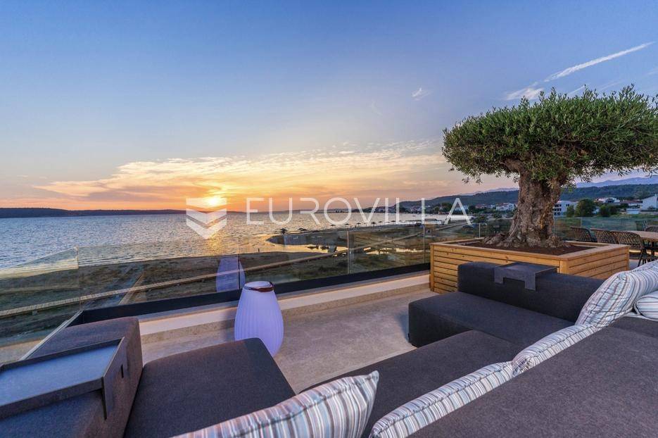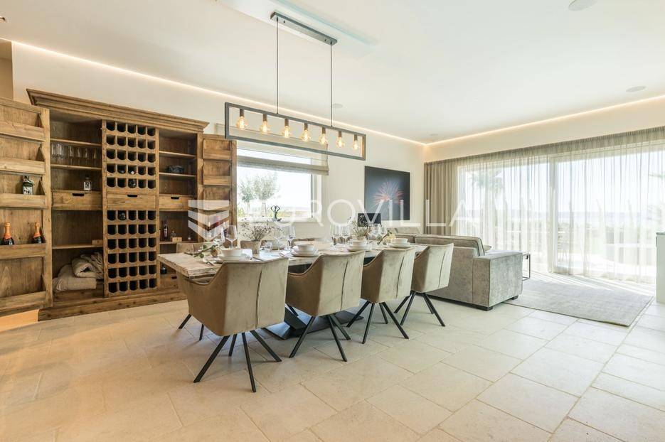 Ekskluzivna moderna vila dovršena 2022. godine, smještena u mirnom obalnom okruženju u neposrednoj blizini mora. Nekretnina je dizajnirana kako bi pružila maksimalnu udobnost, privatnost i luksuz, uz naglasak na panoramske poglede, velike staklene stijene i vrhunske materijale.U prizemlju se nalazi prostrani dnevni boravak povezan s blagovaonicom, otvorena moderno opremljena kuhinja te fitness prostorija s direktnim izlazom na terasu i bazen. Velike staklene stijene omogućuju obilje prirodnog svjetla i kontinuirani kontakt s eksterijerom.Na prvom katu nalaze se tri udobne spavaće sobe, svaka s garderobnim prostorom i vlastitom kupaonicom. Master spavaća soba ima i privatni balkon s pogledom na more.Drugi kat čini velika krovna terasa površine 110 m², osmišljena kao privatna wellness zona. Opremljena je saunom, jacuzzijem, kupaonicom, vanjskim tušem, lounge prostorom, vanjskom kuhinjom i blagovaonicom za deset osoba. S ove etaže pruža se otvoren pogled na more i Velebit. Ugrađen je i Bluetooth zvučni sustav.Okućnica površine oko 560 m² uređena je mediteranskim biljem, starim maslinama, palmama i lavandom. U sklopu dvorišta nalazi se potpuno opremljena zona bazena te natkriveni vanjski prostor za cjelodnevno korištenje. Instaliran je automatski sustav navodnjavanja te sustav video nadzora i alarm. Osigurana su dva parkirna mjesta.Na susjednoj parceli dostupna je opcija kupnje velike garaže dodatne kvadrature sa spremištem i priključkom za e-mobilnost.Vila ima ukupnu stambenu površinu od 316 m², smještena je na parceli od 703 m², a sadrži četiri spavaće sobe i četiri kupaonice. Energetski razred je A+. Cjelokupni interijer izrađen je prema visokim standardima, s uključenim luksuznim sadržajima kao što su bazen, sauna, jacuzzi, dvije potpuno opremljene kuhinje, premium ozvučenje te napredni sigurnosni sustavi.Za dodatno više informacija stojimo na raspolaganju.... Više na eurovilla.hr, ID: 385576
