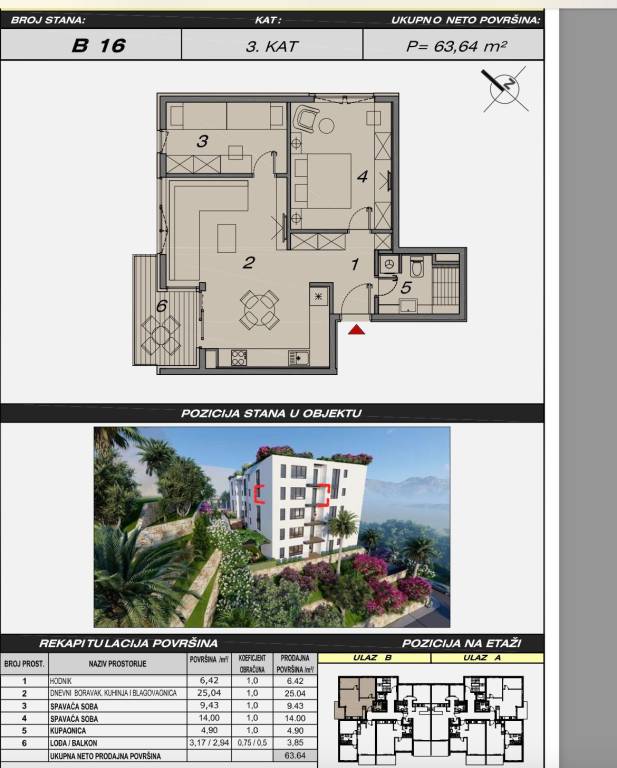 B16Dvosoban stan položen na trećem katu zgrade u izgradnji, površine 63.64m2. Sastoji se od hodnika, dnevnog dijela s kuhinjom, blagovaonom i boravkom, jedne spavaće sobe, kupaonice, lođe i balkona.Izgradnja zgrade započela je sredinom ožujka 2022. godine, a završetak radova se planira do kraja 2023. godine.Zgrada se sastoji od podruma koji će imati dvije etaže (-1 i -2 u kojima će se nalaziti garažna mjesta), visokog prizemlja i 4 kata.Što se tiče gradnje i opremanja, zgrada se gradi visokim standardom i vrhunski će se opremati.Kupci mogu birati hoće li kupiti vanjsko parking mjesto ili unutarnje parking mjesto - garažno parking mjesto (garaža).Za sve ostale informacije stojimo na raspolaganju.... Više na eurovilla.hr, ID: 387780