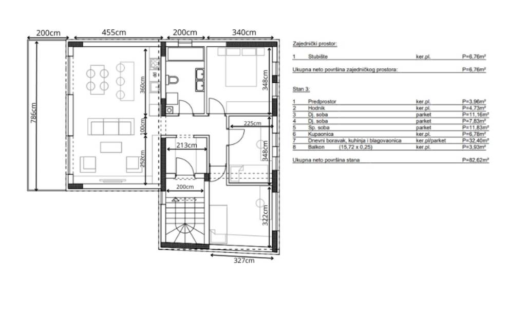 Osijek, Bosutsko naselje - na prodaju je četverosoban stan u sklopu urbane vile koja kreće sa izgradnjom na ljeto 2026. godine.Stan se nalazi na prvom katu urbane vile te ima ukupnu korisnu površinu od 82,62 m2, uz balkon površine 15,72 m2. Riječ je o četverosobnom stanu koji se sastoji od ulaznog hodnika, dnevnog boravka s kuhinjom i blagovaonicom u otvorenom prostoru s izlazom na balkon, tri spavaće sobe, kupaonice s WC-om, zasebnog toaleta te ostave.U stanu je predviđeno podno grijanje na plinski sustav, PVC stolarija s roletama, protuprovalna vrata, video portafon te priprema za ugradnju klima uređaja. Energetski razred zgrade je A. Uz stan je osigurano i parkirno mjesto.Planirani početak izgradnje urbane vile predviđen je za ljeto 2026. godine, dok se završetak radova očekuje tijekom zime 2027. godine.Nekretnina se nalazi u Bosutskom naselju, u blizini javnog prijevoza, trgovačkog centra Mercator, škola, vrtića i glavnih prometnica te novoplanirane bolnice.Za sva dodatna pitanja i informacije stojimo Vam uvijek na raspolaganju!... Više na eurovilla.hr, ID: 434907