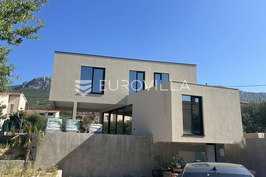 U Kaštel Gomilici prodaje se namještena predivna luksuzna vila neto površine 152 m2 koja se nalazi na zemljištu površine 406 m2 i sastoji se od tri etaže, suterena, prizemlja i kata međusobno povezane unutrašnjim stubištem.U suterenu se nalaze pomoćne prostorije (praonica, ostava, strojarnica za bazen i mala teretana).U prizemlju se nalazi prostrani dnevni prostor s moderno opremljenom kuhinjom i blagovaonicom, radnom sobom, kupaonicom, garderobom, ostavom i predsobljem sa stubištem koje vodi na kat kuće. Iz dnevnog boravka se izlazi na prekrasnu veliku terasu i dvorište gdje se nalazi grijani bazen površine 24 m2, natkriveni roštilj i prostor za blagovanje na otvorenom.Na katu kuće se nalaze tri spavaće sobe s dvije prostrane kupaonice i prostranom terasom.Dvorište vile je potpuno ograđeno, što pruža nesmetanu privatnost prilikom boravka u istom a vila raspolaže s 5 parking mjesta i jednom punionicom za električna vozila.Vila je građena kvalitetnim materijalima I opremljena vrhunskom opremom (video nadzor, ambijentalna rasvjeta okućnice).Vila je građena betonom, fasada ima toplinsku izolaciju od 15 cm a ravni krov ima četverostruku izolaciju s garancijom od 10 godina.Stolarija je od vrhunskog aluminija s izo staklom, a vila ima solarno grijanje za vodu.Svaka soba je klimatizirana i uvedeno je podno grijanje u kupaonicama a podovi su od mikrobetona.Blizina svih sadržaja - škole, trgovine, prometne povezanosti - čini ovu nekretninu izvrsnom prilikom za obiteljski život ili kao investiciju za turistički najam.Za sva dodatna pitanja naravno stojim na raspolaganju.... Više na eurovilla.hr, ID: 447017
