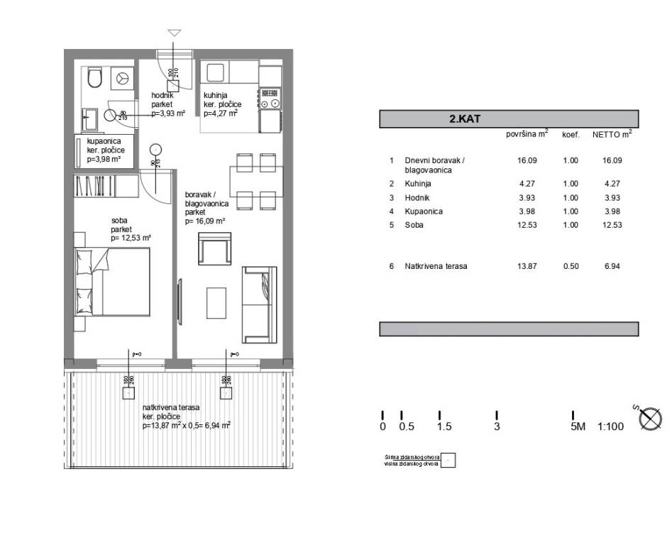 Zadar, Borik, NOVOGRADNJA, moderan stan zatvorene površine 40,79 m2 na 2. katu izvrsne zgrade izgrađene 2023. godine na idealnoj lokaciji u neposrednoj blizini centra grada, odlična prometna povezanost, blizina svih bitnih sadržaja.Stan se sastoji od ulaznog prostora, dnevnog boravka, kuhinje i blagovaonice otvorenog tlocrta s izlazom na natkrivenu terasu 13,87 m2, kupaonice i spavaće sobe. Pripada mu vanjsko parkirno mjesto 13,75 m2. Ukupno obračunski 53,94 m2.Potpuno opremljen i namješten. Hrastov pod, klimatizirano, televizor, alu stolarija, protuprovalna vrata…Sve dodatne informacije na upit.... Više na eurovilla.hr, ID: 471732