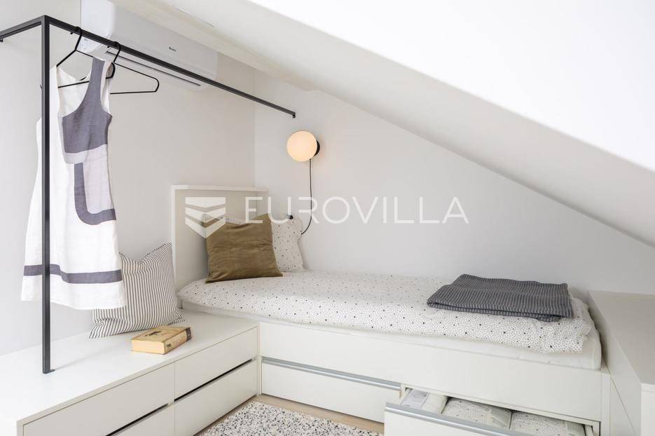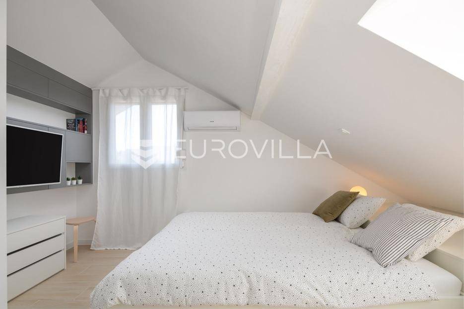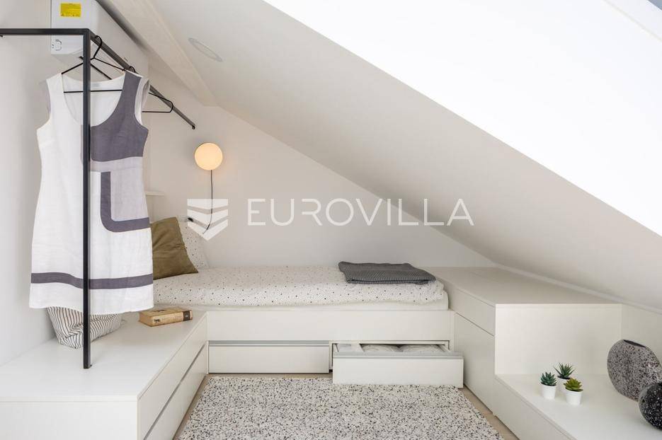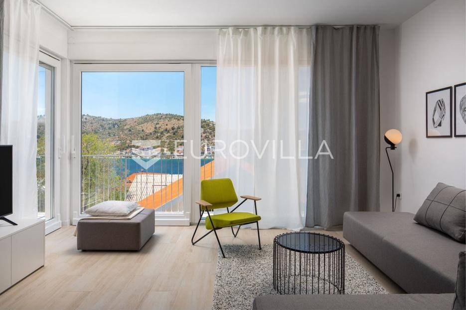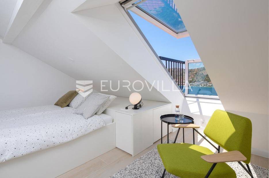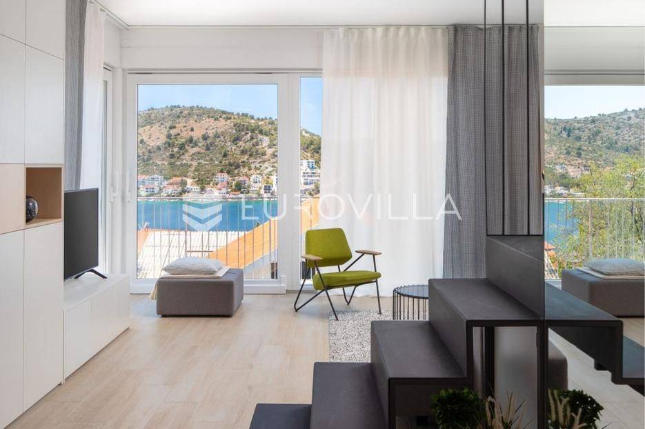 Rogoznica, prekrasan dvoetažan dvosoban stan zatvorene površine 88,05 m² na prvom katu moderne zgrade izgrađene 2023. godine. Pripadaju mu dva parkirna mjesta i ostava. Stan se prodaje nenamješten, no može se dogovoriti namještanje kao na fotografijama. Ukupno obračunski neto korisne površine 77,60 m².Donja etaža se sastoji od prostranog dnevnog boravka s kuhinjom i blagovaonicom, kupaonice te balkona s prekrasnim pogledom na more. Na gornjoj etaži nalaze se dvije spavaće sobe. U stanu su velike staklene stijene koje stanu daju puno prirodne svjetlosti, te otvaranjem pretvaraju stan u poluotvorenu terasu.Izvrsna mikrolokacija, mirna ulica u blizini prekrasnih plaža. Udaljenost do plaže je 150 metara, a do centra Rogoznice 500 metara.Za sve ostale informacije stojimo na raspolaganju.... Više na eurovilla.hr, ID: 507532