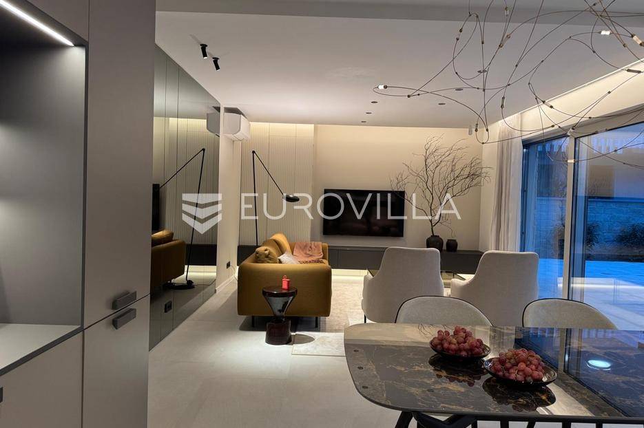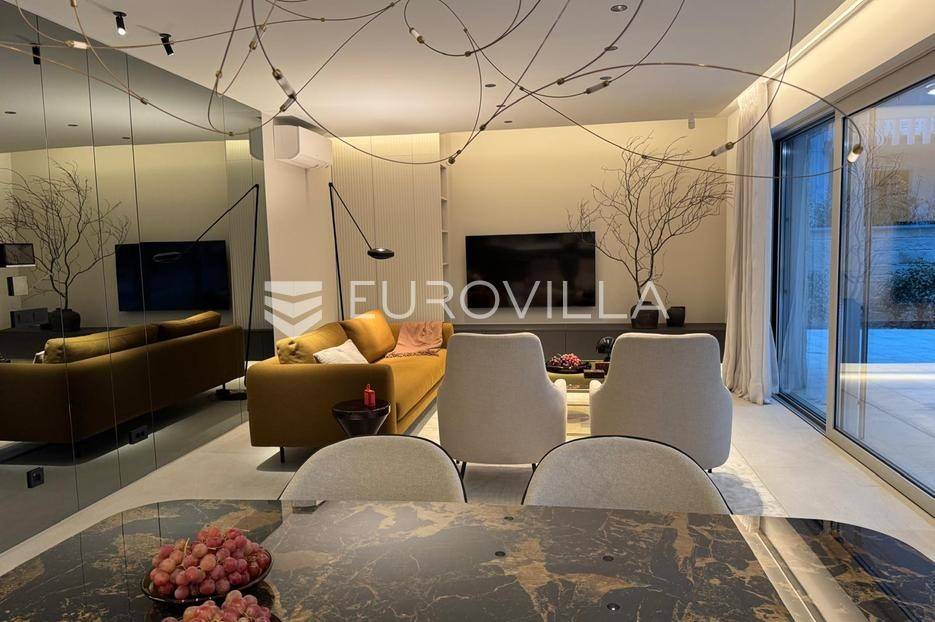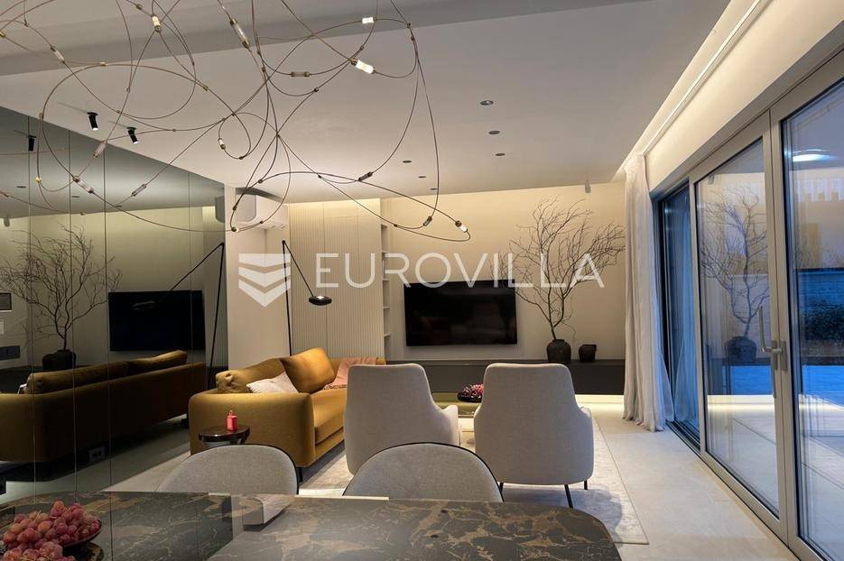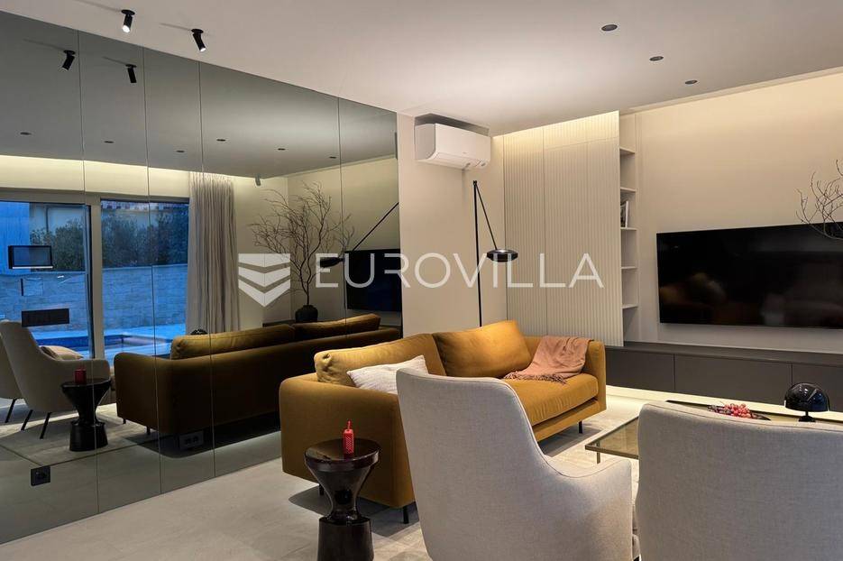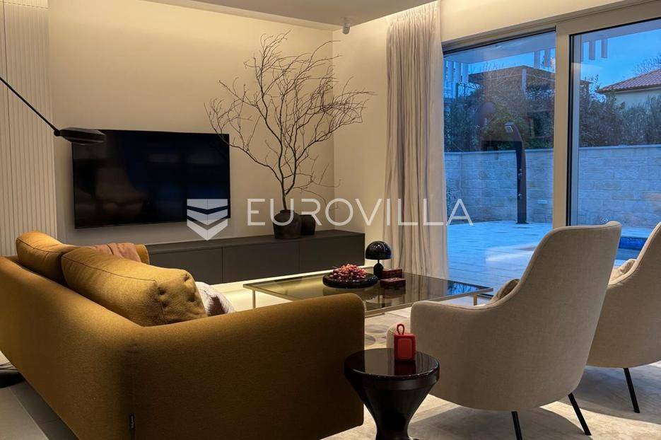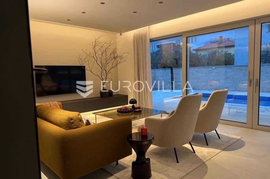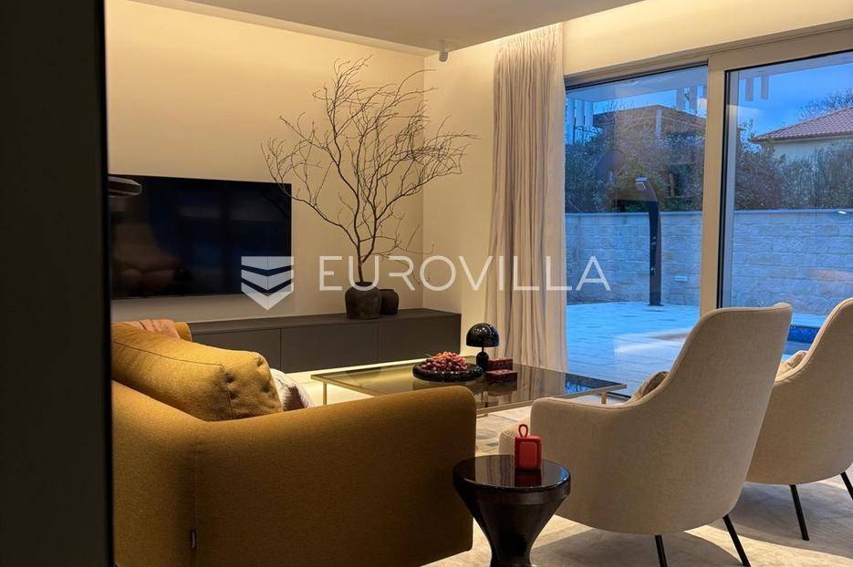 Krk, predivan trosoban stan s bazenom u suterenu luksuzne novogradnje. Ukupne površine 113 m2.Stan se sastoji od ulaznog hodnika, dvije spavaće sobe, kupaonice i prostranog dnevnog boravka s kuhinjom. Iz dnevnog boravka se izlazi na prostranu, natkrivenu terasu površine 26,70 m2. Vrt je površine približno 200 m2, a u vrtu je smješten bazen, pergola, roštilj i sunčalište.Zatvorena površina stana iznosi 74,71 m2. Stanu pripada vrt površine približno 200 m2 i dva vanjska nenatkrivena parkirna mjesta. Pripadci se obračunavaju po koeficijentima, a neto korisna površina stana sa svime iznosi 113 m2.Stan je u potpunosti dizajnerski uređen s potpisom arhitektice Tine Kurpez.Zgrada se sastoji od tri stambene jedinice te je opremljena vrhunskom opremom poput aluminijske stolarije, protuprovalnih vrata, troslojnog parketa prilagođenog za podno grijanje. Klima uređaj u svakoj prostoriji. Stanovi su ugodni i svijetli, odličnog i funkcionalnog rasporeda.Stambena zgrada se nalazi na izvrsnoj lokaciji u centru grada Krka, 250 metara od mora.Za više informacija kontaktirajte nas.... Više na eurovilla.hr, ID: 516402