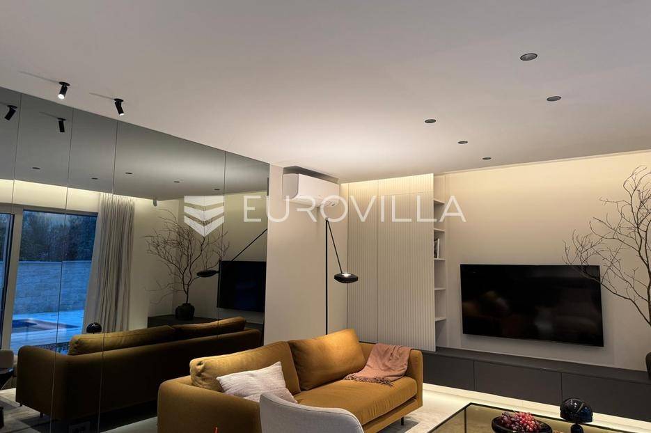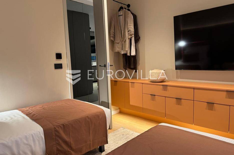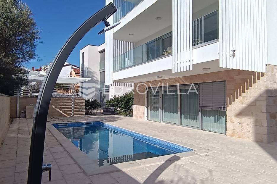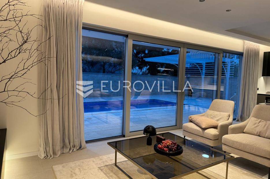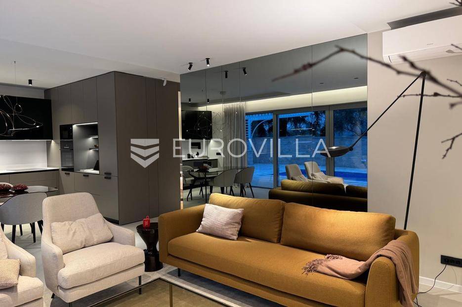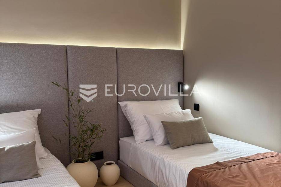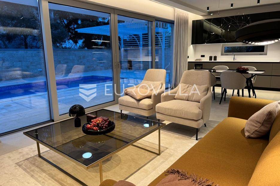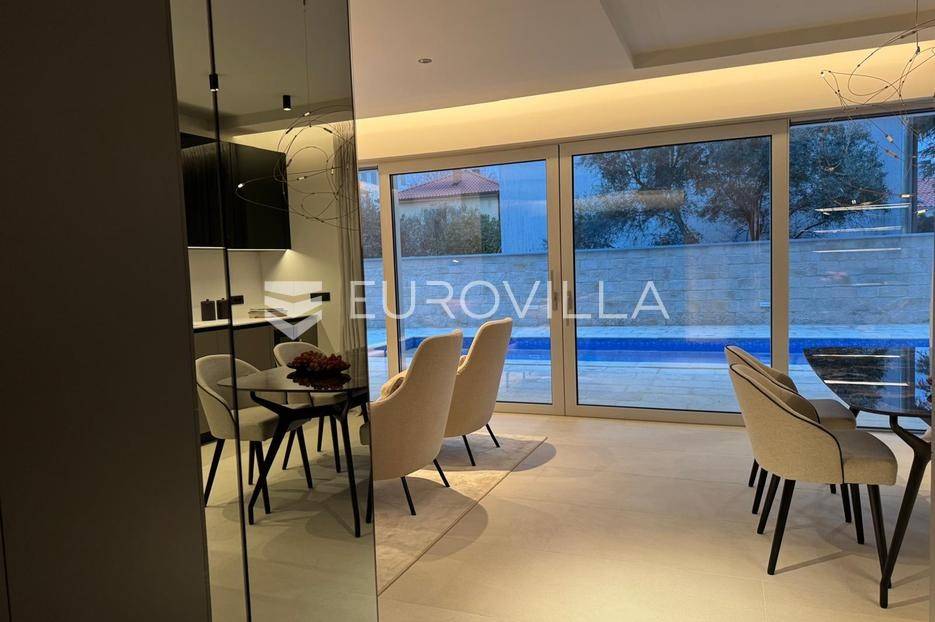 Krk, predivan trosoban stan s bazenom u suterenu luksuzne novogradnje. Ukupne površine 113 m2.Stan se sastoji od ulaznog hodnika, dvije spavaće sobe, kupaonice i prostranog dnevnog boravka s kuhinjom. Iz dnevnog boravka se izlazi na prostranu, natkrivenu terasu površine 26,70 m2. Vrt je površine približno 200 m2, a u vrtu je smješten bazen, pergola, roštilj i sunčalište.Zatvorena površina stana iznosi 74,71 m2. Stanu pripada vrt površine približno 200 m2 i dva vanjska nenatkrivena parkirna mjesta. Pripadci se obračunavaju po koeficijentima, a neto korisna površina stana sa svime iznosi 113 m2.Stan je u potpunosti dizajnerski uređen s potpisom arhitektice Tine Kurpez.Zgrada se sastoji od tri stambene jedinice te je opremljena vrhunskom opremom poput aluminijske stolarije, protuprovalnih vrata, troslojnog parketa prilagođenog za podno grijanje. Klima uređaj u svakoj prostoriji. Stanovi su ugodni i svijetli, odličnog i funkcionalnog rasporeda.Stambena zgrada se nalazi na izvrsnoj lokaciji u centru grada Krka, 250 metara od mora.Za više informacija kontaktirajte nas.... Više na eurovilla.hr, ID: 516402