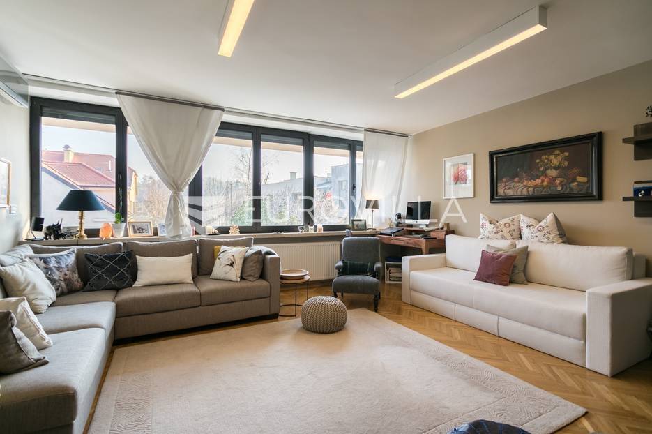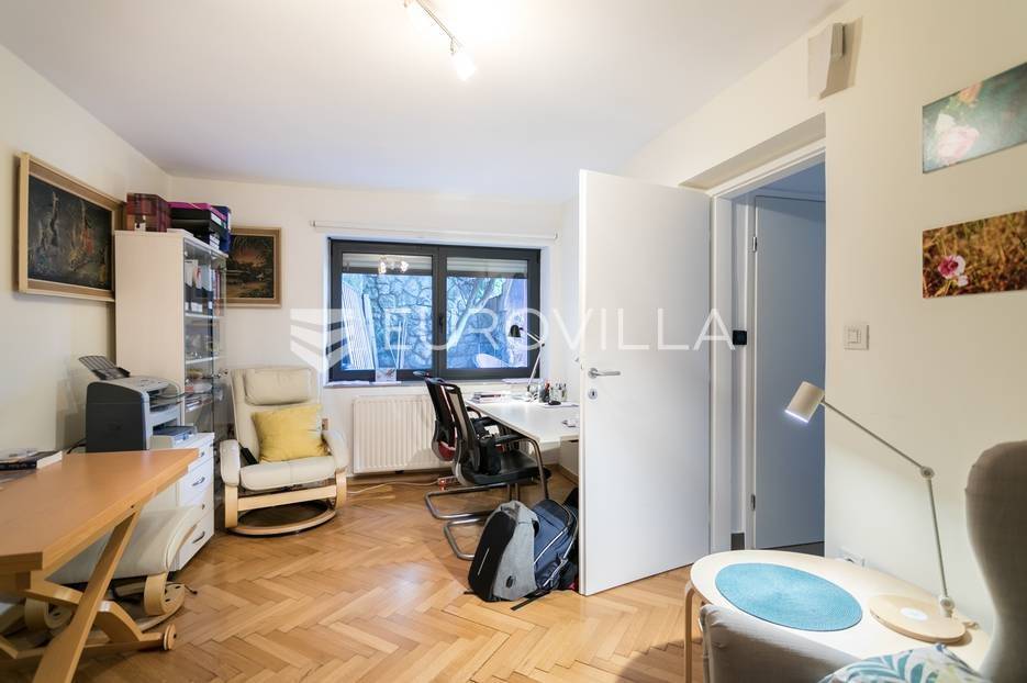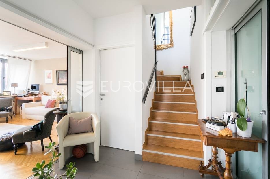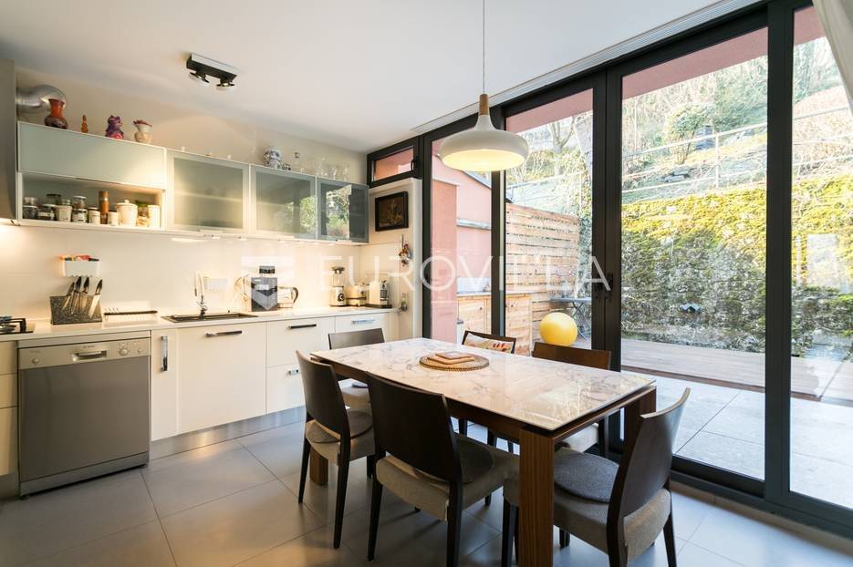 Zagreb, Ksaver, Mlinarska cesta, prekrasna novoadaptirana dvojna kuća/stan razvedena u tri etaže obračunske površine 201m2 od čega na stambene kvadrate otpada cca 180m2 (3x60m2), smještena na parceli 350m2. Odličnan raspored prostorija.Prizemlje: poseban ulaz sa ulaznim hall-om, wc, dvije sobe, te kotlovnica i garaža u zasebnom prostoruPrvi kat: ulazni hall, gostinjski wc, komforan dnevni boravak, kuhinja sa izlazom na veliku vrtnu terasu i ljetnu kuhinju te uređen kaskadni vrt površine 165m2.Drugi kat: hall, 2 velike spavaće sobe (koje se mogu prenamijeniti u 3 spavaće sobe) sa zasebnim kupaonicama i balkon (8m2).Kompletno adaptirana prema visokim standardima, termo izo fasada, podno grijanje u kupaonicama i kuhinji, alu stolarija, protuprovalna vrata, klimatizirana, pročišćavać vode, podesiva tenda na terasi sa automatskim upravljanjem, automatsko upravljanje roletama i žaluzinama, alarmni sustav, dodatna mogućnost kupovine ozonske komore itd. Grijane prilazne stepenice.Izuzetna lijepa i mirna lokacija, jednosmjerna ulica, 200m od Gupčeve zvijezde, tramvaj zona, blizina svih za život bitnih sadržaja.Ostale informacije na upit.... Više na eurovilla.hr, ID: 531632