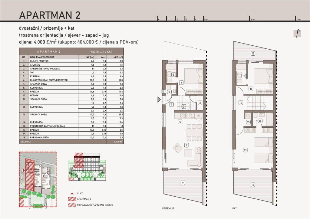 Lastovo, Pasadur - novogradnja, ekskluzivni apartmani s pogledom na more, vrhunska gradnja, planirani završetak 05/2026.Na iznimnoj lokaciji u mjestu Pasadur na otoku Lastovu, u trećem redu od mora, predstavljamo novogradnju s ukupno četiri apartmanske jedinice, smještenu u zadnjoj građevinskoj parceli u nizu - svega 70 metara zračne linije od mora, unutar zaštićenog područja Parka prirode Lastovsko otočje.U ponudi je dvoetažni stan neto korisne površine 101 m², koji se prostire kroz prizemlje i kat. Stan se sastoji od dnevnog boravka, kuhinje s blagovaonicom, tri spavaće sobe, tri kupaonice, tri balkona, spremišta i praonice. Svi prostori su promišljeno raspoređeni i funkcionalno organizirani, s naglaskom na maksimalnu iskoristivost i udobnost.Projekt obuhvaća:jedan prostrani jednoetažni apartman u suterenu koji se sastoji od dnevnog boravka, kuhinje s blagovaonicom, tri spavaće sobe, dvije kupaonice, natkrivene terase i vrtatri dvoetažna apartmana raspoređena u prizemlju i na katu, svaki s dnevnim boravkom, kuhinjom s blagovaonicom, tri spavaće sobe, tri kupaonice i čak tri balkona s predivnim pogledom na moreSvakom apartmanu pripada jedno parkirno mjesto, a završetak radova planiran je za travanj 2026. godine.Specifikacije gradnje i opreme:konstrukcija: armiranobetonska i zidanakrov: kosa krovna ploča, ventilirani krov s 14 cm mineralne vune, pokrov - crijepfasada: ETICS sustav - kombinacija kamene vune i stiropora (8 cm), završna obrada žbuka i dekorativni kamen (suteren)stolarija: PVC dvobojna (antracit izvana / bijela iznutra), aluminijske rolete, izo stakla 4 Float - 16 - 4 Low-e + Argon, staklene stijene s elektromotorimagrijanje/hlađenje: inverter klima uređaji u svim sobama (Mitsubishi Electric ili ekvivalent), podno grijanje u kupaonicamakeramika prve klasebalkonima dominiraju staklene ograde s pogledom na moresanitarna oprema renomiranih proizvođača visoke kvaliteteLokacija:južni Jadran, otok Lastovo, mjesto Pasadurtreći red od mora, zadnja građevinska parcela u nizuotprilike 70 m zračne udaljenosti od mora, 350 m pješice do javne plažecca 3,5 km cestovne udaljenosti od trajektne lukeOva nekretnina nudi savršenu kombinaciju moderne arhitekture, visoke kvalitete gradnje i jedinstvene otočne lokacije. Idealno za sve koji traže mir, blizinu mora i ulaganje u nekretninu unutar zaštićenog prirodnog okruženja.Za više informacija, tlocrte i obilazak na lokaciji, slobodno nas kontaktirajte.... Više na eurovilla.hr, ID: 565096