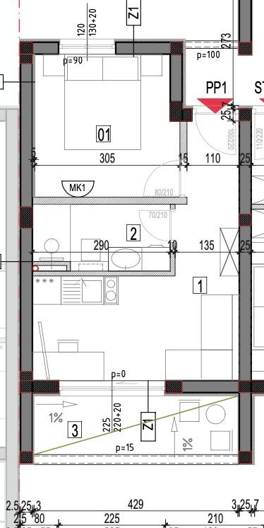 EKSKLUZIVNA PRODAJA | Kaštel Lukšić, jednosoban stan položen na prvoj etaži manje stambene zgrade ( u papirima - poslovni prostor ).Sastoji se od ulaznog hodnika ( pretprostora ), kupaonice, spavaće sobe , kuhinje s blagovaonicom/ dnevnog boravka i loggi-e.Površina zatvorenog stambenog prostora iznosi 26, 5 m2, dok je loggi-a površine 6 m2. Ukupna neto korisna površina stana iznosi 33, 33 m2.Stanu pripada jedno vanjsko nenatkriveno parkirno mjesto ( 13, 40 m2 ) uz objekt.Svi stanovi će biti opremljeni podnim grijanjem, klima jedinicom, električnim roletama, te velikim kliznim stijenkama koje će u kombinaciji s južnom orijentacijom omogućiti ugodan dnevni prostor s puno svjetlosti.Lokacija je pogodna za miran život , u blizini svih potrebnih sadržaja. Parcela je položena uz cestu širine 5,5 metara, koja spaja staru i novu kaštelansku cestu, što olakšava pristup i povezanost automobilom. U blizini su osnovna škola, trgovine, restorani, a do plaže treba otprilike 10- 15 minuta laganog hoda.Useljenje predviđeno u prvoj polovici 2027. godine.Za sve dodatne informacije, stojimo Vam na raspolaganju.... Više na eurovilla.hr, ID: 565725