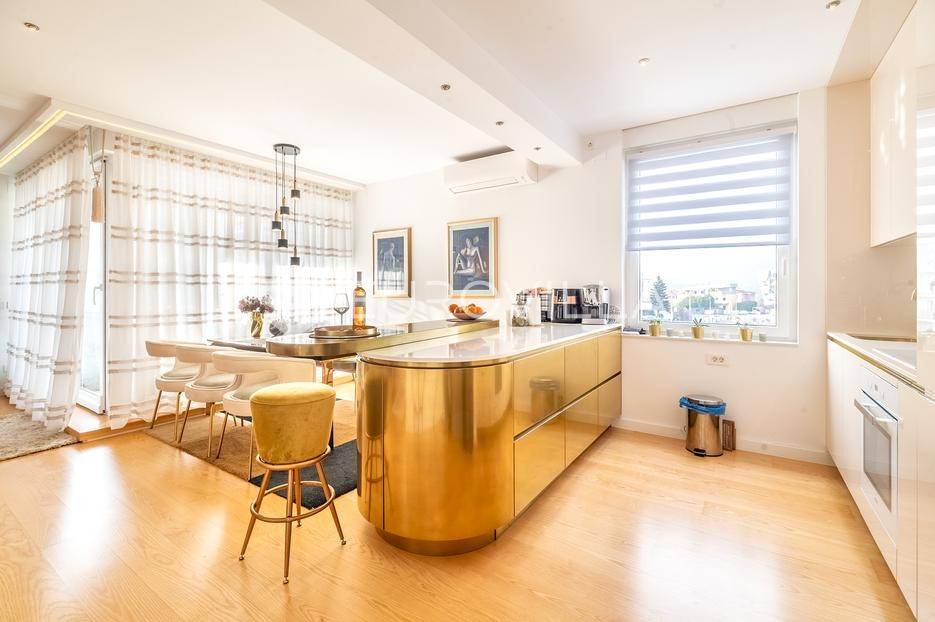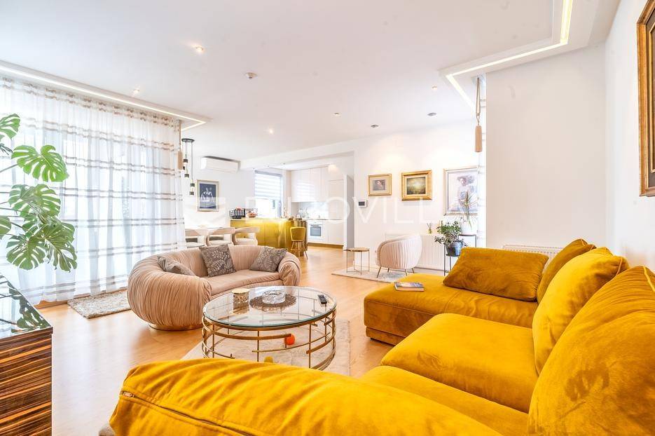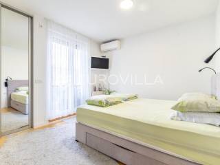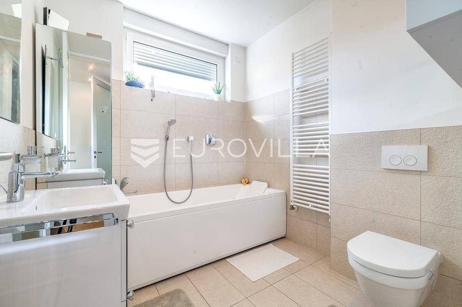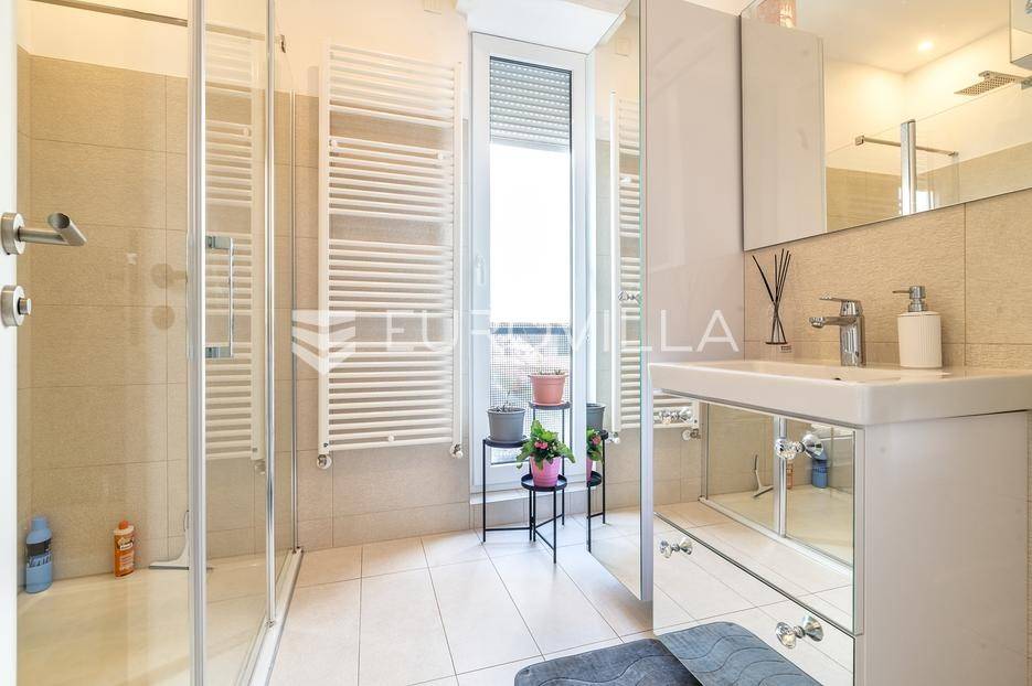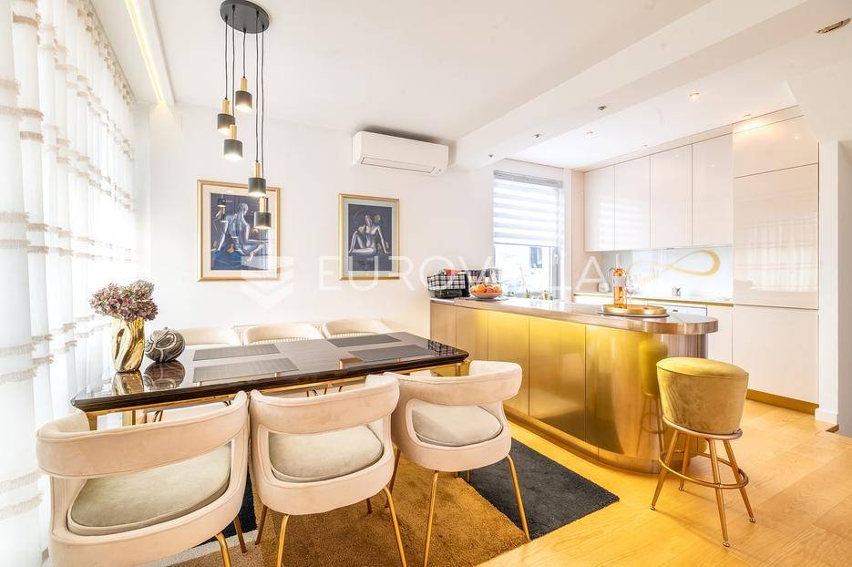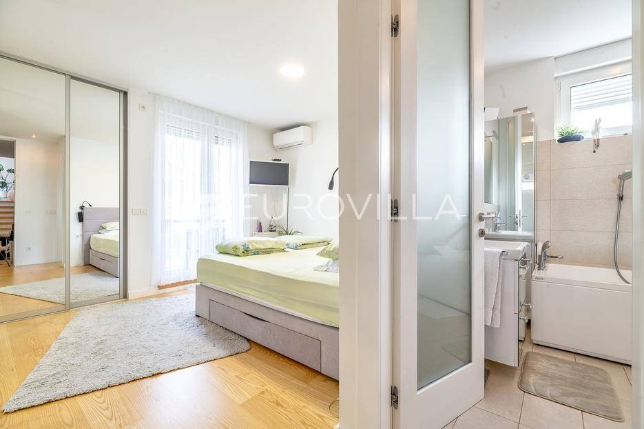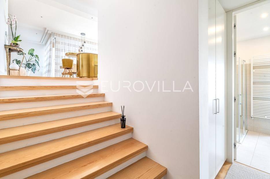 Dvoetažni trosoban stan ukupne površine 106,48 m2 smješten u mirnom i rezidencijalnom dijelu Gračana, u manjoj stambenoj zgradi izgrađenoj 2018. godine s ukupno tri stana, što osigurava privatnost i ugodno stanovanje. Stan ima plinsko grijanje, PVC stolariju i kvalitetan parket, a prodaje se u potpunosti uređen i namješten, bez potrebe za dodatnim ulaganjima.Stambeni prostor organiziran je na dvije etaže. Na jednoj etaži nalaze se master spavaća soba s podnim grijanjem i francuskim balkonom, druga spavaća soba s izlazom na lođu te kupaonica s tušem. Prostori su klimatizirani Daikin klima uređajima, a raspored omogućuje funkcionalno odvajanje privatnog dijela stana od dnevnih sadržaja. Druga etaža obuhvaća prostranu kuhinju s otokom, blagovaonicu i dnevni boravak otvorenog koncepta, s izlazima na terasu i lođu, što prostoru osigurava obilje prirodnog svjetla i dodatnu vrijednost u svakodnevnom korištenju. U stanu je ugrađen CRESTO sustav rasvjete, koji doprinosi ugodnoj i ravnomjernoj osvijetljenosti svih prostorija, a opremljen je Knapić Glamour kuhinjom i Kare namještajem.Dodatnu sigurnost i funkcionalnost osiguravaju protuprovalna vrata i videoportafon. Stanu pripada vlastito parkirno mjesto u dvorištu površine 13,75 m2. Lokacija stana omogućuje brz i jednostavan pristup svim važnim sadržajima, uključujući javni prijevoz, trgovine, škole i ostale urbane potrebe, uz istovremeno zadržavanje mirnog okruženja karakterističnog za Gračane. Stan je prikladan za obiteljsko stanovanje, ali i kao dugoročna investicija.Za sva pitanja Vam stojimo na raspolaganju.... Više na eurovilla.hr, ID: 570421
