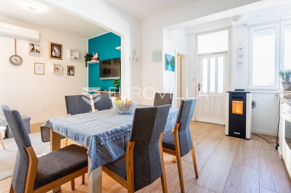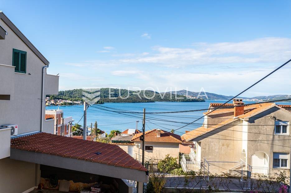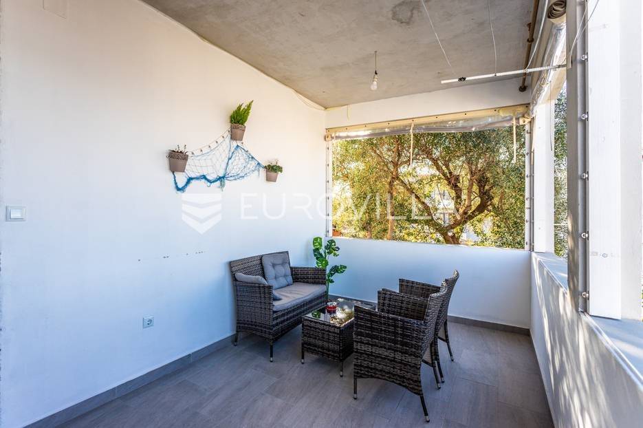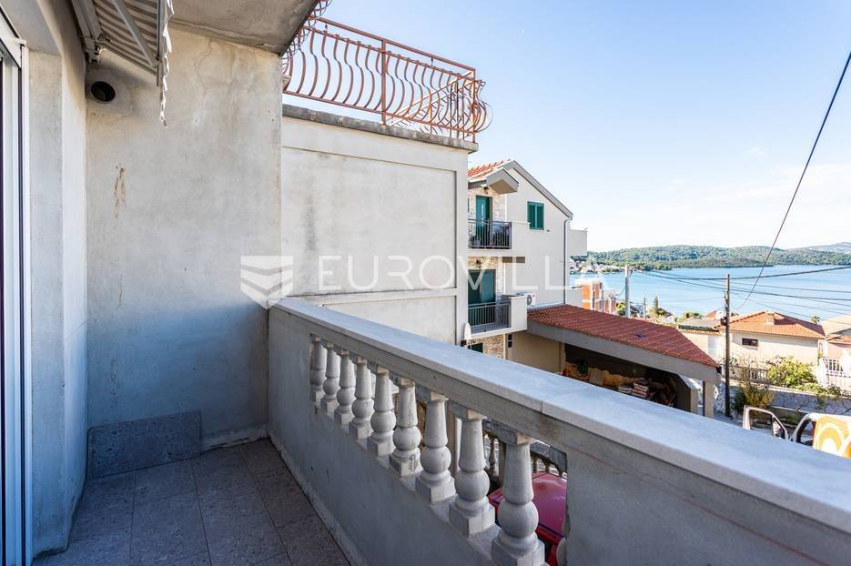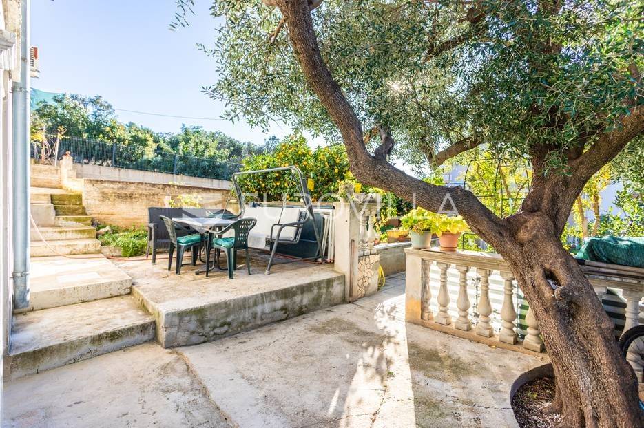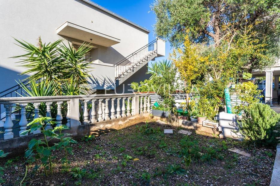 Čiovo, Okrug Gornji, namješten trosoban stan smješten na prvom katu stambenog objekta.Stan se sastoji od hodnika, tri spavaće sobe, kupaonice, kuhinje a blagovaonicom, dnevnog boravka, terase i loggie. Orijentiran je na zapad, a s terase i loggie se vidi more. Površina zatvorenog prostora stana je 81, 58 m2.Stanu pripadaju dva nenatkrivena vanjska parkirna mjesta , studio apartman u suterenu s natkrivenom terasom, vrt površine 120 m2, te konoba s kaminom površine 24 m2.Ukupna neto korisna površina nekretnine je 170 m2.Objekt je nekoliko minuta hoda udaljen od plaža, smješten u slijepoj ulici , u blizini svih potrebnih sadržaja.Za sva ostala pitanja, stojim na rapsolaganju.... Više na eurovilla.hr, ID: 571353