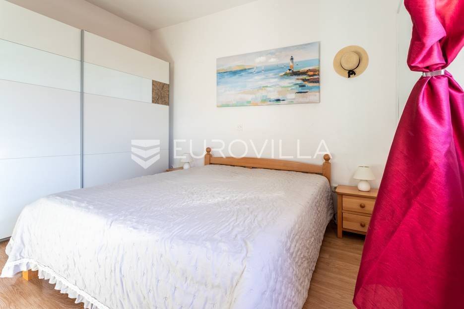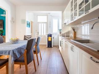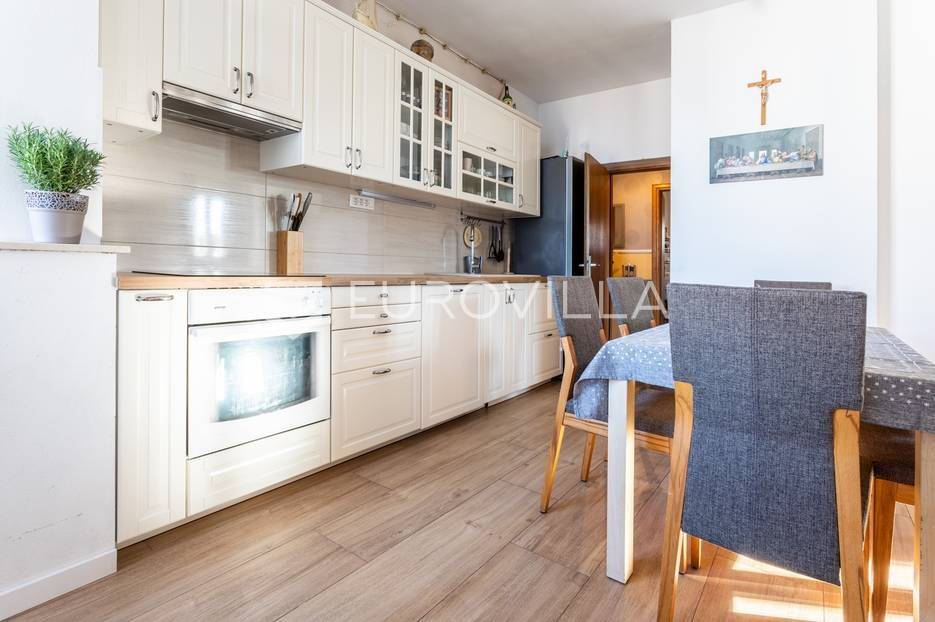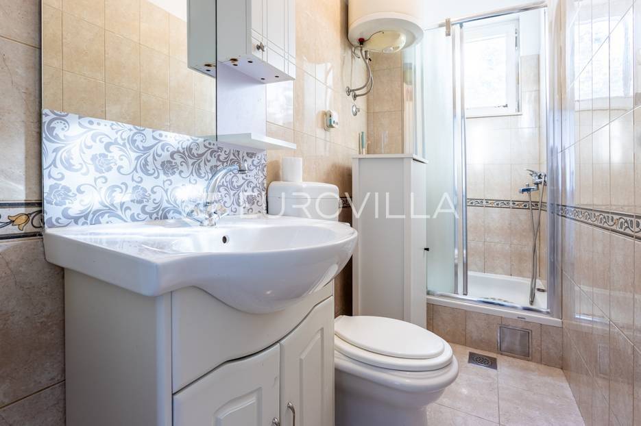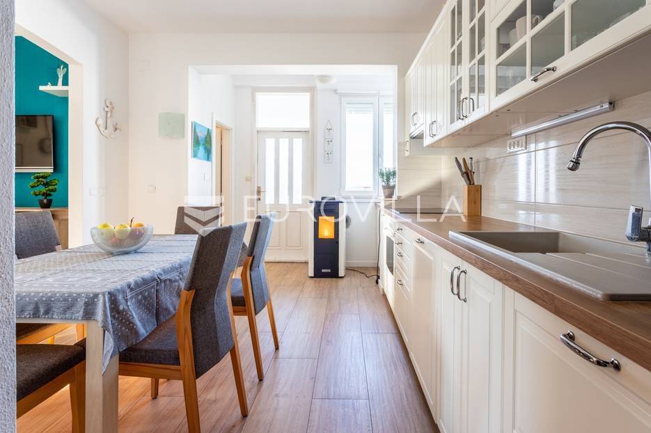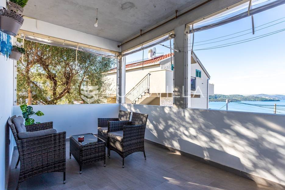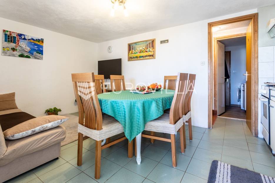 Čiovo, Okrug Gornji, namješten trosoban stan smješten na prvom katu stambenog objekta.Stan se sastoji od hodnika, tri spavaće sobe, kupaonice, kuhinje a blagovaonicom, dnevnog boravka, terase i loggie. Orijentiran je na zapad, a s terase i loggie se vidi more. Površina zatvorenog prostora stana je 81, 58 m2.Stanu pripadaju dva nenatkrivena vanjska parkirna mjesta , studio apartman u suterenu s natkrivenom terasom, vrt površine 120 m2, te konoba s kaminom površine 24 m2.Ukupna neto korisna površina nekretnine je 170 m2.Objekt je nekoliko minuta hoda udaljen od plaža, smješten u slijepoj ulici , u blizini svih potrebnih sadržaja.Za sva ostala pitanja, stojim na rapsolaganju.... Više na eurovilla.hr, ID: 571353