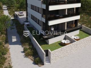LUKSUZNA NOVOGRADNJA 1. RED DO MORA - MANDRE, KOLANPredstavljamo Vam projekt luksuzne novogradnje na idiličnoj lokaciji u 1. red do mora u možda najpopularnijem mjestu na Pagu, Mandrama.Projekt se sastoji od 2 luksuzna dvoetažna stana u prizemlju i suterenu, te od 2 penthousa na 1. katu zgrade.Stan S1 se nalazi u prizemlju zgrade te je njegova ukupna neto korisna površina 156,18 m2 dok mu bruto površine iznosi 275,24 m2. Raspoređen je na ukupno dvije etaže, prizemlje i suteren. Na prizemlju se nalaze dvije spavaće sobe, dvije kupaonice, otvoreni prostor kuhinje, blagovaonice i dnevnog boravka te hodnik i unutarnje stubište kojim dolazimo na donju etažu. U suteren se nalazi kupaonica, hodnik te dvije prostorije koje mogu biti spavaće sobe, uredi, teretana ili igraonica.Stanu uz to pripadaju spremište i dva vanjska parkirna mjesta, natkrivena terasa (17 m2) s koje se pruža neopisivi pogled na more te vrt površine 90,51 m2.STANOVI SU U SUSTAVU PDV-a TE KUPAC NE PLAĆA POREZ NA PROMET NEKRETNINAMA (3%)!PLANIRANI ZAVRŠETAK RADOVA I USELJENJE SU PREDVIĐENI ZA LIPANJ 2026.Od oprema i tehničkih specifikacija izdvajamo :multi split sustav hlađenja i grijanja u svakoj spavaćoj sobi i dnevnom boravkuElektrično podno grijanje u kupaonicama i boravkuPodne obloge od vrhunske talijanske keramike, u sobama troslojni hrastov parket.Rehau vanjska stolarija s komarnicima i roletama na električno upravljanjeProtuprovalna i protupožarna vrataGradnja termo ciglom PorothermToplinska izolacija od stiropora debljine 10 cmI još mnogo toga...Za više informacija i dogovor oko razgledavanja, obratite nam se s povjerenjem... Više na eurovilla.hr, ID: 599016