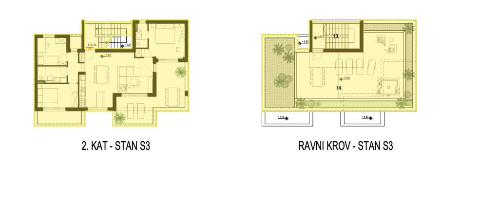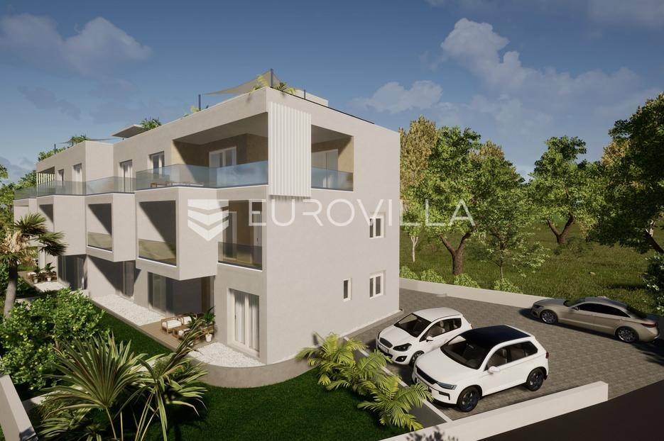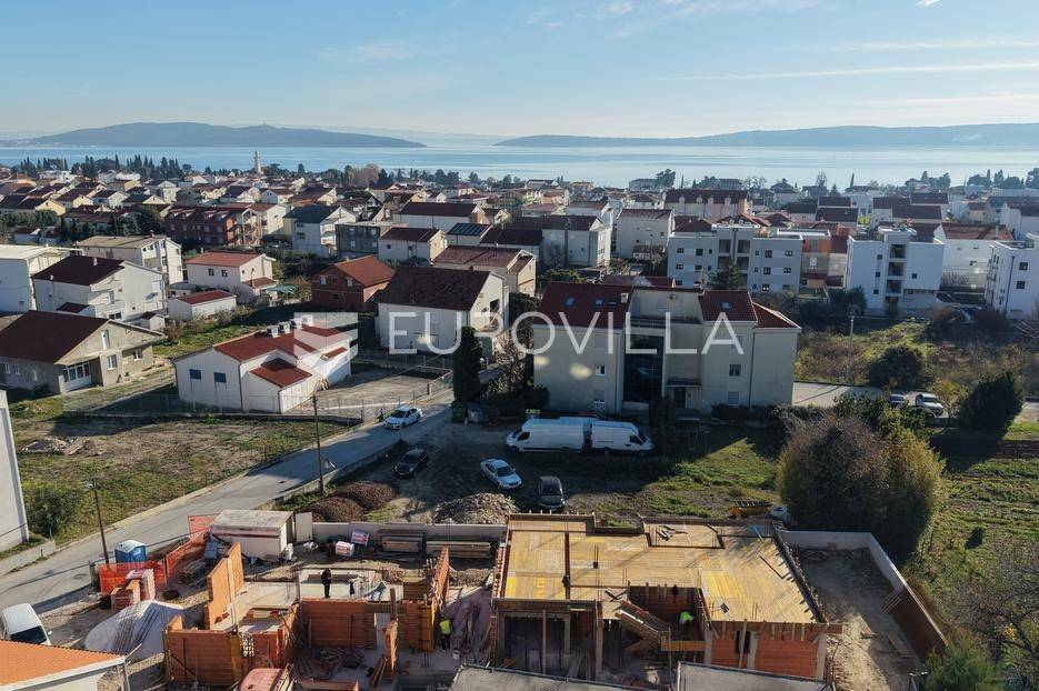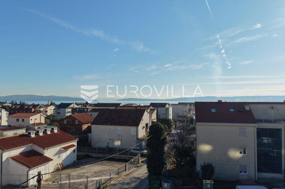 EKSKLUZIVNA PRODAJA | Kaštel Lukšić, trosoban penthouse položen na drugoj etaži manje stambene zgrade s privatnom krovnom terasom i pogledom na more.Stan je podijeljen na tri spavaće sobe, dvije kupaonice ( od kojih je jedna u sklopu glavne spavaće sobe ), hodnik, kuhinju s blagovaonicom , te dnevnog boravka s izlazom na terasu površine 21, 81 m2. Stanu pripada prostrana krovna terasa s pogledom na more površine 94, 68 m2, te dva vanjska nenatkrivena parkirna mjesta uz objekt.Površina zatvorenog stambenog prostora iznosi 73, 45 m2, a ukupna neto korisna površina stana s pripadajućim dijelovima ( balkon, terasa, krovna terasa i dva parkirna mjesta ) iznosi 123, 55 m2.Svi stanovi će biti opremljeni podnim grijanjem, klima jedinicom, električnim roletama, te velikim kliznim stijenkama koje će u kombinaciji s južnom orijentacijom omogućiti ugodan dnevni prostor s puno svjetlosti.Lokacija je pogodna za miran život , u blizini svih potrebnih sadržaja. Parcela je položena uz cestu širine 5,5 metara, koja spaja staru i novu kaštelansku cestu, što olakšava pristup i povezanost automobilom. U blizini su osnovna škola, trgovine, restorani, a do plaže treba otprilike 10- 15 minuta laganog hoda.Za sve dodatne informacije, stojimo Vam na raspolaganju.... Više na eurovilla.hr, ID: 604164