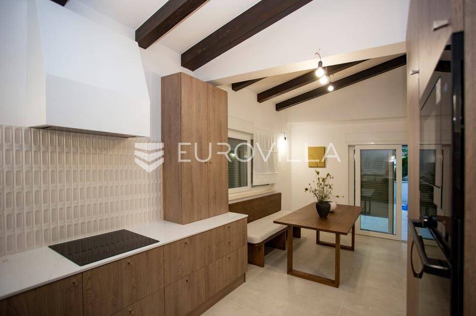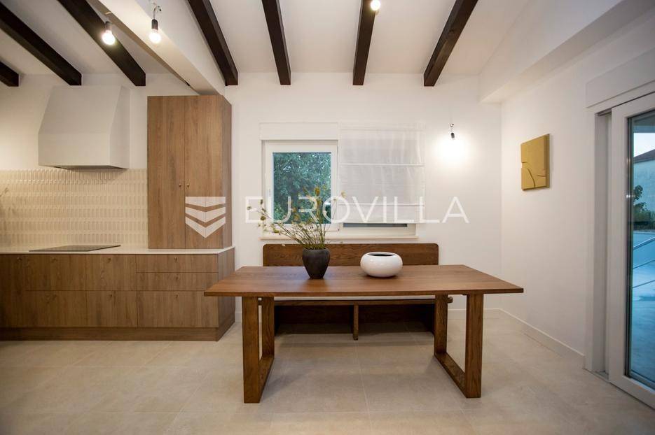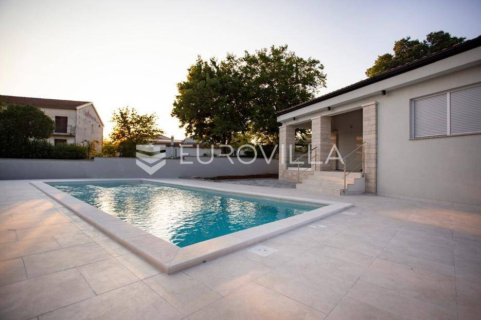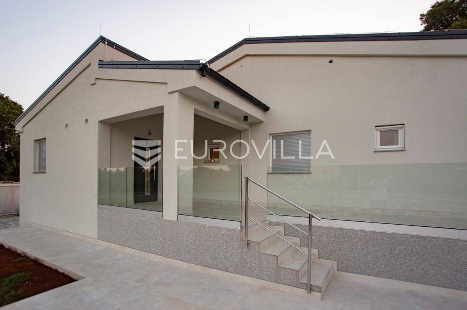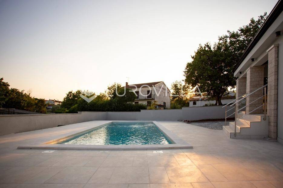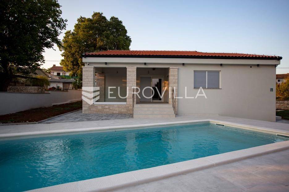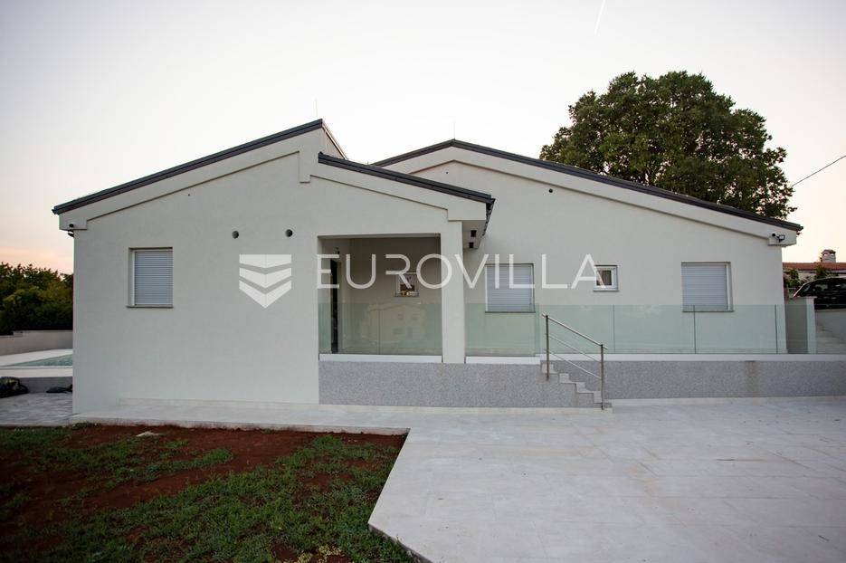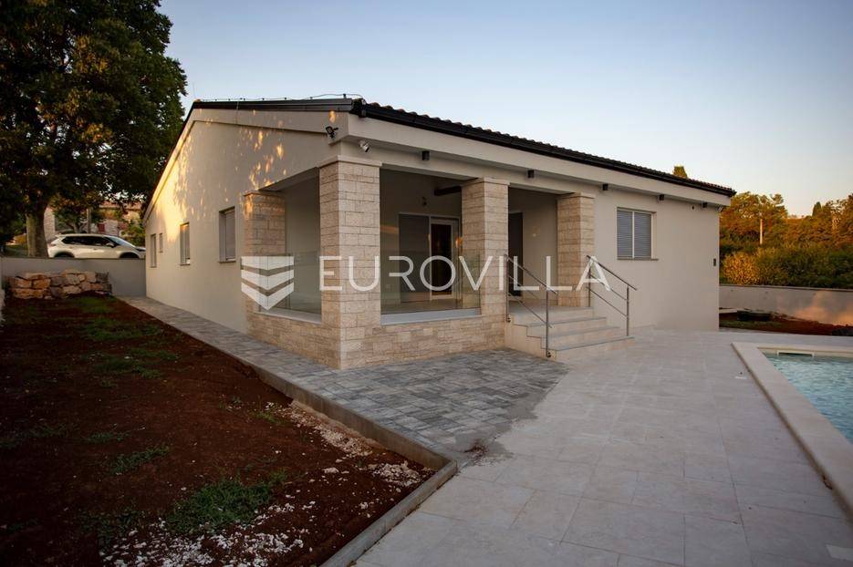 Smještena u malom mjestu Matohanci kraj Kanfanara, prodaje se nova, montažna, prizemna, samostojeća kuća s bazenom površine 142,60 m2 s pogledom na zelenilo. Sastoji se od ulaza, hodnika, namještene kuhinje, dnevnog boravka i blagovaonice, četiri spavaće sobe, tri kupaonice te natkrivene terase s koje se pristupa na bazen.Grijanje je regulirano putem inverter klima uređaja u svim sobama te dodatno s toplim zrakom u dnevnom boravku. PVC stolarija. Keramika po podovima. Mineralna vuna kao vanjska izolacija. Prodaje se u djelomično namještenom stanju.Ono što je bitno napomenuti za montažnu kuću je svakako vijek trajanja od 100 godina.Kuća se prodaje preko firme tako da budući kupac je oslobođen plaćanja PDV-a.Za više dodatnih informacija, kao i dogovora oko termina razgledavanja, stojimo Vam na raspolaganju.... Više na eurovilla.hr, ID: 610569