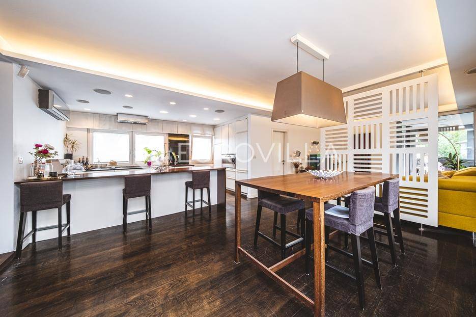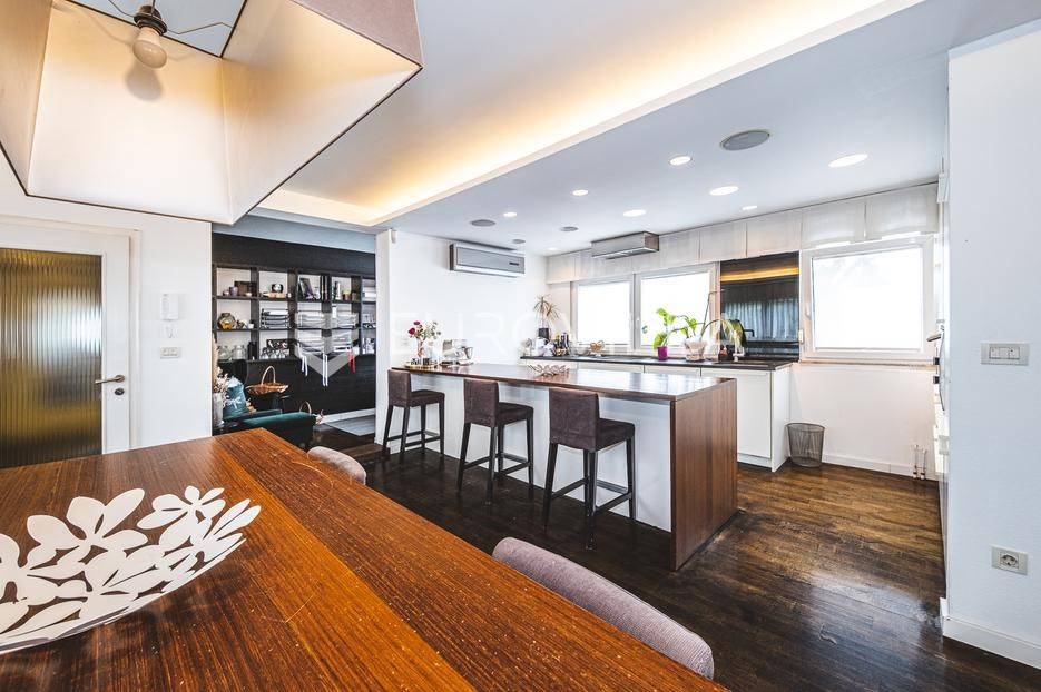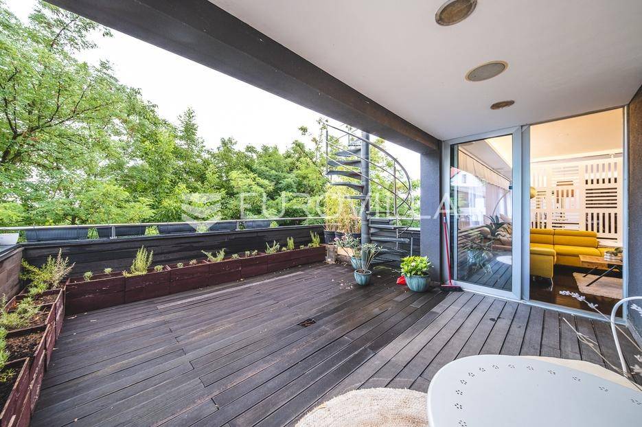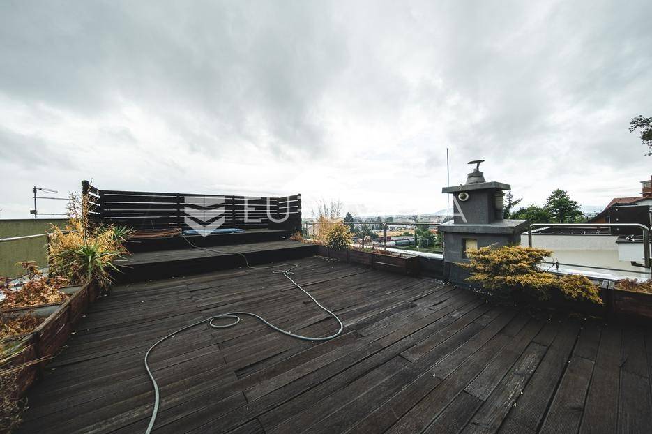 Zagreb, Ilica, trosoban penthouse s dvije terase 117 m2 .Sastoji se od ulaznog hodnika, manje radne ili spavaće sobe, dnevnog boravka s kuhinjom i kuhinjskim otokom, kupaonice te glavne spavaće sobe s walk in garderobom, vlastitom kupaonicom i izlazom na terasu. Stan ima i krovnu terasu s pogledom na grad, savršenu za boravak na otvorenom. Uz stan dolaze dva parkirna mjesta. U potpunosti je opremljen i odmah useljiv.Nalazi se na odličnoj lokaciji zapadnog djela grada, u blizini javnog prijevoza i svih bitnih sadržaja za ugodan svakodnevni život.Za sve ostale informacije stojimo Vam na raspolaganju.... Više na eurovilla.hr, ID: 634181
