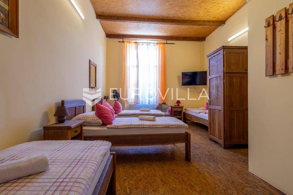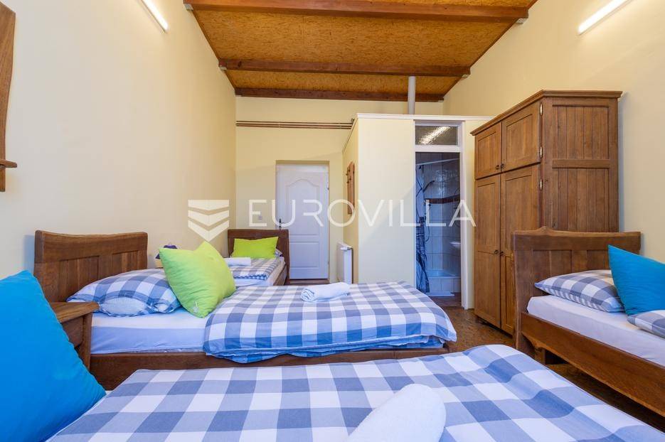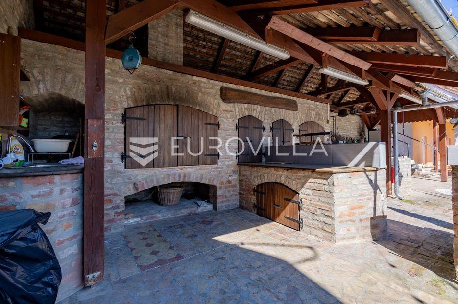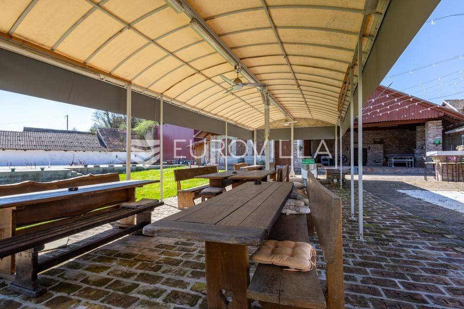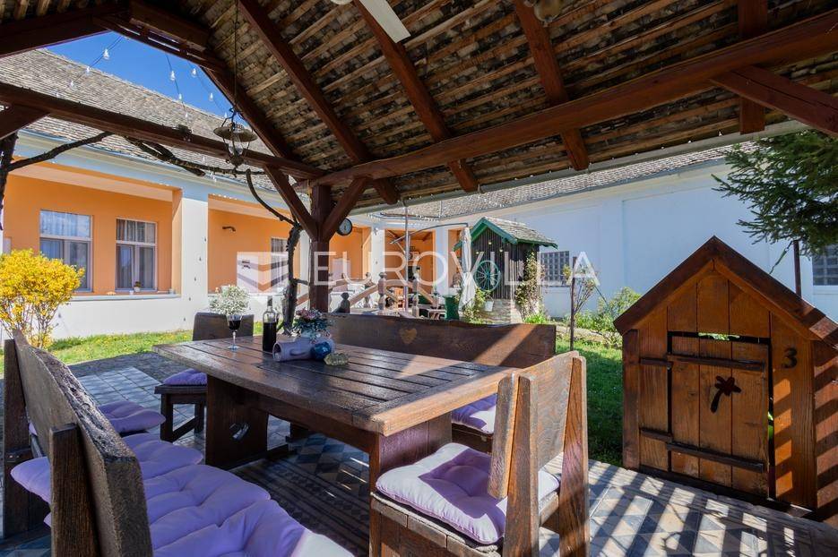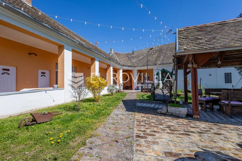 Baranja, imanje sa smještajnim kapacitetom od 8 soba (21 ležaj), odvojenim stanom za voditelja imanja, družionice od 100 m2 i kuhinje.Ukupni stambeni prostor je 730 m2. U sklopu imanja nalaze se 3 vinska podruma, jacuzzi, sauna, slana soba, 13 kupaonica, parking za 50 automobila. U dvorištu gdje se nalazi roštilj, prostor za proslave, stolni tenis i ostali sadržaj mogu se smjestiti 50 osoba. Objekt je građen s punom ciglom, zidovi su 60 cm širine, napravljena je dodatna izolacija, kompletno nove instalacije te je uveden gradski plin. Na imanju je provedena gradska voda, no postoji i opcija hidrofora.Sobe su uređene u starom baranjskom stilu, sa hrastovim namještajem. Na dijelu imanja nalazi se pvc stolarija. U dvorištu se nalazi novi projekt s bazenom sa postavljenim temeljima. Uz 2240 m2 površine imanja u sklopu imanja su i 2 susjedna zemljišta sa dodatnih 1400 m2.Imanje nudi gostima komforan, autohton smještaj kroz spoj tradicionalne arhitekture i modernih pogodnosti. Svojom izvrsnom lokacijom u Baranji, omeđeno vinogradima, vinskim podrumima i Dunavskim rukavcima, nudi atraktivnu poslovnu priliku sa dugogodišnjim poslovnim rezultatima iza sebe. Povrat investicije je unutar 10 godina. Ovo imanje ima izvanrednu ocjenu na bookingu i kod potencijalne prodaje neće biti prekida u poslovanju.Ostale informacije na upit.... Više na eurovilla.hr, ID: 645058