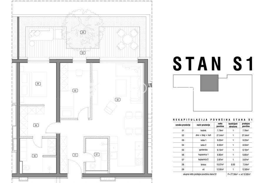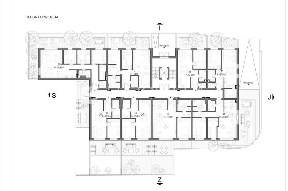 Slavonski Brod, J.J. Strossmayera, luksuzni trosoban stan u prizemlju, 77,56 m2 s vlastitim vrtom 12,92 m2.Stan se nalazi u stambenoj zgradi s 29 stanova s liftom, s vanjskim i garažnim parkirnim mjestima.Sastoji se od ulaznog hodnika, dnevnog boravka s kuhinjom i blagovaonicom, spavaće sobe, kupaonice, te glavne spavaće sobe s vlastitom garderobom i kupaonicom.Opremljen je PVC stolarijom s troslojnim staklima i roletama na struju, protuprovalnim i protupožarnim vratima, klima uređajima u svim sobama, dizalicom topline s podnim grijanjem u cijelom stanu i termostatima u svim sobama. Kupaonica opremljena tuš kadom sa staklenom stijenom i kanalicom, te ugradbenim WC-om s kotlićem.Cijena stana iznosi 2.400 €/m2 s uključenim PDV-om. Mogućnost biranja između vanjskih i garažnih parkirnih mjesta, koji nisu uključeni u cijenu, te mogućnost kupovine spremišta u podrumu zgrade.U blizini zgrade su svi bitni sadržaji poput, trgovine 10m od zgrade, osnovne škole, vrtića...Za više informacija stojimo na raspolaganju.... Više na eurovilla.hr, ID: 661578