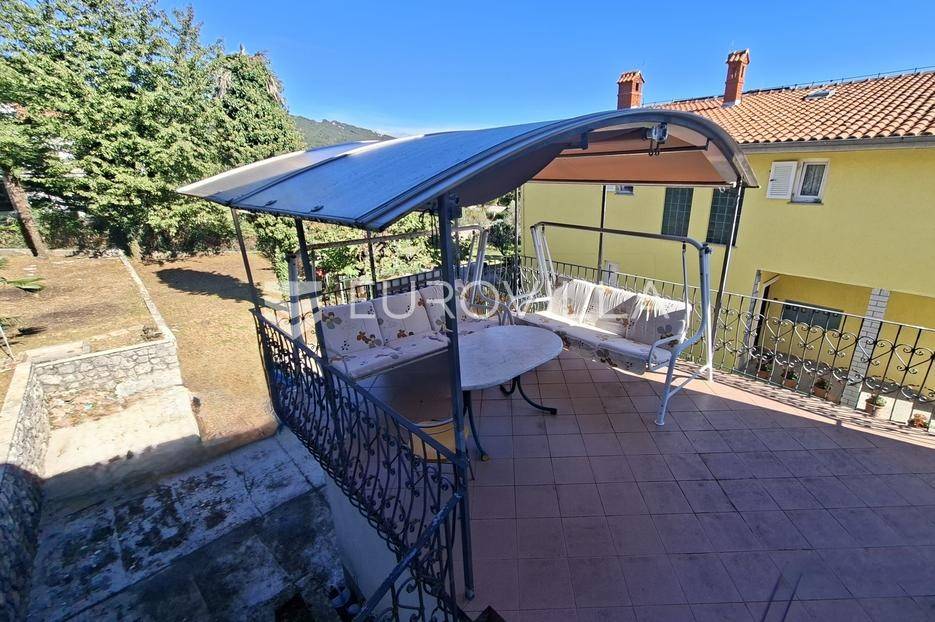 Smještena na mirnoj i tihoj lokaciji samo 300 m od mora, ova šarmantna samostojeća kuća nudi prekrasan pogled na more i Kvarnerski zaljev.U prizemlju se nalazi stan površine 89 m² u roh-bau fazi, koji budućem vlasniku pruža mogućnost uređenja prema vlastitim željama. U prizemlju se nalaze i spremište te garaža.Na katu se nalazi potpuno namješten stan površine 89 m², koji se sastoji od prostranog dnevnog boravka, kuhinje i spavaćih soba. Stan također ima veliki balkon i dvije terase - savršeno za uživanje u pogledu i miru.Okućnica je uredna i njegovana, s mogućnošću izgradnje bazena. S jedne strane kuća graniči sa šumom, što osigurava dodatnu privatnost i osjećaj povezanosti s prirodom.Idealna nekretnina za miran obiteljski život, kao kuća za odmor ili investicija u turizam.Za sve dodatne informacije, slobodno nas kontaktirajte.... Više na eurovilla.hr, ID: 662430