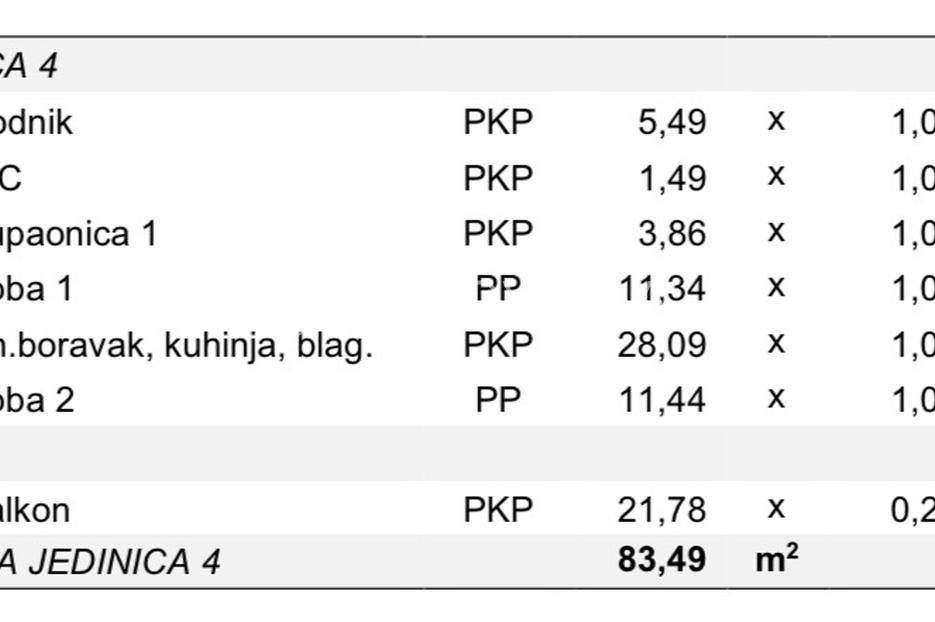 Predstavljamo Vam zgradu u novogradnji u poznatom turističkom odredištu na otoku Pagu, Povljani. Zgrada se sastoji od ukupno 8 stambenih jedinica raspoređenih na ukupno 4 etaže. Zgrada se nalazi 400 m od centra mjesta i svih sadržaja koji su potrebni za kvalitetan život ili odmor dok je od mora udaljena 800 m.STAN S4 - PRVI KAT - 72,34m2Stan S4 se nalazi na prvom katu zgrade te je ukupne neto korisne površine 72,34m2. Sastoji se od hodnika (5,49m2), otvorenog prostora kuhinje, blagovaonice i dnevnog boravka (28,09m2), dvije spavaće sobe (11,34m2 i 11,44m2), potpuno opremljene kupaonice (3,86m2), WC-a (1,49m2) te nenatkrivenog balkona (21,78m2). Stanu uz to pripada i spremište u podrumu zgrade (4,38m2) te jedno vanjsko parkirno mjesto.Predviđeno useljenje : 04/2026PDV JE UKLJUČEN U CIJENU STANA TE KUPAC NE PLAĆA POREZ NA PROMET NEKRETNINAMA.Od opreme i materijala valja izdvojit :Vrhunsku PVC stolariju s električnim roletama i ugrađenim komarnicimaMulti split sustav klimatizacije u svim spavaćim sobama te dnevnom boravkuToplinska izolacija debljine 10 cmPortafonLiftProtuprovalna i protupožarna vrataI još mnogo togaZa više informacija i dogovor oko razgledavanja obratite nam se s povjerenjem... Više na eurovilla.hr, ID: 674367
