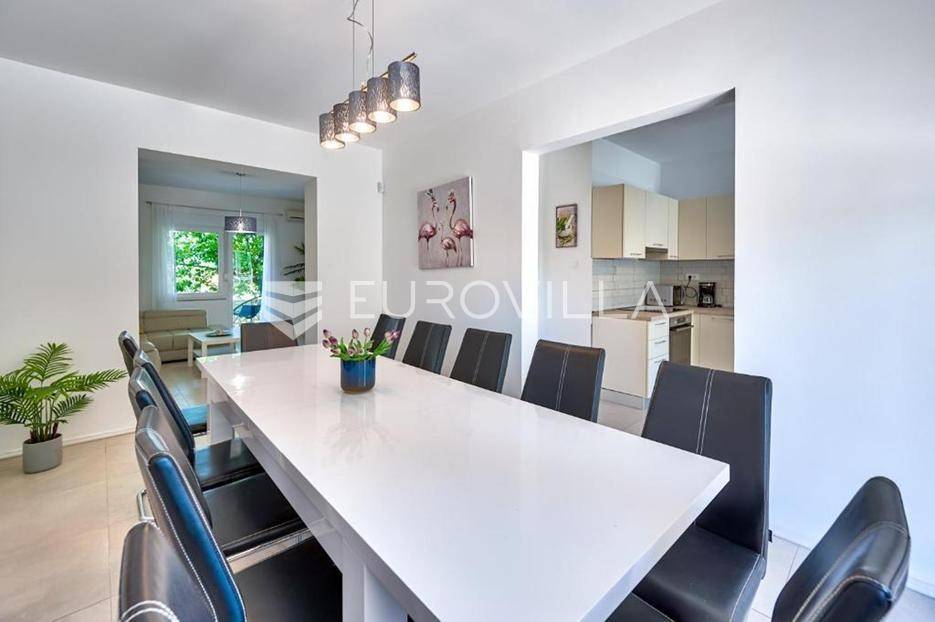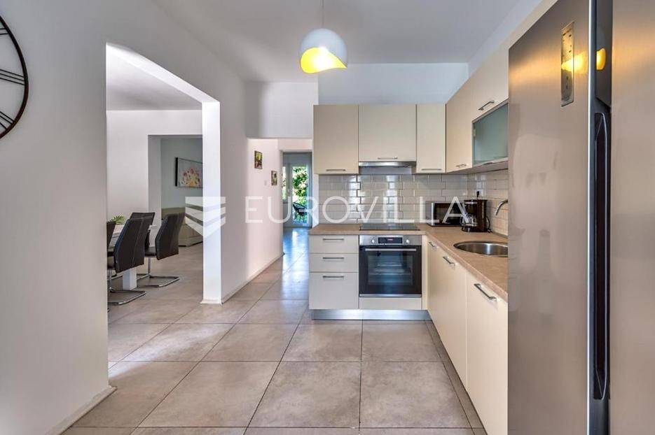 U srcu pitoresknog Ližnjana, na samom jugu istarskog poluotoka, smjestila se ova impresivna samostojeća kuća koja redefinira pojam komfora i mediteranskog luksuza. Prostirući se na raskošnih 286 kvadratnih metara stambene površine, ova višeetažna nekretnina nudi savršen spoj moderne funkcionalnosti i bezvremenskog dizajna.Smještena na pomno uređenom zemljištu od 568 m2, kuća je projektirana kako bi pružila maksimalnu privatnost i uživanje u blagodatima klime, dok njezina trostrana orijentacija prema istoku, jugu i zapadu osigurava obilje prirodnog svjetla tijekom cijelog dana.Unutrašnjost kuće odiše elegancijom i prostranošću, s ukupno šest soba koje se mogu prilagoditi potrebama budućih vlasnika, bilo kao spavaće sobe, radni prostori ili zone za opuštanje. Srce doma čini prostrani dnevni boravak obogaćen kaminom koji stvara toplu i pozivajuću atmosferu tijekom zimskih mjeseci. Dvije moderno opremljene kupaonice pružaju visoku razinu udobnosti, dok dodatne prostorije poput ostave osiguravaju praktičnost svakodnevnog života.Poseban naglasak stavljen je na wellness segment, pa se unutar kuće nalazi i privatna sauna, idealna za detoksikaciju i opuštanje nakon dugog dana.Vanjski prostor pravi je mali raj za ljubitelje boravka na otvorenom. Velika terasa i balkon nude prekrasne poglede i idealna su mjesta za jutarnju kavu ili večernja druženja. Središnji dio vrta zauzima bazen koji poziva na osvježenje u vrućim ljetnim danima, okružen zelenilom koje pruža intimu. Vrt je pažljivo održavan, stvarajući skladnu cjelinu s arhitekturom kuće.Ova nekretnina predstavlja rijetku priliku na tržištu, spajajući vrhunsku lokaciju u blizini mora s bogatim sadržajima koji omogućuju vrhunski životni stil ili visok povrat investicije kroz turistički najam.Za više informacija i organizaciju razgleda slobodno nas kontaktirajte.... Više na eurovilla.hr, ID: 722403