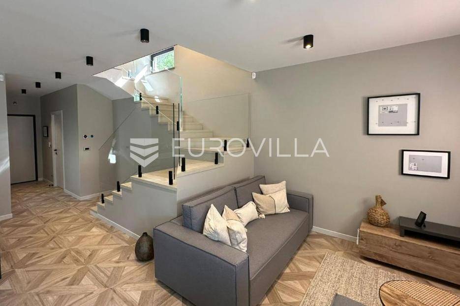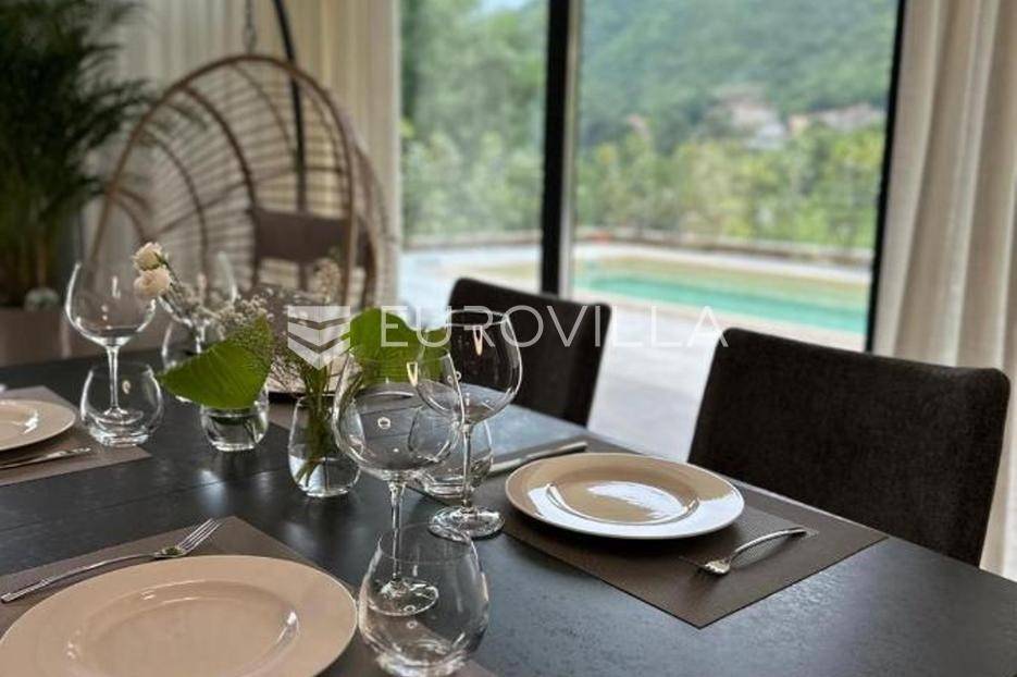 Mošćenićka Draga, prekrasna novoizgrađena kuća s bazenom na savršenoj lokaciji. Kuća je podijeljena na dvije etaže. U prizemlju: ulazni hodnik, gostinjski toalet, vešeraj, kotlovnica, prekrasan opens pace dnevni prostor s kuhinjom, otokom, blagovaonicom, dnevnim boravkom te izlazom na terasu i bazen. Na gornjoj etaži: četri spavaće sobe, svakak s kupaonicom, te jednim velikim balkonom (dvije sobe imaju direktan izlaz). Vila je izgrađena 2024. godine, na savršenoj je mikrolokaciji, uvučeno od glavne ceste te pruža potpuni mir i tišinu, 900 metara od mora i plaže. Iznajmljuje se dugoročno, minimum 2 godine. Sve dodatne informacije na upit.... Više na eurovilla.hr, ID: 734967
