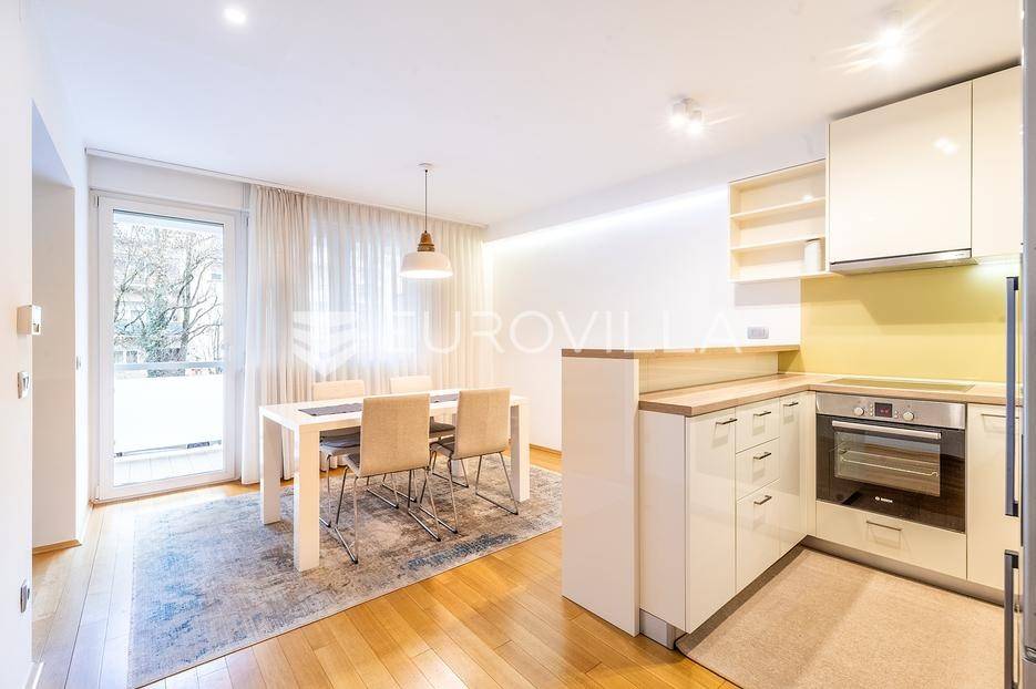 Britanski trg, Kukuljevićeva ulica, prekrasan trosoban stan površine 80 m2 na 1. katu održavane zgrade s liftom. Sastoji se od ulaznog hodnika, opremljene kuhinje s blagovaonicom te izlazom na natkriveni balkon, dnevnog boravka, 2 spavaće sobe, kupaonice s tušem, gostinjskog toaleta i loggie. Grijanje etažno plinsko, klimatizirano.Mogućnost iznajmljivanja parkirnog mjesta u garaži.Atraktivna lokacija u neposrednoj blizini Britanskog trga, javnog prijevoza, trgovina te svih potrebnih sadržaja.Ostale informacije na upit.... Više na eurovilla.hr, ID: 737273