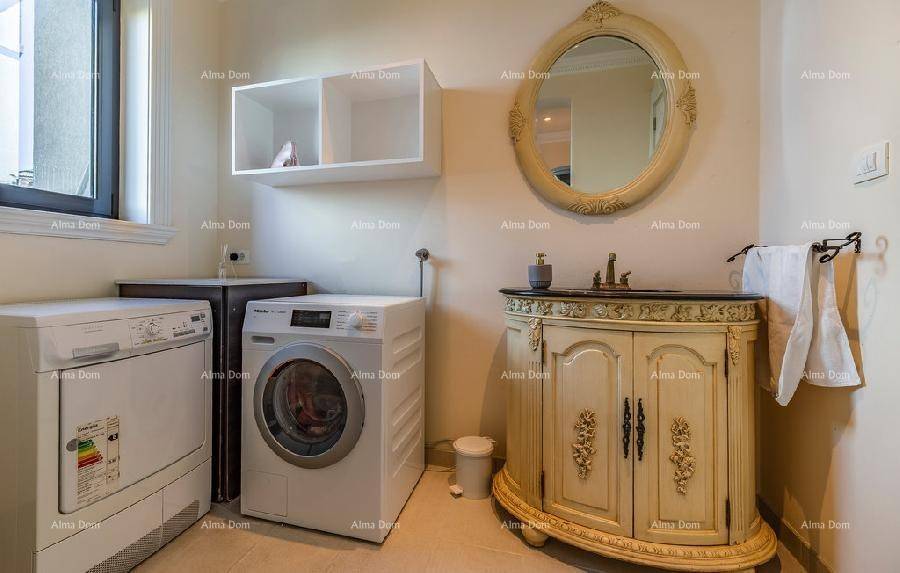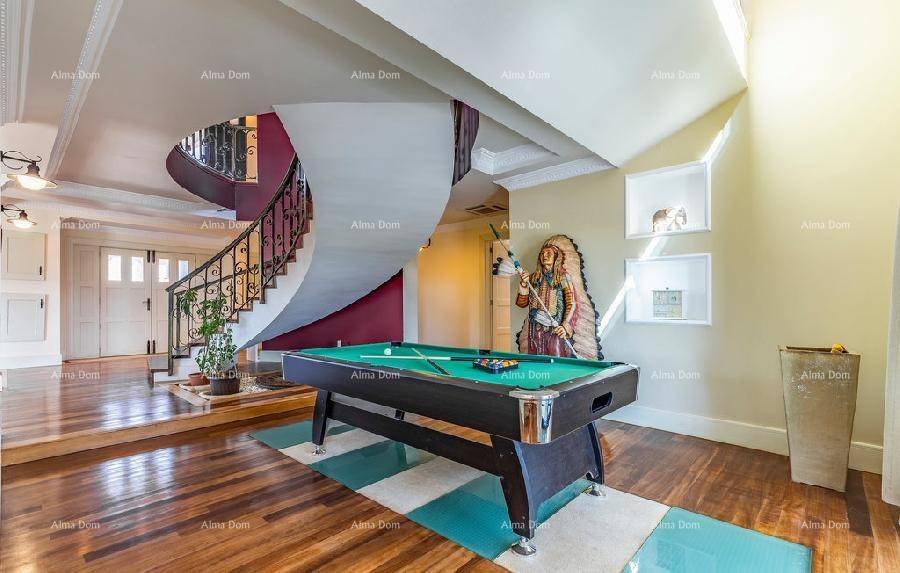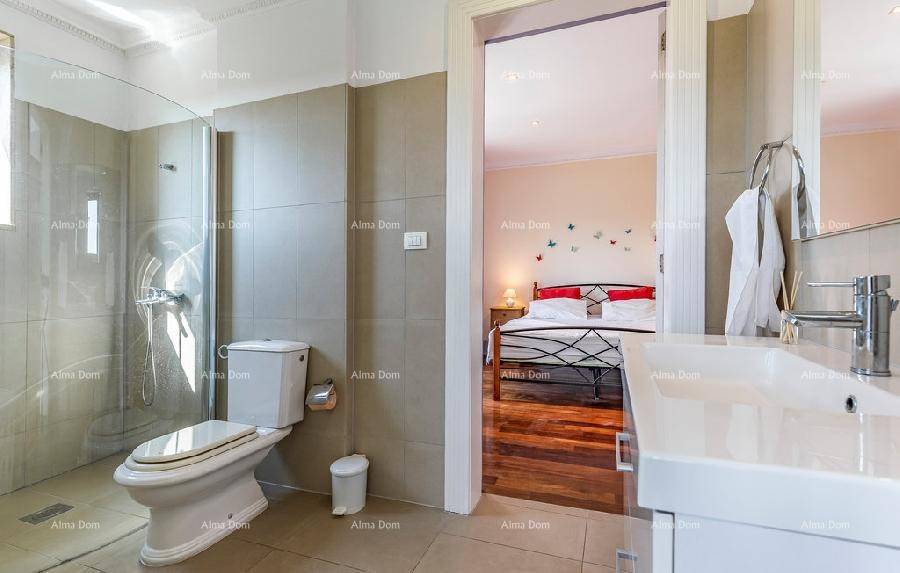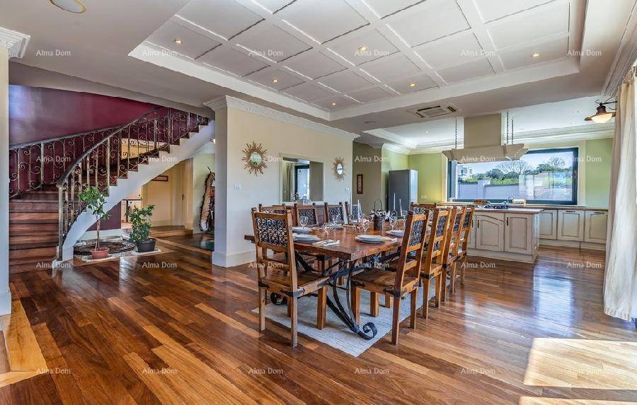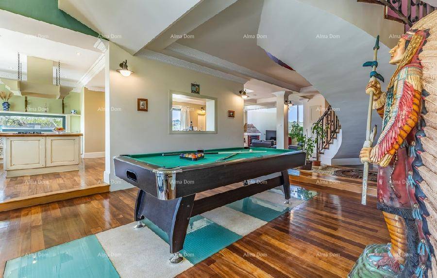 Отдельная роскошная вилла с бассейном. 5 минут пешком до пристани и моря. Этот красивый дом находится всего в 300 м от моря. На первом этаже виллы находится просторная гостиная с бильярдом и настольным теннисом, кухня, кабинет, санузел и лестница наверх. В галерее есть небольшой тренажерный зал, три спальни, 2 санузла. Центральное отопление и кондиционирование во всем доме. В саду виллы есть бассейн 8 х 3,5 м. Три внешних парковочных места и два гаражных места.