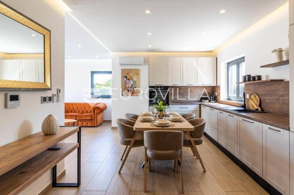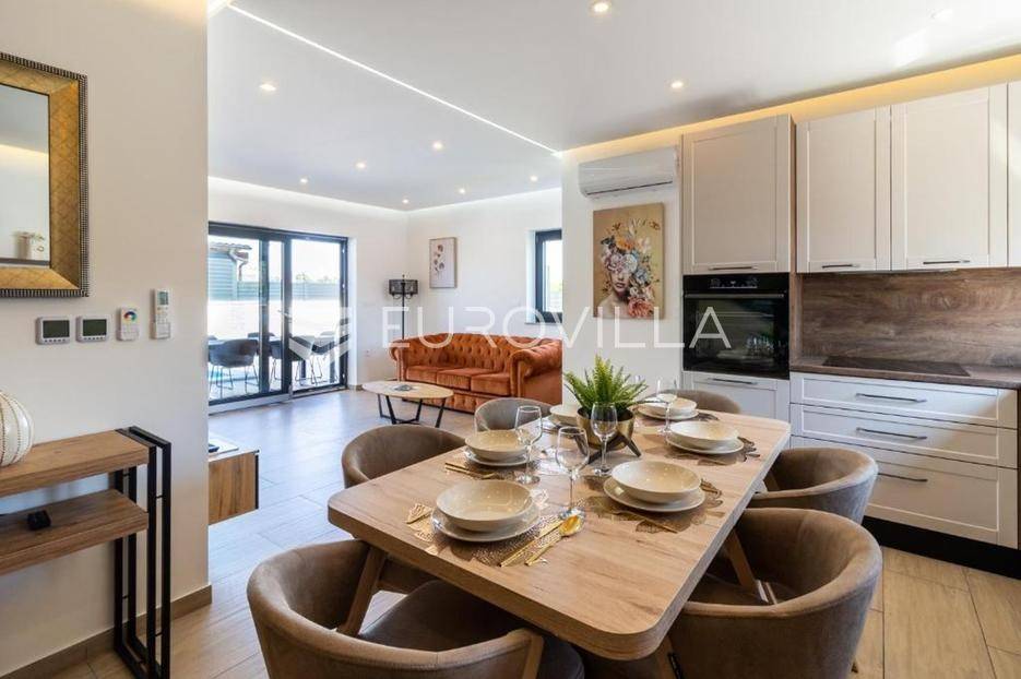 Ova prekrasna vila smještena je na mirnoj lokaciji, svega nekoliko kilometara od Pule, Medulina i Ližnjana i predstavlja idealnu priliku za dugoročni najam.Sastoji se od open space dnevnog boravka s kuhinjom i blagovaonicom, spavaće sobe, ostave i kupaonice u prizemlju, dok su na katu dvije spavaće sobe te dvije kupaonice od kojih jedna spavaća soba sadrži vlastitu kupaonicu i terasu s pogledom na prirodu.Prostorije u prizemlju poput dnevnog boravka i spavaće sobe pružaju direktan izlaz na terasu i bazen.Nekretnina je u potpunosti opremljena i namještena.Okućnica je uređena i ograđena te sadrži 3 parkirna mjesta.Za dodatne informacije kao i dogovora oko razgleda ove ville slobodno nam se javite, stojimo Vam na raspolaganju.... Više na eurovilla.hr, ID: 796482