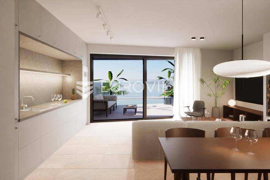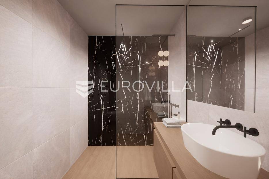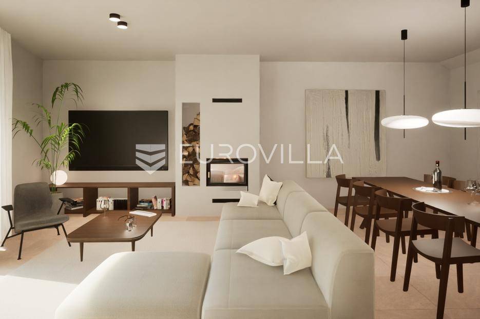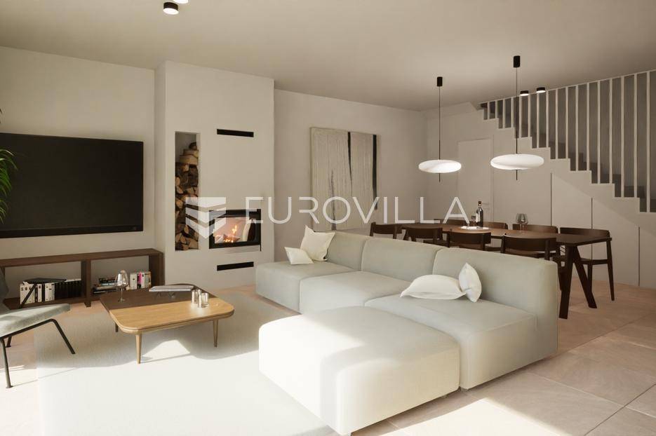Zakoračite u svijet ekskluzivnog življenja na otoku Pagu, u mjestu Mandre, gdje se na povišenom položaju svega 300 metara od mora nalazi luksuzna vila u nizu.Ova novogradnja iz 2024. godine predstavlja spoj suvremene arhitekture, vrhunske gradnje i nenadmašnog pogleda na more.Ključne značajke:130 m² raspoređen na dvije etažeZatvoreni prostor 99,14 m²Privatni bazen 21,25 m²Uređeni vrt i sunčalište 100 m²Udaljenost od mora: 300 mRaspored:Prizemlje: moderna kupaonica (2,24 m²) te open-space dnevni boravak, kuhinja i blagovaonica (44,03 m²) s direktnim izlazom u vrt i na bazenKat: dvije master spavaće sobe (12,10 m² i 12,05 m²), svaka s vlastitom kupaonicom (4,77 m² i 4,62 m²), dodatna treća soba (6,91 m²) te hodnik sa stubištem (12,42 m²)Kvaliteta gradnje i opreme:armirano-betonska konstrukcija i 20 cm termo fasadatroslojna aluminijska stolarija s solar control tehnologijom (četiri godišnja doba)centralna klimatizacija putem krovne jediniceelektrično podno grijanje u svim prostorijamaluksuzna talijanska keramikasanitarije Villeroy & Boch i oprema Hans GroheSvaka prostorija pažljivo je projektirana kako bi pružila neometan pogled na more - panoramu koja iznova oduzima dah i u potpunosti zaokružuje doživljaj ove sofisticirane vile.Mandre su mirno i šarmantno mjesto na jugozapadnoj obali otoka Paga, poznato po kristalno čistom moru, uređenim plažama i slikovitim zalascima sunca. Naselje je okruženo borovom šumom i mediteranskim raslinjem, što mu daje poseban ugođaj privatnosti i opuštanja. Idealno je za obiteljski odmor i miran mediteranski način života, a istovremeno nudi odličnu povezanost s ostatkom otoka.Za dodatne informacije, tlocrte ili termin obilaska lokacije stojimo na raspolaganju.... Više na eurovilla.hr, ID: 805579