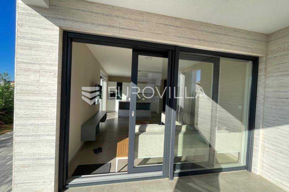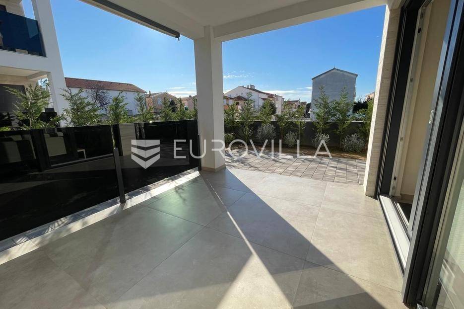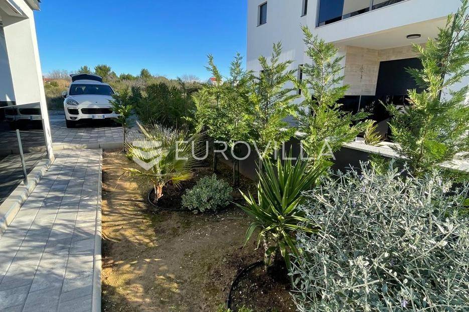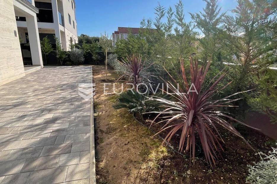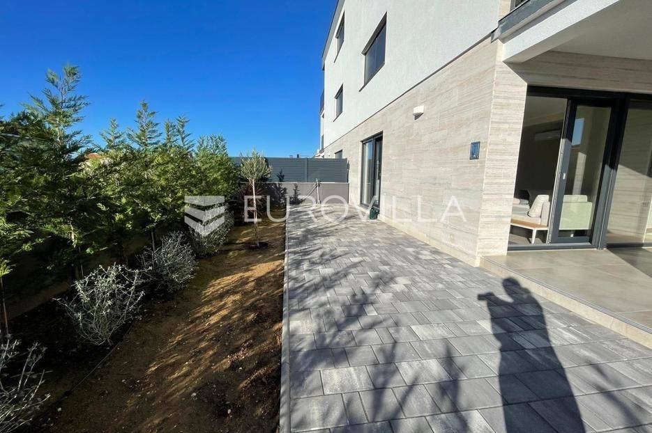 Zadar, Privlaka, Škrapavac, luksuzno opremljen dvosoban stan s vrtom površine 94,97m2.Stan se nalazi u prizemlju moderne stambene zgrade s ukupno 5 jedinica na odličnoj lokaciji udaljen svega 80m od prve plaže.Sastoji se od dvije spavaće sobe, dvije kupaone, dnevnog boravka s kuhinjom i blagovaonom otvorenog tlocrta i velike natkrivene terase 12m2 s pogledom na more.Stanu također pripada i dodatni prostor za ostavu ispod stubišta te ograđena okućnica / vrt /terasa veličine 96 m2 (s izvedenim instalacijama za buduću ljetnu kuhinju).Opremljen prvoklasnom talijanskom gres keramikom velikog formata, klimauređajima (sve prostorije) s WiFI daljinskim upravljanjem, podnim grijanjem, velikim staklenimstijenama s roletama na struju i komarnicima, blindiranim ulaznim vratima...Stanu pripadaju i 2 parkirna mjesta.Uredno vlasništvo s uporabnom dozvolom.Iako se nalazi na mirnoj i tihoj lokaciji, u blizini se nalaze i svi potrebni sadržaji za ugodan život poput dućana, tržnice, kafića, restorana.Za sve dodatne informacije stojimo na raspolaganju.... Više na eurovilla.hr, ID: 813088