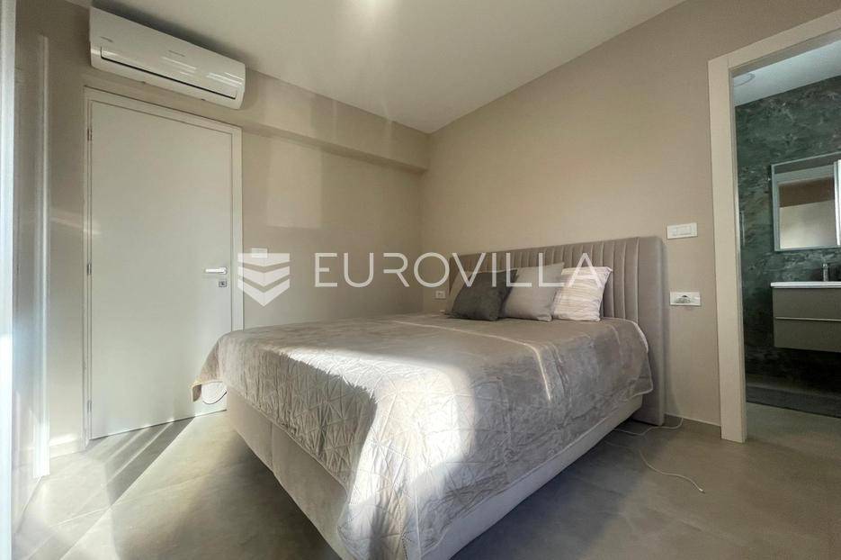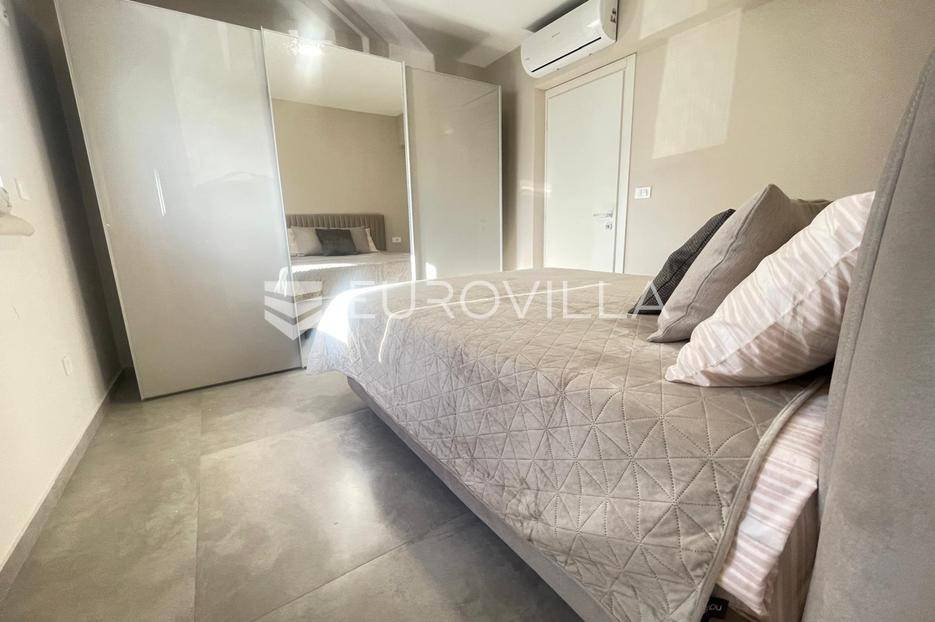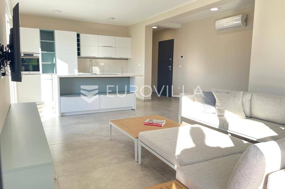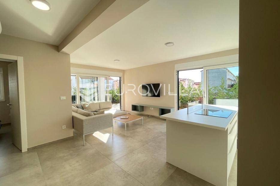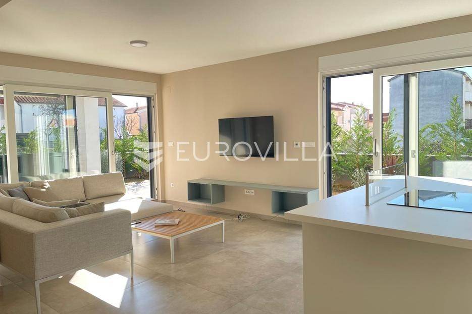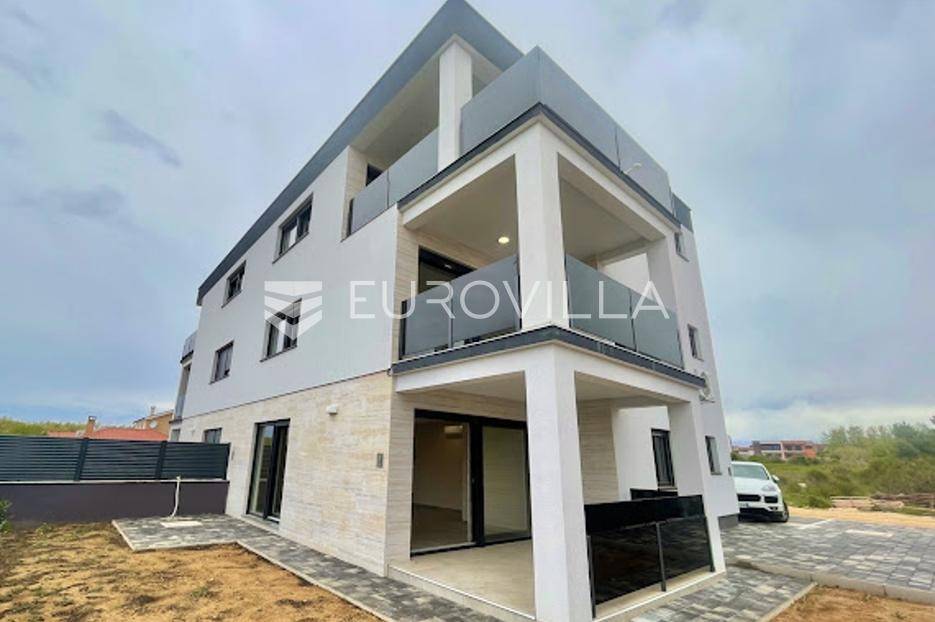 Zadar, Privlaka, Škrapavac, luksuzno opremljen dvosoban stan s vrtom površine 94,97m2.Stan se nalazi u prizemlju moderne stambene zgrade s ukupno 5 jedinica na odličnoj lokaciji udaljen svega 80m od prve plaže.Sastoji se od dvije spavaće sobe, dvije kupaone, dnevnog boravka s kuhinjom i blagovaonom otvorenog tlocrta i velike natkrivene terase 12m2 s pogledom na more.Stanu također pripada i dodatni prostor za ostavu ispod stubišta te ograđena okućnica / vrt /terasa veličine 96 m2 (s izvedenim instalacijama za buduću ljetnu kuhinju).Opremljen prvoklasnom talijanskom gres keramikom velikog formata, klimauređajima (sve prostorije) s WiFI daljinskim upravljanjem, podnim grijanjem, velikim staklenimstijenama s roletama na struju i komarnicima, blindiranim ulaznim vratima...Stanu pripadaju i 2 parkirna mjesta.Uredno vlasništvo s uporabnom dozvolom.Iako se nalazi na mirnoj i tihoj lokaciji, u blizini se nalaze i svi potrebni sadržaji za ugodan život poput dućana, tržnice, kafića, restorana.Za sve dodatne informacije stojimo na raspolaganju.... Više na eurovilla.hr, ID: 813088