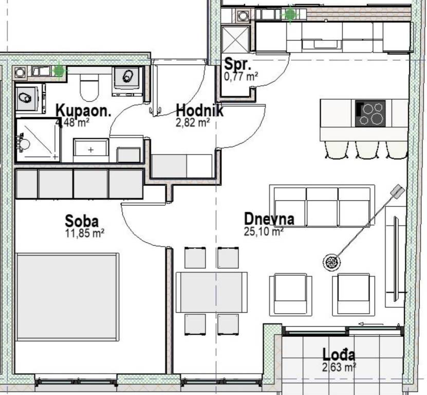 Retfala - prodaje se dvosoban stan na 2. katu višestambene zgrade.Stan je dio planirane stambene izgradnje i projektiran je s jasno definiranim dnevnim i spavaćim dijelom. Nalazi se na 2. katu zgrade te je predviđen za svakodnevno stanovanje ili kao investicija za najam.Ulaz u stan vodi u hodnik površine 2,82 m2, iz kojeg se pristupa svim prostorijama. Dnevni boravak s kuhinjom i blagovaonicom površine 25,10 m2 čini najveći dio stana. Kuhinja je projektirana uz zid, s dodatnim manjim spremišnim prostorom površine 0,77 m2. Iz dnevnog prostora omogućen je izlaz na lođu površine 2,63 m2. Spavaća soba površine 11,85 m2 smještena je u mirnijem dijelu stana, odvojena od dnevnog boravka. Kupaonica je površine 4,48 m2 i dostupna je iz hodnika.Projektom je predviđena standardna sanitarna oprema, keramika i unutarnja stolarija. Ovisno o fazi izgradnje, moguća je prilagodba završnih materijala i pojedinih unutarnjih rješenja u dogovoru s investitorom.Nekretnina se nalazi u Retfali, u dijelu grada s razvijenom infrastrukturom. U blizini su dostupni škola, vrtić, trgovine, javni prijevoz, dom zdravlja i ostali sadržaji potrebni za svakodnevni život, uz dobru povezanost s ostalim dijelovima grada.Za sva dodatna pitanja i informacije stojimo Vam uvijek na raspolaganju.... Više na eurovilla.hr, ID: 831770