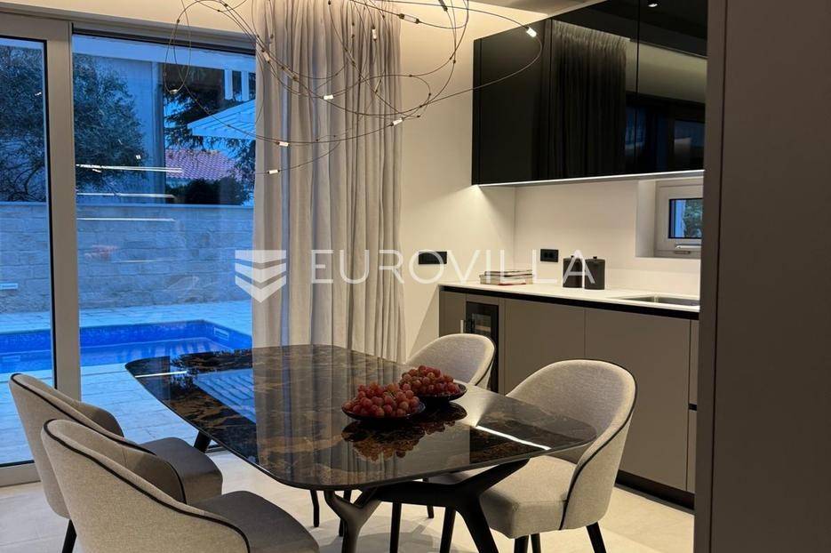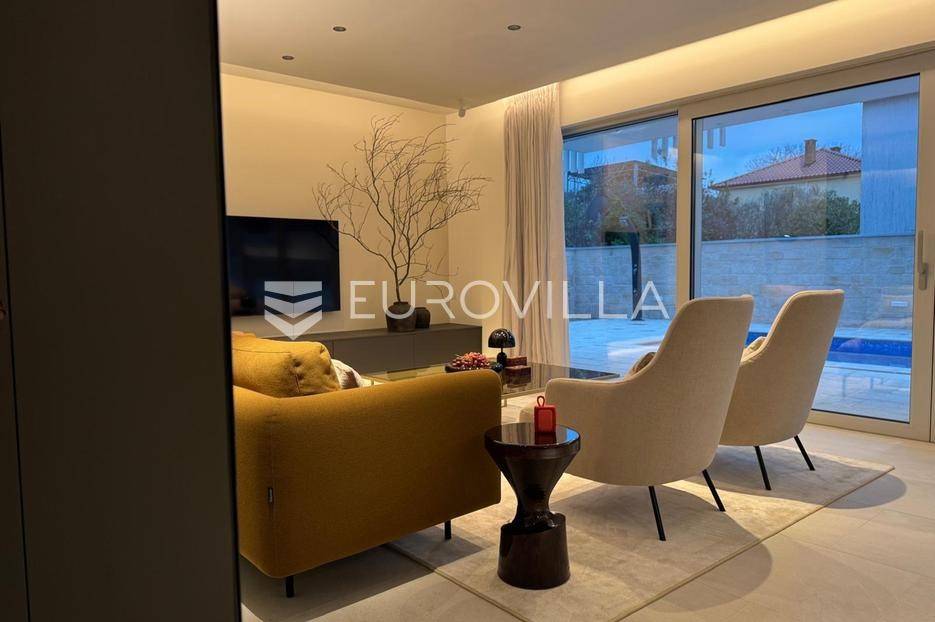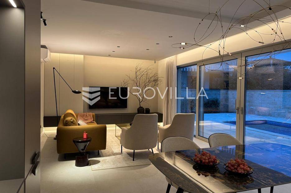 Krk, predivan trosoban stan u prizemlju luksuzne novogradnje. Ukupne površine 93 m2.Stan se sastoji od ulaznog hodnika, dvije spavaće sobe, kupaonice i prostranog dnevnog boravka, kuhinje s blagovaonicom te spremište. Iz dnevnog boravka se izlazi na prostranu, natkrivenu terasu površine 26,70 m2.Stan je u potpunosti dizajnerski uređen s potpisom arhitektice Tine Kurpez.Stan će biti potpuno namješten luksuznim namještajem koji je uključen u cijenu nekretnine. Stanu pripadaju dva parkirna mjesta.Zgrada se sastoji od tri stambene jedinice te je opremljena vrhunskom opremom poput aluminijske stolarije, protuprovalnih vrata, troslojnog parketa prilagođenog za podno grijanje. Klima uređaj u svakoj prostoriji. Stanovi su ugodni i svijetli, odličnog i funkcionalnog rasporeda.Stambena zgrada se nalazi na izvrsnoj lokaciji u centru grada Krka, 250 metara od mora.Za više informacija kontaktirajte nas.... Više na eurovilla.hr, ID: 872888