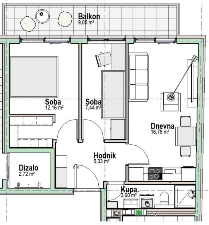 Osijek, Retfala - na prodaju je trosobni stan na 1. katu višestambene zgrade koja počinje sa izgradnjom kraljem ljeta 2026. godine.Stan je dio planirane stambene izgradnje i projektiran je s jasno odvojenim dnevnim i spavaćim dijelom. Nalazi se na 1. katu zgrade te je predviđen za svakodnevno stanovanje manjeg kućanstva ili kao investicija za najam.Ulaz u stan vodi u hodnik površine 5,33 m2, iz kojeg se pristupa svim prostorijama. Dnevni boravak s kuhinjom i blagovaonicom površine 16,78 m2 smješten je uz vanjsku stranu stana te ima izlaz na balkon površine 9,05 m2. Stan raspolaže s dvije sobe, jednom površine 12,16 m2 te drugom površine 7,44 m2, pogodnom za dječju sobu, radnu ili gostinsku namjenu. Kupaonica je površine 3,60 m2 i dostupna je iz hodnika.Projektom je predviđena standardna sanitarna oprema, keramika i unutarnja stolarija. U određenoj fazi izgradnje moguća je prilagodba završnih materijala i unutarnjih rješenja, ovisno o dogovoru s investitorom.Nekretnina se nalazi u Retfali, u dijelu grada s razvijenom infrastrukturom. U blizini su dostupni škola, vrtić, trgovine, javni prijevoz, dom zdravlja i ostali sadržaji potrebni za svakodnevni život, uz dobru povezanost s ostalim dijelovima grada.Za sva dodatna pitanja i informacije stojimo Vam uvijek na raspolaganju.... Više na eurovilla.hr, ID: 879683