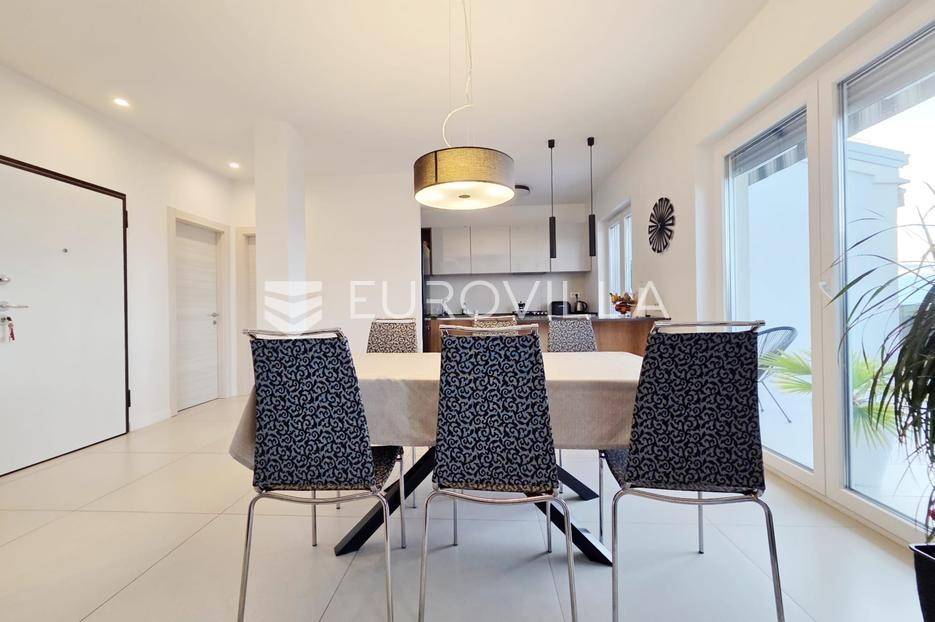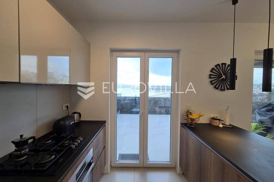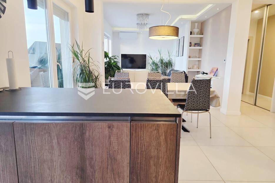 Na mirnoj i traženoj lokaciji na Turniću nalazi se iznimno kvalitetan i rijedak penthouse u novijoj stambenoj zgradi, idealan za obiteljski život ili kao sigurna dugoročna investicija. Smješten na drugom, ujedno i posljednjem katu, ovaj prostrani trosobni stan s dnevnim boravkom pruža visoku razinu komfora, privatnosti i funkcionalnosti, uz osjećaj ekskluzivnosti kakav pruža upravo penthouse tip nekretnine.Ukupna površina stana iznosi 114,75 m², a dodatnu vrijednost daje tavanski prostor od 37,35 m², spremište u prizemlju te dva vanjska parkirna mjesta. Trostrana orijentacija na jug, zapad i sjever osigurava obilje prirodne svjetlosti tijekom cijelog dana i ugodnu atmosferu u svim prostorijama.Središnji dio čini prostrani dnevni boravak povezan s kuhinjom i blagovaonicom, s izlazom na impresivnu terasu površine 36,48 m². S terase se pruža lijep pogled na more, a njezina veličina pruža savršen prostor za opuštanje, druženja i uživanje na otvorenom, što dodatno naglašava penthouse karakter ove nekretnine.Interijer je uređen s puno pažnje i osjećaja za detalje, a stan je potpuno namješten i spreman za useljenje bez dodatnih ulaganja. Grijanje je etažno na gradski plin, s podnim grijanjem u dnevnom dijelu i radijatorima u sobama, dok klima uređaj osigurava dodatnu udobnost tijekom cijele godine. Ugrađena je kvalitetna PVC stolarija, protuprovalna vrata te sustav video nadzora, što dodatno doprinosi sigurnosti i energetskoj učinkovitosti.Zahvaljujući odličnoj lokaciji, kvaliteti gradnje i rijetkosti ovakvih nekretnina na tržištu, ovaj penthouse predstavlja izvanrednu priliku za sve koji traže moderan, prostran i svijetao dom s velikom terasom i pogledom na more.Za sve ostale informacije slobodno nas kontaktirajte.... Više na eurovilla.hr, ID: 914587
