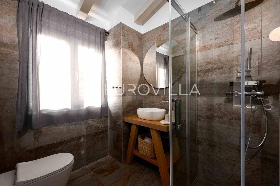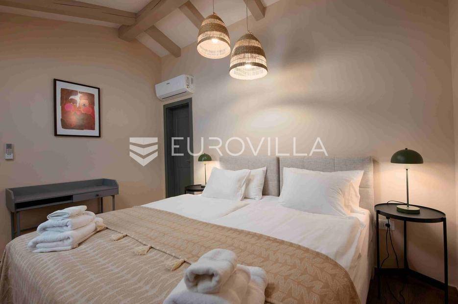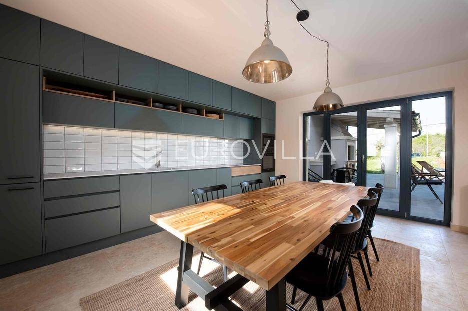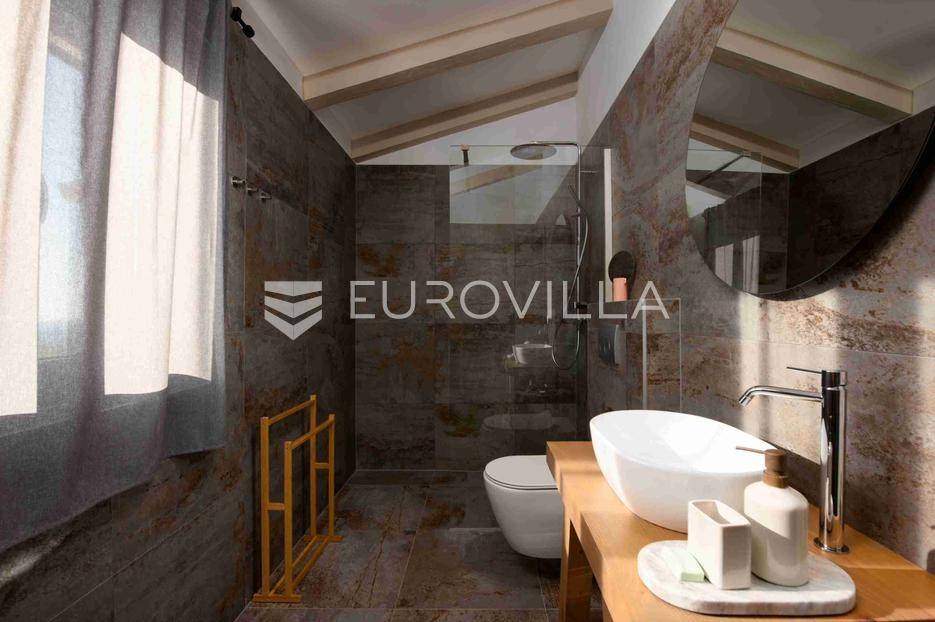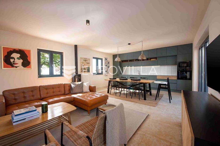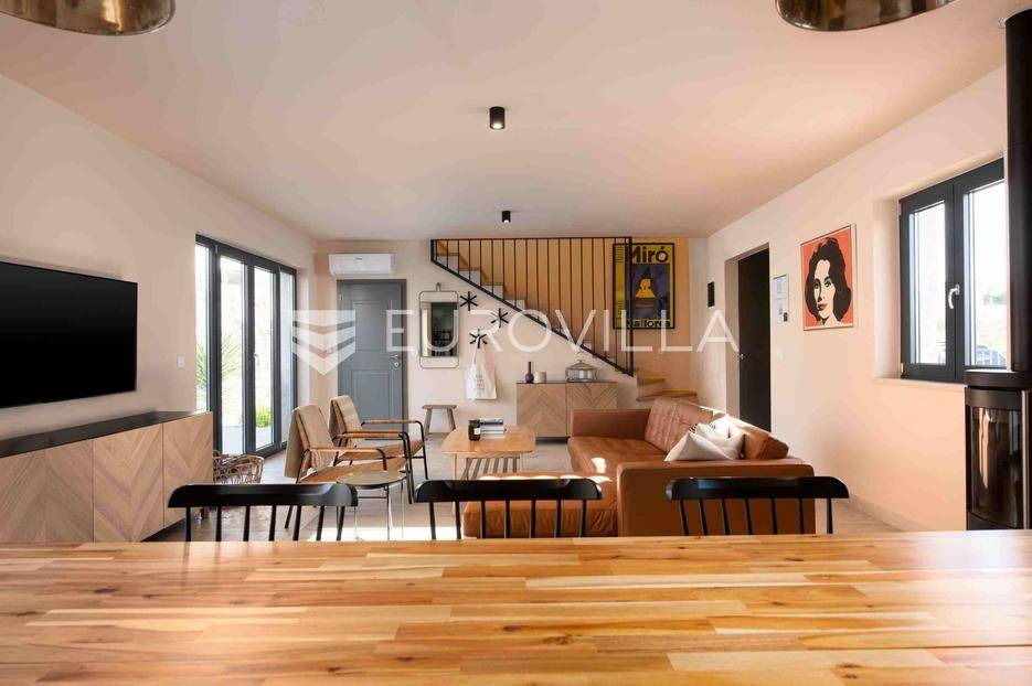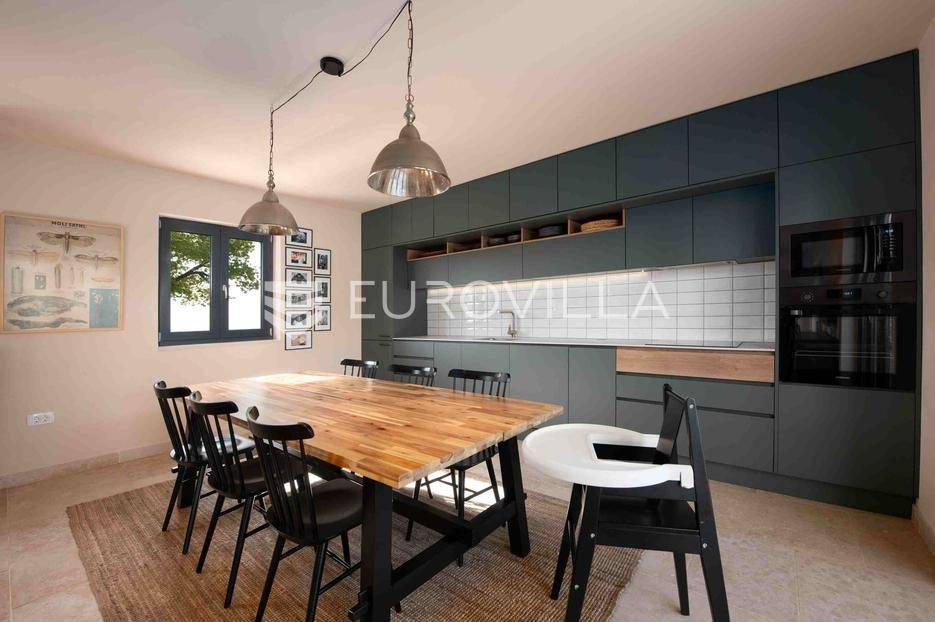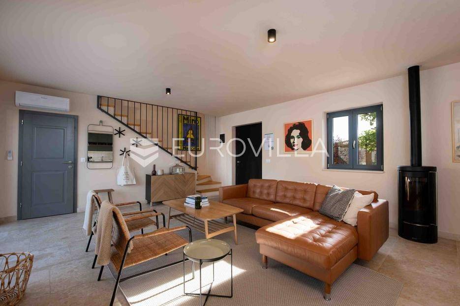 U jednom od najljepših dijelova Vižinade prodaje se autentična samostojeća kamena kuća s bazenom, vanjskom kuhinjom i otvorenim pogledom na more. Ova šarmantna kuća pruža savršen spoj tradicije i modernog komfora te se prostire na dvije etaže:Prizemlje:Natkrivena ulazna terasaOpen space dnevni boravak, kuhinja i blagovaonica s izlazom na vrtGostinjski WCKat:Dvije prostrane spavaće sobe, svaka s vlastitom kupaonicomEksterijer uključuje:Privatni bazen dimenzija 12.80 m x 3.50 mVanjsku kuhinju i roštilj za druženja na otvorenomMaslinik i mediteranski vrtTri parkirna mjestaKuća je kategorizirana s 4 zvjezdice i već uspješno posluje kao turistički objekt, s odličnim recenzijama i stalnim gostima.Za više informacija stojimo vam na raspolaganju.... Više na eurovilla.hr, ID: 919736