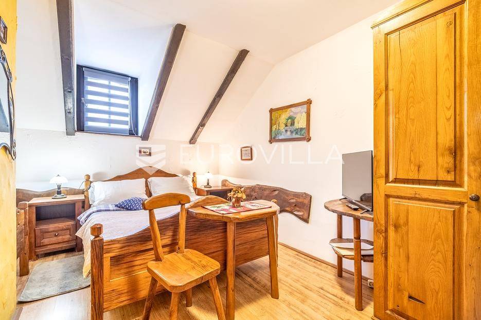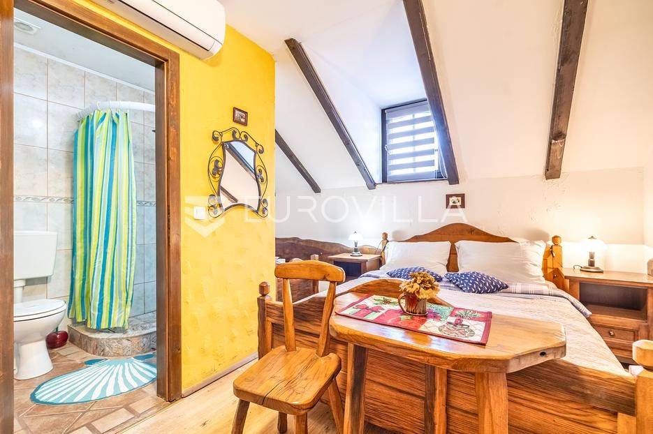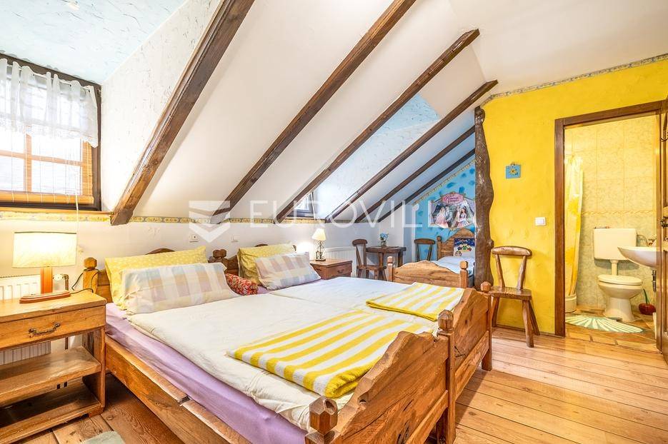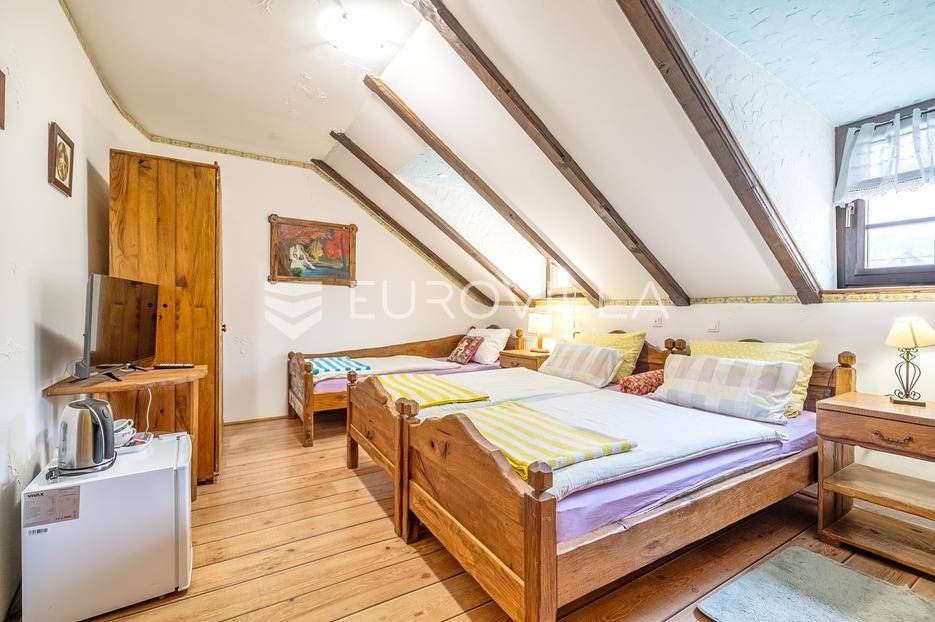 Hrvatsko zagorje, Klanjec - uhodani obiteljski hotel s restoranom, wellnessom i dodatnom kućom | izvrsna investicijska prilikaNa prodaju je jedinstvena investicijska nekretnina u srcu Hrvatskog zagorja - obiteljski hotel/pansion „Stara Vodenica“ s dugogodišnjim uspješnim poslovanjem, smješten na prostranoj parceli okruženoj zelenilom i prirodom.Hotel raspolaže s 8 smještajnih jedinica (dvokrevetne, trokrevetne i obiteljske sobe) s ukupno 22 ležaja, kategoriziranih kao pansion - comfort. U sklopu objekta nalazi se restoran kapaciteta 70 sjedećih mjesta, terasa s dodatnih 20 mjesta te vanjski vrt s oko 40 sjedećih mjesta. Ponuda restorana temelji se na tradicionalnoj zagorskoj kuhinji, po kojoj je objekt prepoznat i iznimno dobro pozicioniran na tržištu.Dodatni sadržaji uključuju:wellness zonu (sauna i jacuzzi),vanjski bazen sa sunčalištem,uređenu relax zonu,veliko dvorište s više od 3.800 m² zelenih površina,dječje igralište,sjenice za boravak i posluživanje hrane,mali zoo vrt s domaćim životinjama,autentičnu staru vodenicu kao dodatnu atrakciju.Cijeli kompleks uređen je u autohtonom zagorskom rustikalnom stilu, što dodatno doprinosi doživljaju seoskog turizma i visokoj popunjenosti tijekom cijele godine.Dodatna vrijednost investicije je i samostojeća kuća na istoj parceli, koja se sastoji od dva odvojena trosobna stana, jedan u prizemlju drugi na prvom katu, s posebnim ulazima. Kuća pruža više mogućnosti: stanovanje vlasnika, turistički najam, dodatne smještajne jedinice ili vikend-namjenu.Lokacija je iznimno atraktivna - mirno okruženje, a u blizini brojnih zagorskih znamenitosti: Etno selo Kumrovec, Veliki Tabor, Trakošćan, Muzej krapinskog pračovjeka, Marija Bistrica, Terme Tuhelj, Krapinske i Stubičke Toplice. Zagreb je udaljen cca 30 km.Prednosti nekretnine:uhodan i profitabilan turistički posaoprepoznatljiv brend i dugogodišnja reputacijabogati dodatni sadržaji (wellness, bazen, restoran)velika parcela i mogućnost daljnjeg razvojadodatna kuća s dva stana uključena u cijenuIzuzetna prilika za investitore koji traže gotov posao s brzim povratom ulaganja, kao i za one koji žele spojiti život i poslovanje u jednom od najljepših dijelova Zagorja.Ostale informacije dostupne su na upit.... Više na eurovilla.hr, ID: 938776