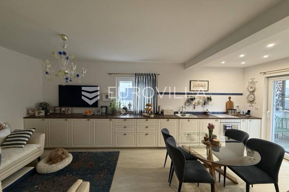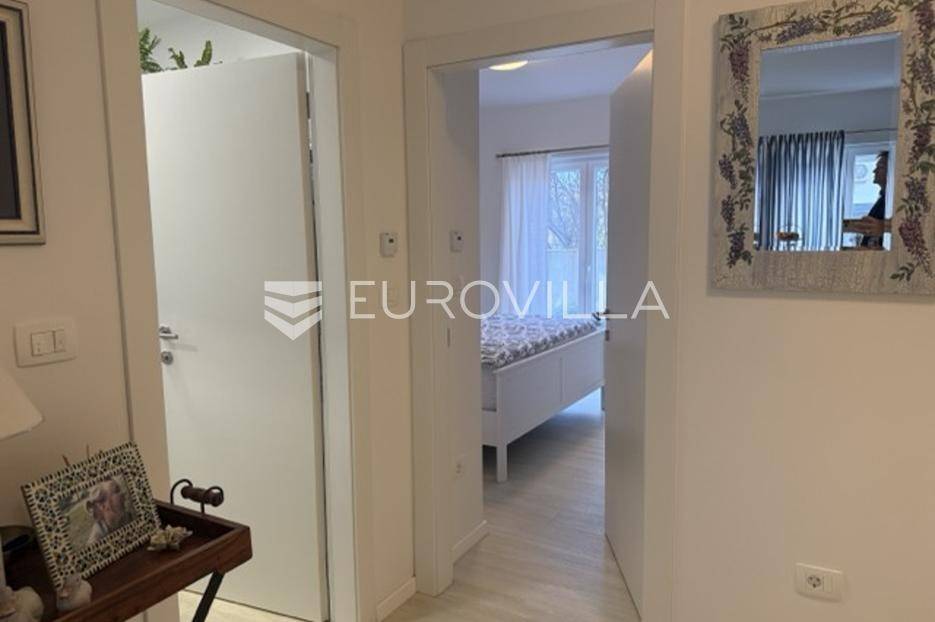 Ovaj elegantan stan u Medulinu predstavlja savršen spoj suvremene arhitekture i istinskog mediteranskog načina života na prestižnoj lokaciji.Smješten u mirnom dijelu naselja, okružen lijepim stambenim zgradama, ovaj dom se nalazi u prizemlju moderne novogradnje izgrađene 2022. godine. Zgrada je koncipirana kao intimna rezidencija sa svega tri stambene jedinice, što budućim vlasnicima jamči visoku razinu privatnosti i mira. Ukupna površina od 73 m² pomno je planirana kako bi se osigurao maksimalan komfor i funkcionalnost, dok trostrana orijentacija prema istoku, jugu i zapadu omogućava prodiranje prirodne svjetlosti u svaki kutak stana tijekom cijelog dana. Unutrašnjost odiše luksuzom i modernim dizajnom, a nekretnina se prodaje potpuno namještena i opremljena vrhunskim uređajima.Središnji dio stana čini prostrani open space dnevni boravak povezan s modernom kuhinjom i blagovaonicom. Veliki stakleni otvori ne samo da pružaju obilje svjetlosti, već i vizualno proširuju prostor, stvarajući fluidnu vezu s vanjskim okruženjem. Dvije udobne i prozračne spavaće sobe imaju izravan pristup impresivnom vrtu od 120 m² koji u potpunosti okružuje stan, pružajući idealno utočište za opuštanje. Kupaonica je opremljena visokokvalitetnom keramikom i sanitarijama, a dodatna praktičnost postignuta je ugradbenim spremištem u hodniku. Za vrhunsku udobnost tijekom cijele godine, u cijelom je stanu ugrađeno podno grijanje, sistem toplinske pumpe, što uz vrhunsku izolaciju novogradnje osigurava niske režijske troškove i ugodnu klimu.Vanjski prostor ove nekretnine njezina je najveća prednost i pravi mali privatni raj. Brižno uređen vrt nudi dovoljno prostora za ljetna druženja, roštilj ili postavljanje dječjeg igrališta, a u njemu se nalazi i komforna vrtna kućica idealna za odlaganje bicikala, alata i ljetne garniture. Cijeli posjed je ograđen modernom, estetski privlačnom ogradom koja osigurava potpunu intimu. Stanu pripada i vlastito parkirno mjesto zaštićeno nadstrešnicom. Lokacija je naprosto izvrsna na samo 15 minuta laganog hoda nalazi se poznata pješčana plaža Bijeca, kao i brojni restorani, kafići i šetnice.Ova nekretnina predstavlja idealnu priliku za luksuzan obiteljski život ili kao sigurna investicija za turistički najam u jednom od najtraženijih mjesta na istarskoj obali.Za više informacija i organizaciju razgleda slobodno nas kontaktirajte.... Više na eurovilla.hr, ID: 941377