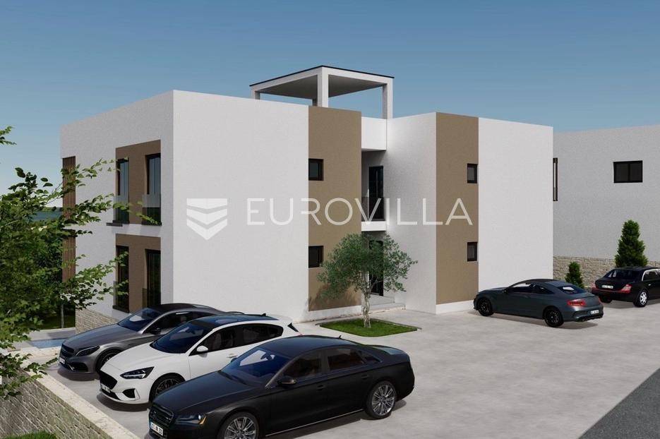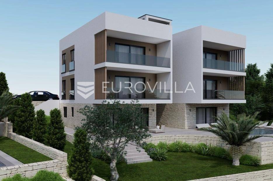 Trogir, Čiovo, ekskluzivna prodaja dvosobnog stana položenog na prvoj etaži manjeg stambenog objekta s ukupno pet stambenih jedinica.Stan je podijeljen na hodnik, kupaonicu, dvije spavaće sobe i dnevni dio ( kuhinja/ blagovaonica/ dnevni boravak ) s direktnim izlazom na natkriveni balkon površine 14 m2.Zatvorena stambena površina iznosi 55, 29 m2.U cijenu je uključeno jedno vanjsko nenatkriveno parkirno mjesto.Gradnja objekta je krenula u listopadu, a useljenje je predviđeno u prvoj polovici 2027. godine.Izvrsna mikrolokacija, u blizini centra Trogira, te samo nekoliko koraka od uređene plaže.Za sve dodatne informacije, stojimo vam na raspolaganju.... Više na eurovilla.hr, ID: 951926