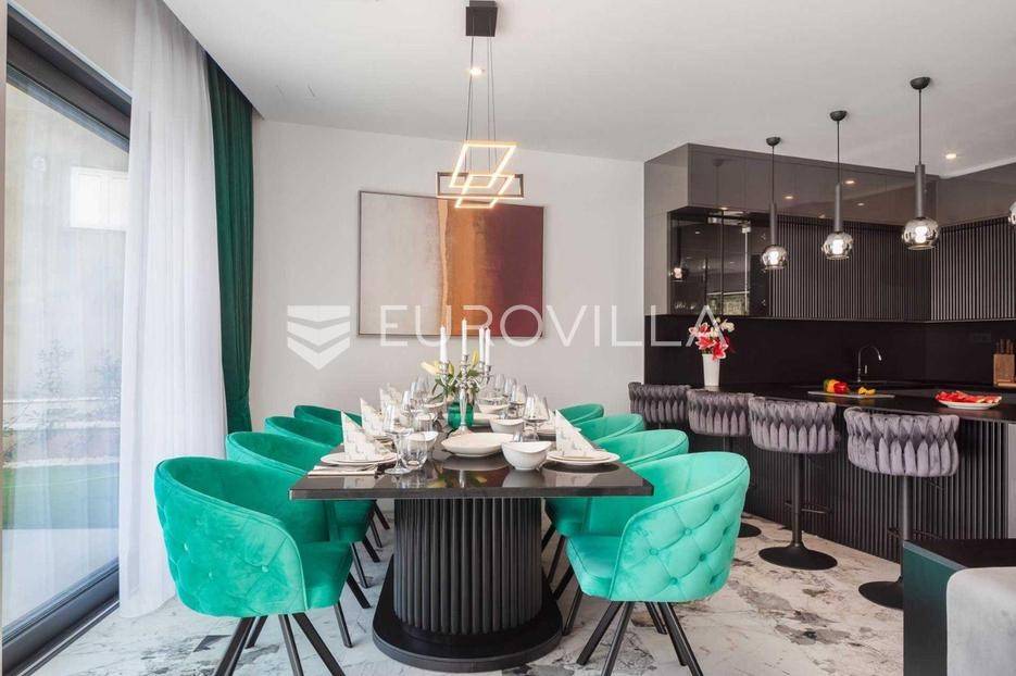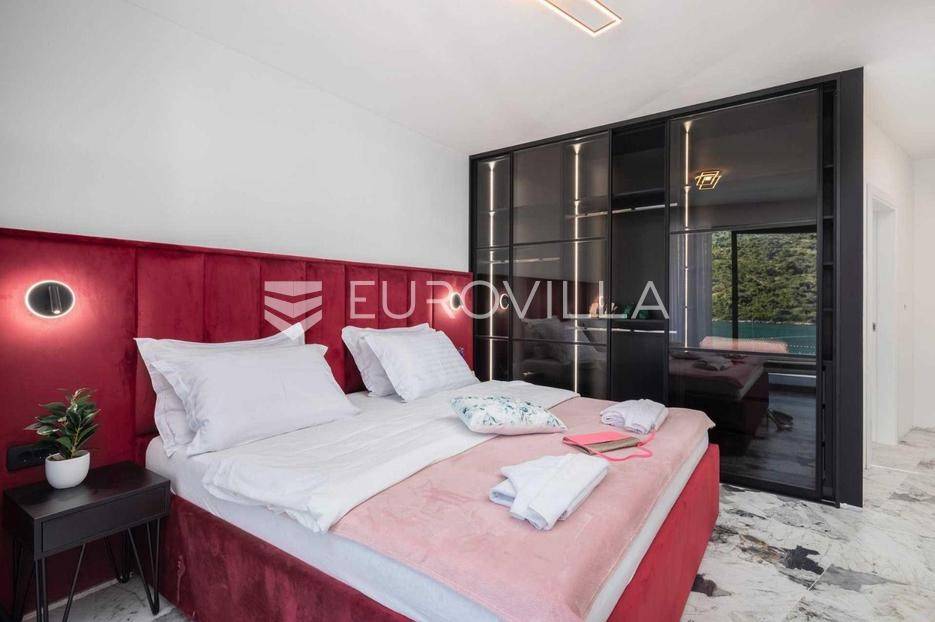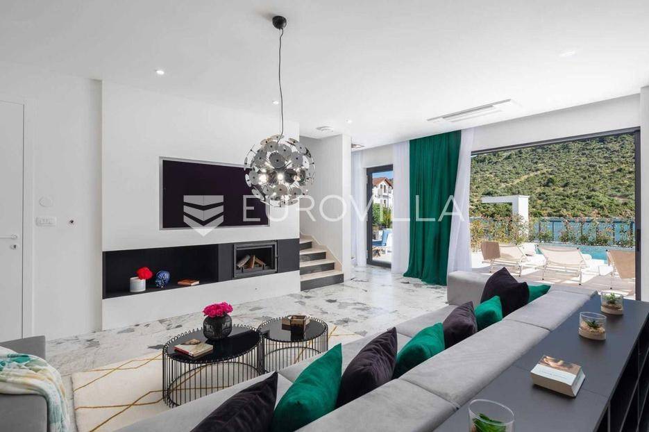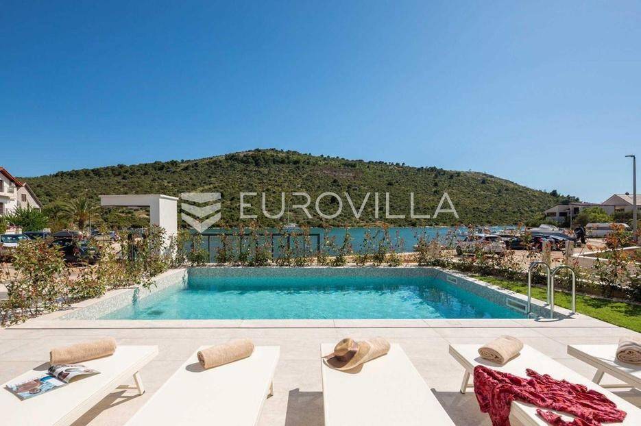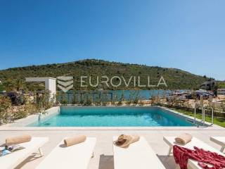 Rogoznica, na parceli površine 400 m2 smjestila se predivna novoizgrađena dvokatnica s bazenom, u prvom redu do mora.Interijer vile je pažljivo osmišljen, luksuzan, visokokvalitetan i funkcionalan, a gotovo svaka prostorija nudi očaravajuć pogled na more.Prizemlje je podijeljeno na kuhinju s blagovaonicom, dnevni boravak, wc, komfornu spavaću sobu s pripadajućom kupaonicom, Unutarnjim stepenicama je povezano s prvom etažom, gdje se nalaze još tri spavaće sobe s pripadajućim kupaonicama i lođama.Uređena okućnica krije bazen , sunčalište, vanjski tuš i parking dostatan za dva automobila .Za sve dodatne informacije, stojimo vam na raspolaganju.... Više na eurovilla.hr, ID: 956620