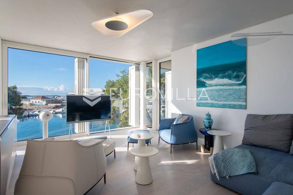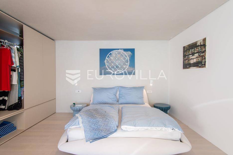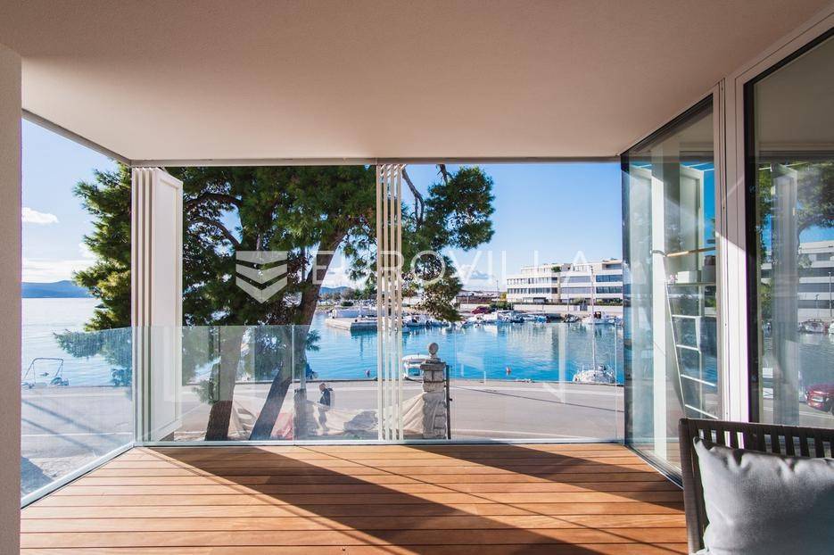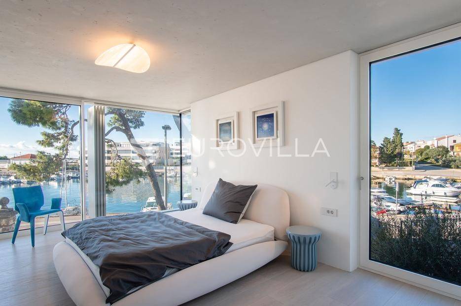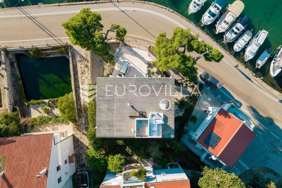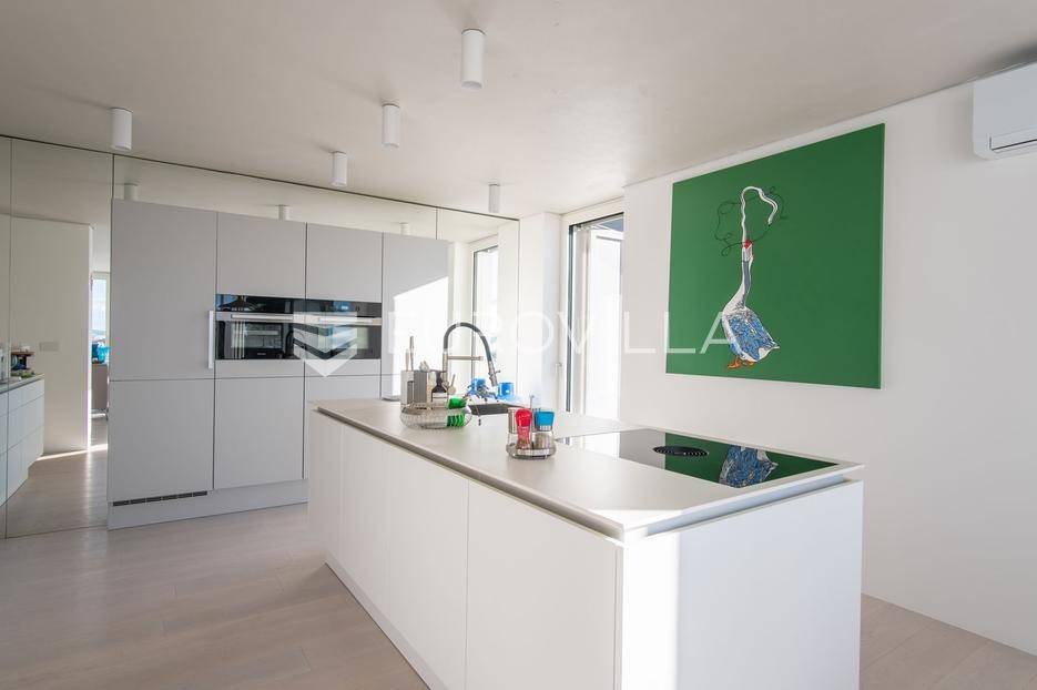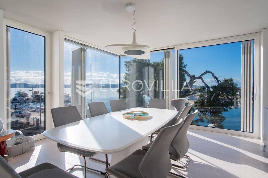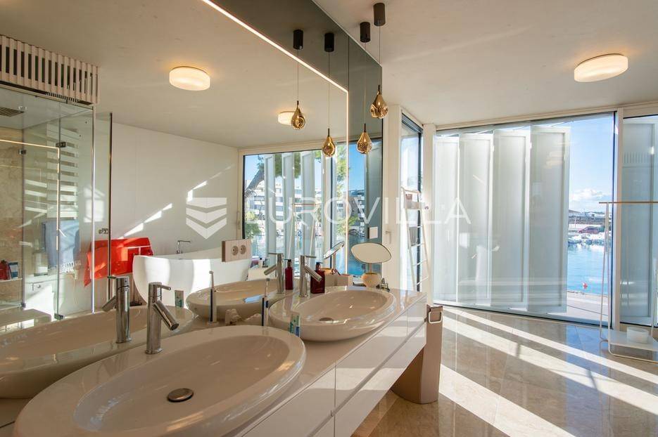 Zadar, na najtraženijoj rezidencijalnoj lokaciji u Zadru, neposredno uz more i šetnicu, nalazi se suvremena vila čiji dizajn, oprema i položaj zadovoljavaju najviše arhitektonske i estetske standarde.Objekt se proteže na četiri etaže, povezane privatnim liftom, s ukupnom stambenom površinom zatvorenog dijela od 200,91 m².Otvoreni dnevni prostori s panoramskim staklenim stijenkama pružaju neprekinut pogled na more, gradsku luku i zadarski arhipelag.Vila sadrži dvije prostrane spavaće sobe s garderobama i terasama u potpunoj privatnosti, četiri moderno uređene kupaonice, potpuno opremljenu kuhinju i prostran dnevni boravak, strojarnicu s vešerajem sve izvedeno u vrhunskim materijalima i s pažljivo biranim detaljima i opremom.Posebnu vrijednost nekretnine predstavlja velika krovna terasa površine 106,47 m² - idealna za opuštanje, druženje i uživanje u zalascima sunca. Na terasi postoji i priprema za ugradnju bazena ili swim spa/jacuzzija, što omogućuje budućim vlasnicima kreiranje privatne wellness oaze s panoramskim pogledom.Na raspolaganju je i 72,24 m² parkirnog prostora, s tri natkrivena i dva otvorena mjesta.Vila je opremljena sustavom grijanja i hlađenja Mitsubishi, aluminijskim Schüco prozorima s dvostrukim ostakljenjem, Griesser kliznim panelima i vrhunskim sanitarijama Laufen i Duravit.Fasada je izvedena u Alucobond sustavu, s detaljima u tikovini na terasama i staklenim ogradama koje dodatno naglašavaju čistinu linija i kvalitetu izrade.Lokacija omogućuje brz pristup centru grada, restoranima, trgovinama i svim sadržajima, dok je međunarodna zračna luka udaljena svega 20 minuta vožnje. Vila je pogodna za stalni boravak, ali i kao investicija u premium turizam.Za više informacija i obilazak vile stojimo na raspolaganju.... Više na eurovilla.hr, ID: 959274
