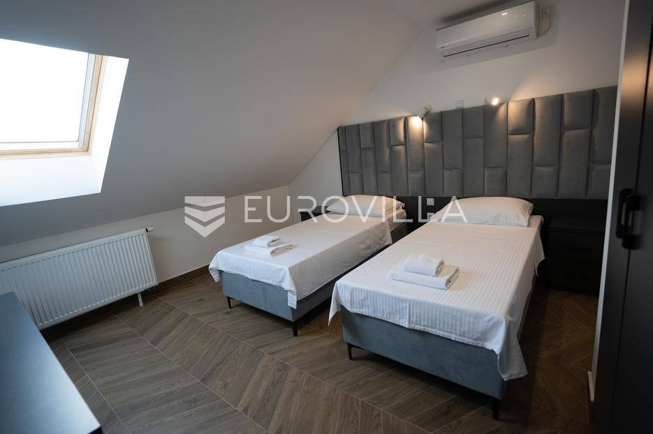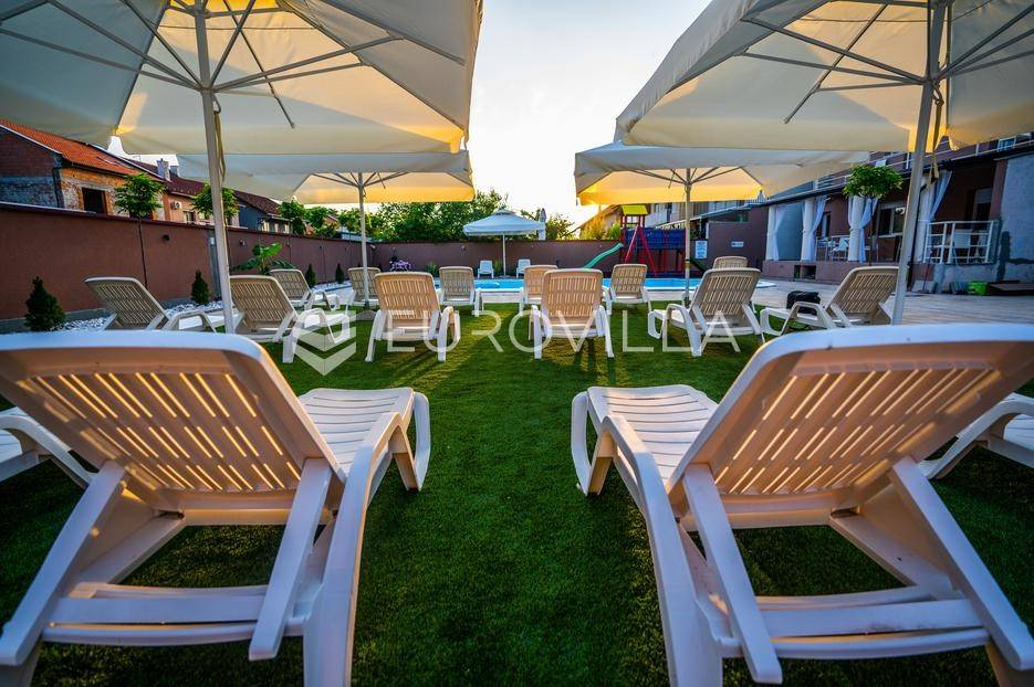 Vukovar, Mitnica, prodaja, 800 m2, poslovna prilika.Predstavljamo jedinstveni kompleks koji čine dvije luksuzno opremljene kuće, smještene na odličnoj lokaciji na Mitnici s predivnim pogledom na Dunav.Kuće se odlikuju izuzetno velikim brojem prostranih soba i luksuzno uređenih kupatila, pružajući apsolutnu fleksibilnost za veliku obitelj ili smještaj gostiju. Kuće se nalaze u mirnom okruženju, udaljeno od gradske buke, idealno za opuštanje, ali s lakim pristupom svim gradskim sadržajima.Neke od ključnih karakteristika su pogled na rijeku Dunav, welnness oaza u sklopu koje imate vanjski bazen, luksuzni jacuzzi za trenutke čistog hedonizma te modernu saunu za detoksikaciju i zdravlje.Objekat ima uporabnu dozvolu. Svaka od kuća se prostire na 4 etaže, grijanje je plinsko, stolarija je PVC. Ukupan broj spavaćih soba u oba objekta je 20. Objekat sadrži 22 kupaonice. Posjeduje 4 garažna mjesta te 20 nenatkrivenih parkirnih mjesta.Ne propustite priliku da postanete vlasnik nekretnine koja spaja mir prirode i vrhunski luksuz. Idealno za investiciju. Povrat investicije 10 godina.Za više informacija javite se na upit.... Više na eurovilla.hr, ID: 973396