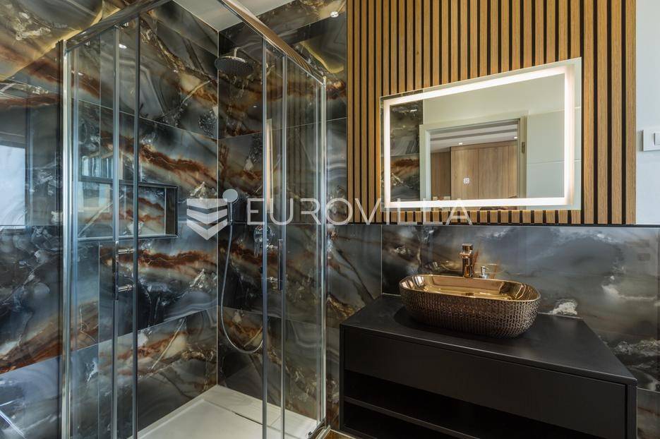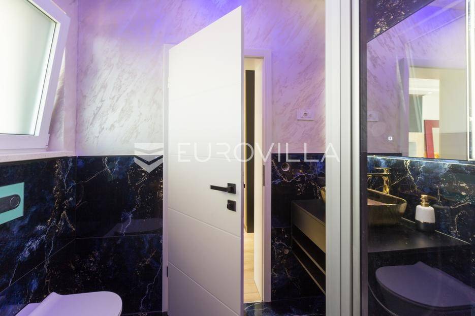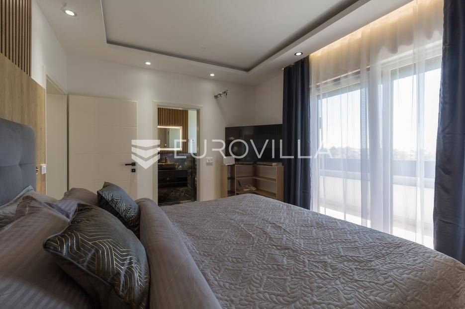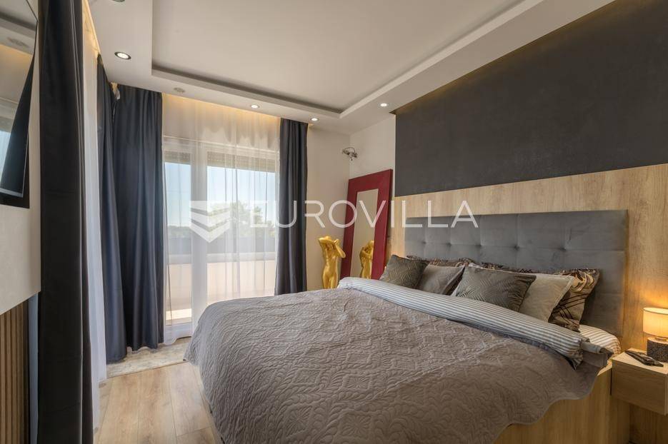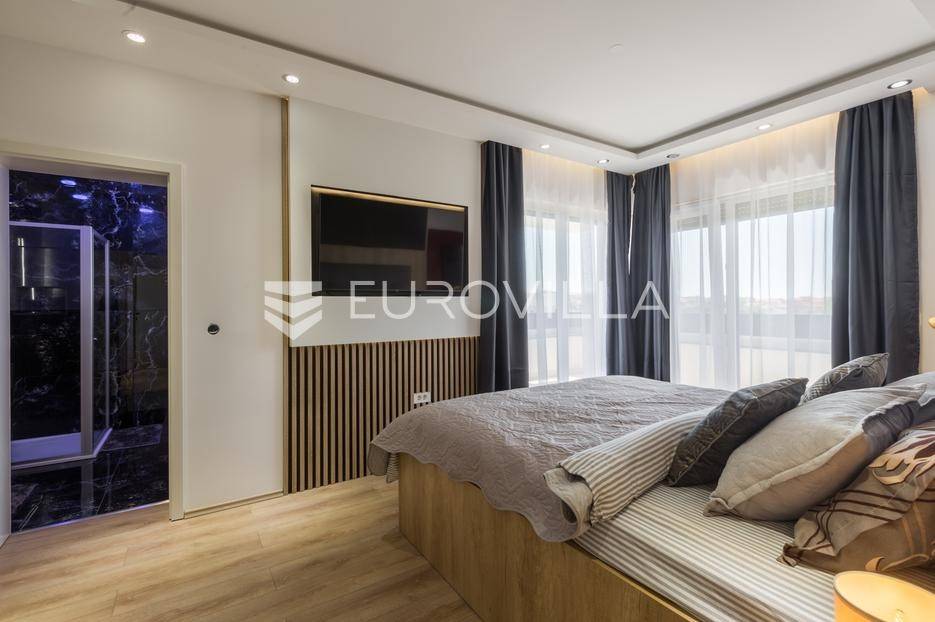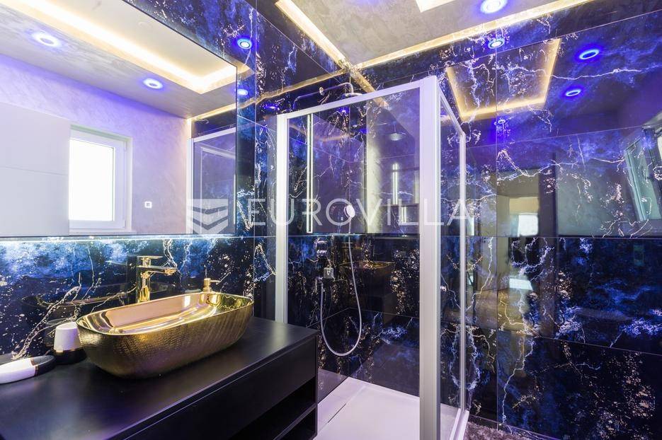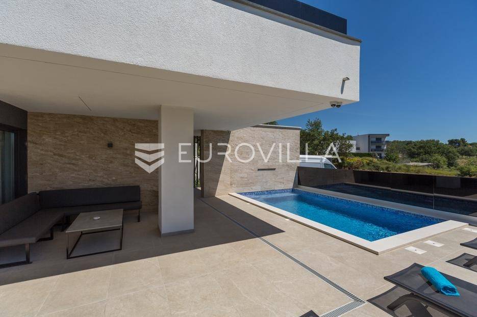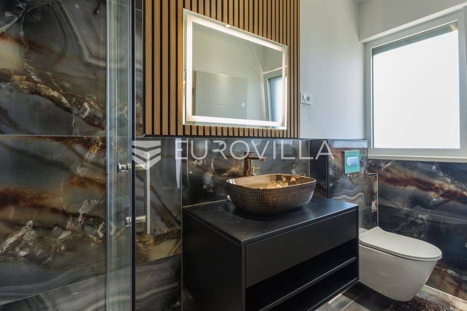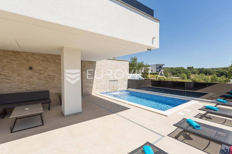 U Medulin, jedno od najprestižnijih turističkih odredišta na jugozapadnoj obali Istre, gdje vas očekuje ova izvanredna, moderna vila koja postavlja nove standarde luksuza i udobnosti. Smještena na parceli od 450 m2, ova pomno osmišljena novogradnja iz 2024. godine prostire se na impresivnih 200 m2 neto korisne površine na dvije etaže, nudeći savršen spoj sofisticiranog dizajna i funkcionalnosti. Udaljenost od samo 400 metara od mora i prekrasnih plaža osigurava lak pristup kristalno čistom Jadranu, dok južna orijentacija osigurava obilje sunčeve svjetlosti tijekom cijelog dana.Po ulasku u prizemlje vile, odmah ćete biti očarani prostranošću i otvorenim konceptom koji besprijekorno spaja unutarnje i vanjske prostore. Suvremeno opremljena kuhinja, s najnovijim aparatima i elegantnim linijama, čini srce doma, savršena za pripremu gastronomskih užitaka. Iz nje se prirodno prelazi u raskošan dnevni boravak, obasjan prirodnim svjetlom koje prodire kroz velike staklene stijene. Ove staklene površine ne samo da pružaju predivan pogled na pažljivo uređeni eksterijer, već i omogućuju izravan izlaz na natkriveni dio terase i glavni adut vanjskog prostora - impresivan bazen.Vanjski prostor je prava oaza mira i opuštanja. Bazen, okružen visokom kamenom stijenom iz koje se preljeva umirujući slap vode, stvara jedinstven ambijent. Pažljivo odabrano zeleno raslinje dominira cijelim dvorištem, stvarajući dojam tropskog vrta koji se savršeno stapa s arhitekturom vile, dajući joj toplinu i prirodni šarm. Uz bazen se nalazi ljetna kuhinja i prostor za roštilj, idealan za druženja i uživanje u mediteranskim večerima pod zvijezdama. Cijeli eksterijer osmišljen je s ciljem pružanja maksimalne privatnosti i opuštanja, pozivajući na bezbrižno uživanje u luksuznom okruženju.Unutarnje stubište, remek-djelo modernog dizajna i osvjetljenja, vodi vas na gornju etažu vile. Posebno osmišljena rasvjeta, koja se u večernjim satima diskretno ističe, stvara atmosferu topline i elegancije duž cijelog stubišta. Na ovoj etaži smještene su tri elegantne i prostrane spavaće sobe, svaka pomno uređena s naglaskom na udobnost i privatnost. Svaka spavaća soba posjeduje vlastitu modernu kupaonicu, opremljenu vrhunskim sanitarijama i dizajnerskim detaljima, što osigurava potpuni komfor za svakog ukućana ili gosta. Posebno se ističe master spavaća soba koja nudi izdašan prostor, osiguravajući privatno utočište za odmor i opuštanje. Sve tri spavaće sobe imaju izravan izlaz na veliku natkrivenu terasu, s koje se pruža pogled na okoliš i koja je idealna za jutarnju kavu ili večernje opuštanje uz svjež zrak.Ova iznimna nekretnina opremljena je najmodernijim 'smart home' sustavom, omogućavajući vam potpunu kontrolu nad osvjetljenjem, temperaturom, sigurnošću i ostalim funkcijama vile putem pametnog telefona ili tableta, čime se postiže neviđena razina udobnosti i energetske učinkovitosti. Kamin u dnevnom boravku pruža dodatnu toplinu i ugođaj tijekom hladnijih mjeseci, dok ostava unutar vile pruža praktično rješenje za skladištenje. Vila je u potpunosti namještena i spremna za useljenje, s pažljivo odabranim namještajem i dekoracijama koji reflektiraju moderan, ali topao stil.Dvorišni ulazni dio vile pametno je osmišljen s dovoljno prostora za parking tri vozila, diskretno smješten u nižem dijelu terena, čime se ne narušava estetski sklad cjelokupnog imanja. Ovo je idealna nekretnina za sve koji traže luksuzan dom za obitelj, mirno utočište za odmor ili pak iznimnu priliku za investiciju u turističke svrhe. Medulin, sa svojim bogatim sadržajima, predivnim plažama i blizinom Pule te nacionalnog parka Brijuni, nudi neiscrpne mogućnosti za uživanje u prirodi, kulturi i aktivnom odmoru. Ova vila predstavlja vrhunac suvremenog življenja u srcu Istre, nudeći privatnost, udobnost i neusporedivu ljepotu.Ne propustite priliku postati vlasnikom ovog arhitektonskog bisera u Medulinu, gdje se luksuz susreće s prirodom, a moderni dizajn s toplinom doma. Za više informacija o ovoj predivnoj vili i dogovor za razgledavanje, stojimo Vam na raspolaganju.... Više na eurovilla.hr, ID: 980632