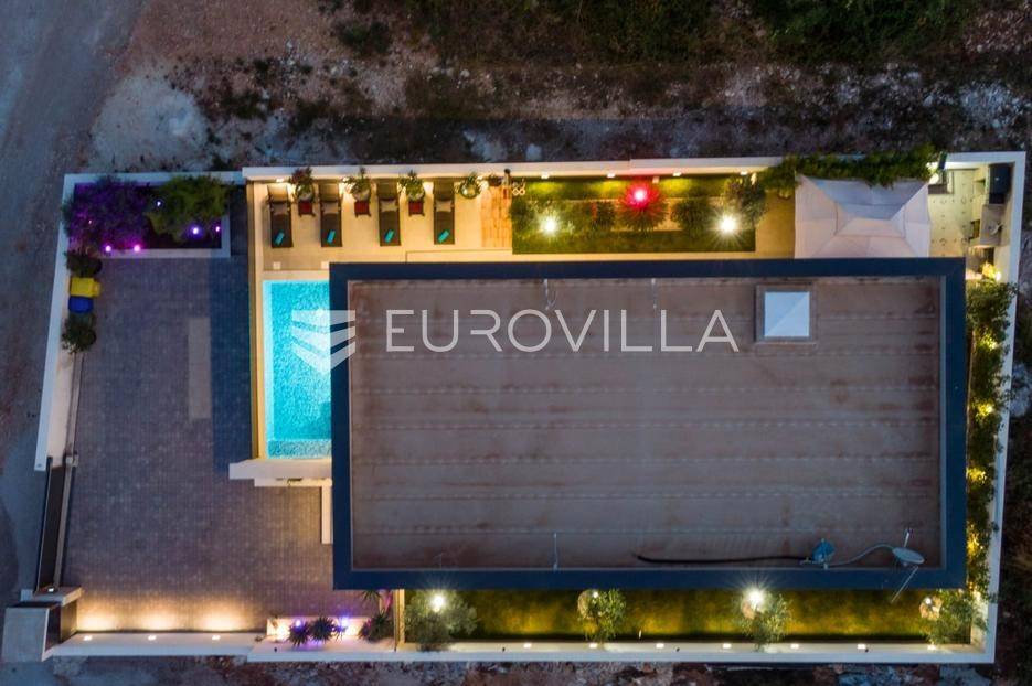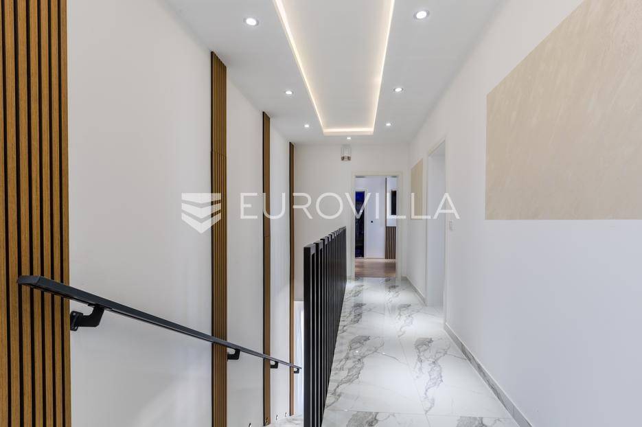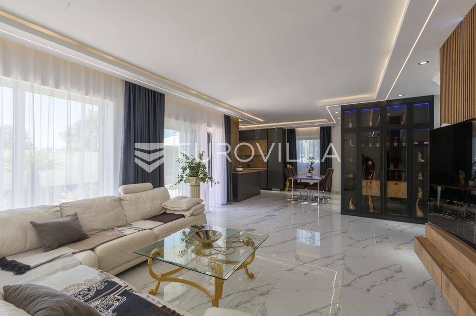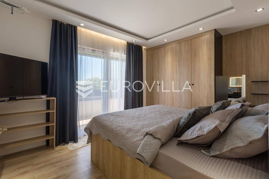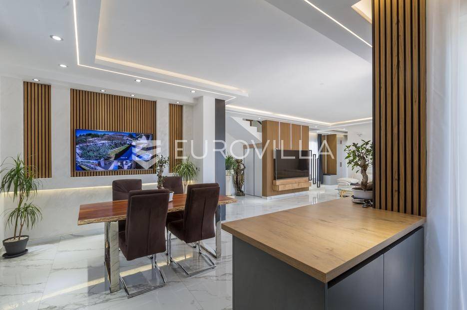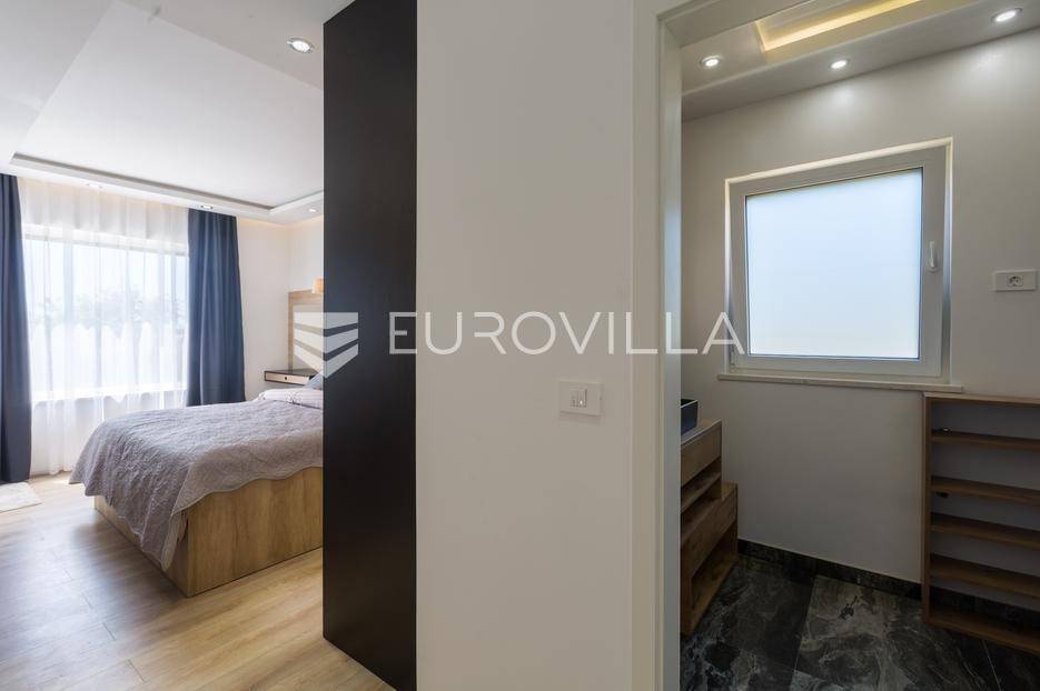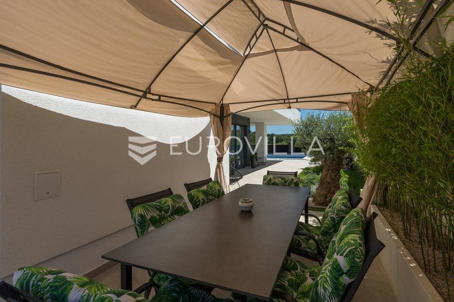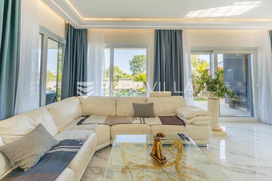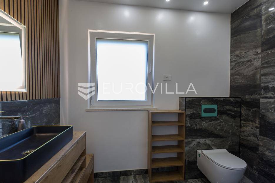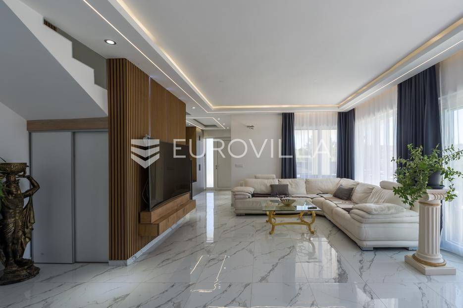 U Medulin, jedno od najprestižnijih turističkih odredišta na jugozapadnoj obali Istre, gdje vas očekuje ova izvanredna, moderna vila koja postavlja nove standarde luksuza i udobnosti. Smještena na parceli od 450 m2, ova pomno osmišljena novogradnja iz 2024. godine prostire se na impresivnih 200 m2 neto korisne površine na dvije etaže, nudeći savršen spoj sofisticiranog dizajna i funkcionalnosti. Udaljenost od samo 400 metara od mora i prekrasnih plaža osigurava lak pristup kristalno čistom Jadranu, dok južna orijentacija osigurava obilje sunčeve svjetlosti tijekom cijelog dana.Po ulasku u prizemlje vile, odmah ćete biti očarani prostranošću i otvorenim konceptom koji besprijekorno spaja unutarnje i vanjske prostore. Suvremeno opremljena kuhinja, s najnovijim aparatima i elegantnim linijama, čini srce doma, savršena za pripremu gastronomskih užitaka. Iz nje se prirodno prelazi u raskošan dnevni boravak, obasjan prirodnim svjetlom koje prodire kroz velike staklene stijene. Ove staklene površine ne samo da pružaju predivan pogled na pažljivo uređeni eksterijer, već i omogućuju izravan izlaz na natkriveni dio terase i glavni adut vanjskog prostora - impresivan bazen.Vanjski prostor je prava oaza mira i opuštanja. Bazen, okružen visokom kamenom stijenom iz koje se preljeva umirujući slap vode, stvara jedinstven ambijent. Pažljivo odabrano zeleno raslinje dominira cijelim dvorištem, stvarajući dojam tropskog vrta koji se savršeno stapa s arhitekturom vile, dajući joj toplinu i prirodni šarm. Uz bazen se nalazi ljetna kuhinja i prostor za roštilj, idealan za druženja i uživanje u mediteranskim večerima pod zvijezdama. Cijeli eksterijer osmišljen je s ciljem pružanja maksimalne privatnosti i opuštanja, pozivajući na bezbrižno uživanje u luksuznom okruženju.Unutarnje stubište, remek-djelo modernog dizajna i osvjetljenja, vodi vas na gornju etažu vile. Posebno osmišljena rasvjeta, koja se u večernjim satima diskretno ističe, stvara atmosferu topline i elegancije duž cijelog stubišta. Na ovoj etaži smještene su tri elegantne i prostrane spavaće sobe, svaka pomno uređena s naglaskom na udobnost i privatnost. Svaka spavaća soba posjeduje vlastitu modernu kupaonicu, opremljenu vrhunskim sanitarijama i dizajnerskim detaljima, što osigurava potpuni komfor za svakog ukućana ili gosta. Posebno se ističe master spavaća soba koja nudi izdašan prostor, osiguravajući privatno utočište za odmor i opuštanje. Sve tri spavaće sobe imaju izravan izlaz na veliku natkrivenu terasu, s koje se pruža pogled na okoliš i koja je idealna za jutarnju kavu ili večernje opuštanje uz svjež zrak.Ova iznimna nekretnina opremljena je najmodernijim 'smart home' sustavom, omogućavajući vam potpunu kontrolu nad osvjetljenjem, temperaturom, sigurnošću i ostalim funkcijama vile putem pametnog telefona ili tableta, čime se postiže neviđena razina udobnosti i energetske učinkovitosti. Kamin u dnevnom boravku pruža dodatnu toplinu i ugođaj tijekom hladnijih mjeseci, dok ostava unutar vile pruža praktično rješenje za skladištenje. Vila je u potpunosti namještena i spremna za useljenje, s pažljivo odabranim namještajem i dekoracijama koji reflektiraju moderan, ali topao stil.Dvorišni ulazni dio vile pametno je osmišljen s dovoljno prostora za parking tri vozila, diskretno smješten u nižem dijelu terena, čime se ne narušava estetski sklad cjelokupnog imanja. Ovo je idealna nekretnina za sve koji traže luksuzan dom za obitelj, mirno utočište za odmor ili pak iznimnu priliku za investiciju u turističke svrhe. Medulin, sa svojim bogatim sadržajima, predivnim plažama i blizinom Pule te nacionalnog parka Brijuni, nudi neiscrpne mogućnosti za uživanje u prirodi, kulturi i aktivnom odmoru. Ova vila predstavlja vrhunac suvremenog življenja u srcu Istre, nudeći privatnost, udobnost i neusporedivu ljepotu.Ne propustite priliku postati vlasnikom ovog arhitektonskog bisera u Medulinu, gdje se luksuz susreće s prirodom, a moderni dizajn s toplinom doma. Za više informacija o ovoj predivnoj vili i dogovor za razgledavanje, stojimo Vam na raspolaganju.... Više na eurovilla.hr, ID: 980632