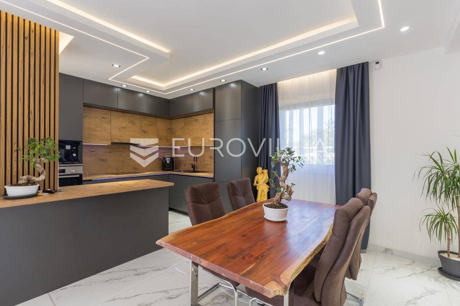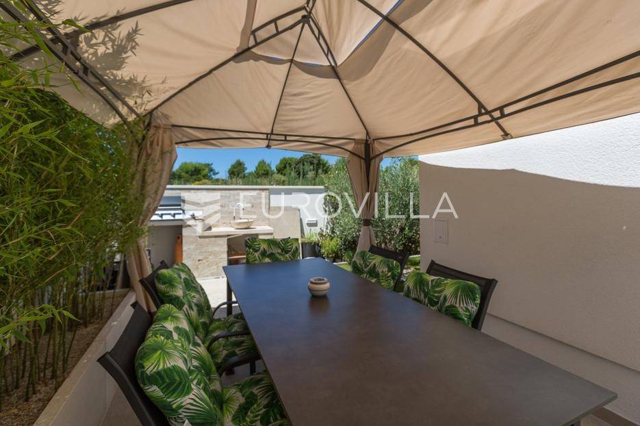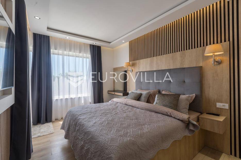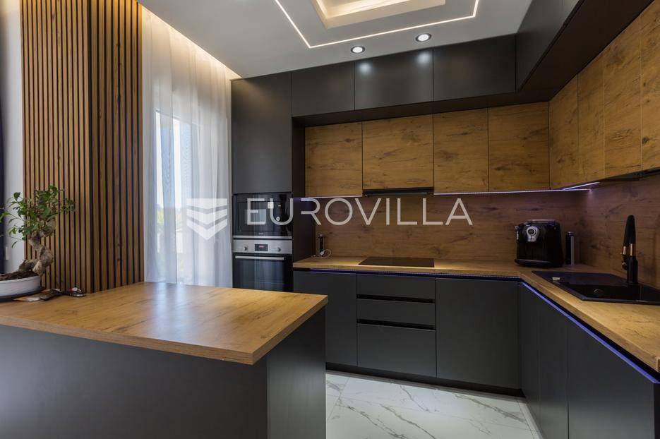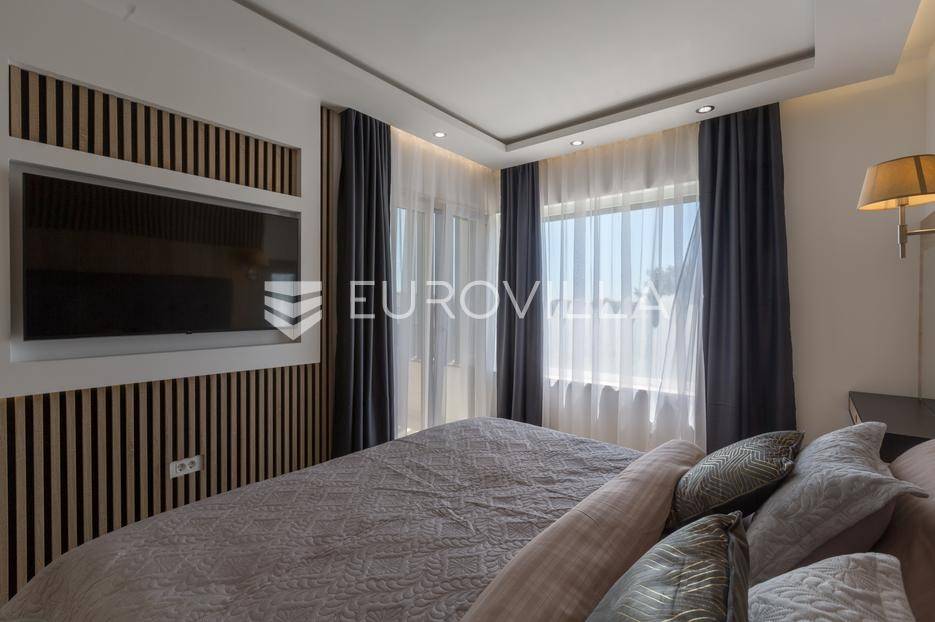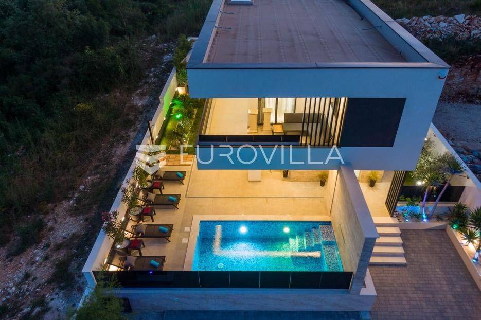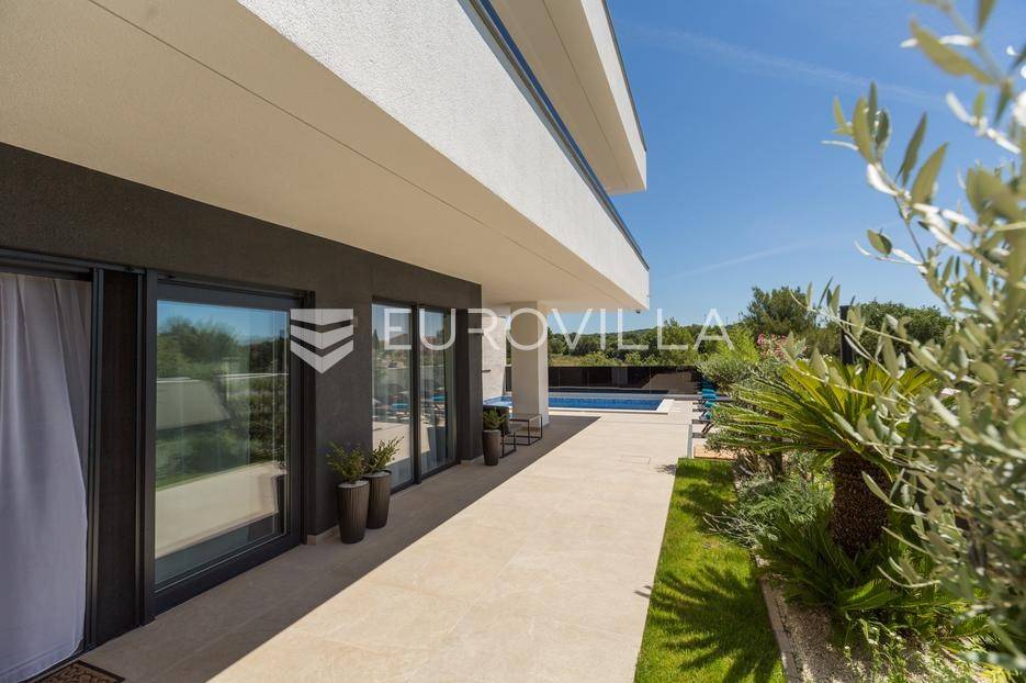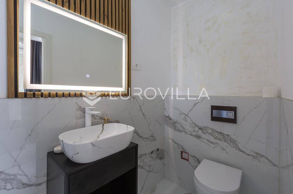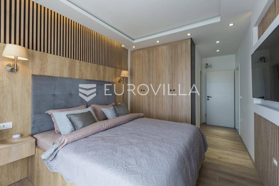 U Medulin, jedno od najprestižnijih turističkih odredišta na jugozapadnoj obali Istre, gdje vas očekuje ova izvanredna, moderna vila koja postavlja nove standarde luksuza i udobnosti. Smještena na parceli od 450 m2, ova pomno osmišljena novogradnja iz 2024. godine prostire se na impresivnih 200 m2 neto korisne površine na dvije etaže, nudeći savršen spoj sofisticiranog dizajna i funkcionalnosti. Udaljenost od samo 400 metara od mora i prekrasnih plaža osigurava lak pristup kristalno čistom Jadranu, dok južna orijentacija osigurava obilje sunčeve svjetlosti tijekom cijelog dana.Po ulasku u prizemlje vile, odmah ćete biti očarani prostranošću i otvorenim konceptom koji besprijekorno spaja unutarnje i vanjske prostore. Suvremeno opremljena kuhinja, s najnovijim aparatima i elegantnim linijama, čini srce doma, savršena za pripremu gastronomskih užitaka. Iz nje se prirodno prelazi u raskošan dnevni boravak, obasjan prirodnim svjetlom koje prodire kroz velike staklene stijene. Ove staklene površine ne samo da pružaju predivan pogled na pažljivo uređeni eksterijer, već i omogućuju izravan izlaz na natkriveni dio terase i glavni adut vanjskog prostora - impresivan bazen.Vanjski prostor je prava oaza mira i opuštanja. Bazen, okružen visokom kamenom stijenom iz koje se preljeva umirujući slap vode, stvara jedinstven ambijent. Pažljivo odabrano zeleno raslinje dominira cijelim dvorištem, stvarajući dojam tropskog vrta koji se savršeno stapa s arhitekturom vile, dajući joj toplinu i prirodni šarm. Uz bazen se nalazi ljetna kuhinja i prostor za roštilj, idealan za druženja i uživanje u mediteranskim večerima pod zvijezdama. Cijeli eksterijer osmišljen je s ciljem pružanja maksimalne privatnosti i opuštanja, pozivajući na bezbrižno uživanje u luksuznom okruženju.Unutarnje stubište, remek-djelo modernog dizajna i osvjetljenja, vodi vas na gornju etažu vile. Posebno osmišljena rasvjeta, koja se u večernjim satima diskretno ističe, stvara atmosferu topline i elegancije duž cijelog stubišta. Na ovoj etaži smještene su tri elegantne i prostrane spavaće sobe, svaka pomno uređena s naglaskom na udobnost i privatnost. Svaka spavaća soba posjeduje vlastitu modernu kupaonicu, opremljenu vrhunskim sanitarijama i dizajnerskim detaljima, što osigurava potpuni komfor za svakog ukućana ili gosta. Posebno se ističe master spavaća soba koja nudi izdašan prostor, osiguravajući privatno utočište za odmor i opuštanje. Sve tri spavaće sobe imaju izravan izlaz na veliku natkrivenu terasu, s koje se pruža pogled na okoliš i koja je idealna za jutarnju kavu ili večernje opuštanje uz svjež zrak.Ova iznimna nekretnina opremljena je najmodernijim 'smart home' sustavom, omogućavajući vam potpunu kontrolu nad osvjetljenjem, temperaturom, sigurnošću i ostalim funkcijama vile putem pametnog telefona ili tableta, čime se postiže neviđena razina udobnosti i energetske učinkovitosti. Kamin u dnevnom boravku pruža dodatnu toplinu i ugođaj tijekom hladnijih mjeseci, dok ostava unutar vile pruža praktično rješenje za skladištenje. Vila je u potpunosti namještena i spremna za useljenje, s pažljivo odabranim namještajem i dekoracijama koji reflektiraju moderan, ali topao stil.Dvorišni ulazni dio vile pametno je osmišljen s dovoljno prostora za parking tri vozila, diskretno smješten u nižem dijelu terena, čime se ne narušava estetski sklad cjelokupnog imanja. Ovo je idealna nekretnina za sve koji traže luksuzan dom za obitelj, mirno utočište za odmor ili pak iznimnu priliku za investiciju u turističke svrhe. Medulin, sa svojim bogatim sadržajima, predivnim plažama i blizinom Pule te nacionalnog parka Brijuni, nudi neiscrpne mogućnosti za uživanje u prirodi, kulturi i aktivnom odmoru. Ova vila predstavlja vrhunac suvremenog življenja u srcu Istre, nudeći privatnost, udobnost i neusporedivu ljepotu.Ne propustite priliku postati vlasnikom ovog arhitektonskog bisera u Medulinu, gdje se luksuz susreće s prirodom, a moderni dizajn s toplinom doma. Za više informacija o ovoj predivnoj vili i dogovor za razgledavanje, stojimo Vam na raspolaganju.... Više na eurovilla.hr, ID: 980632