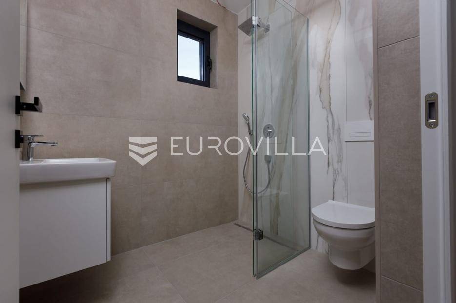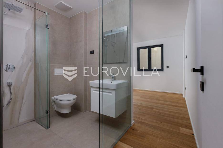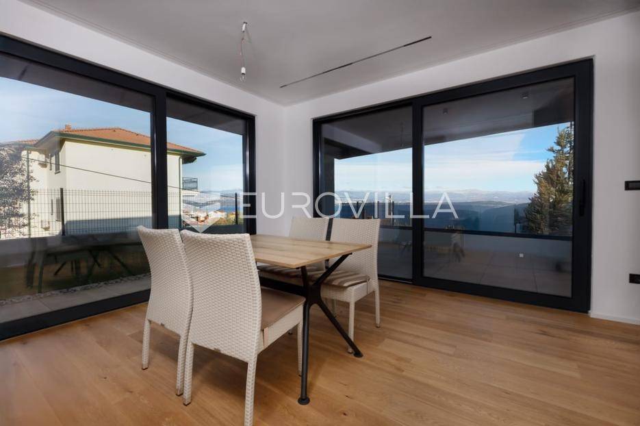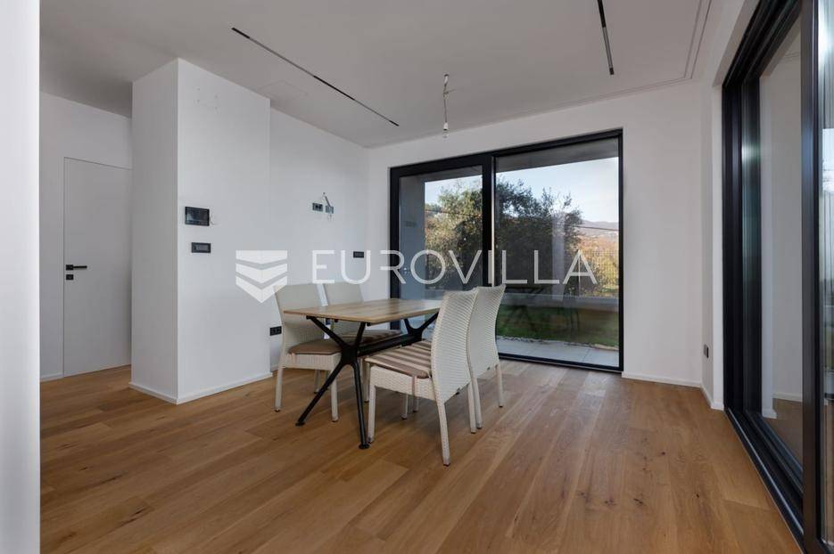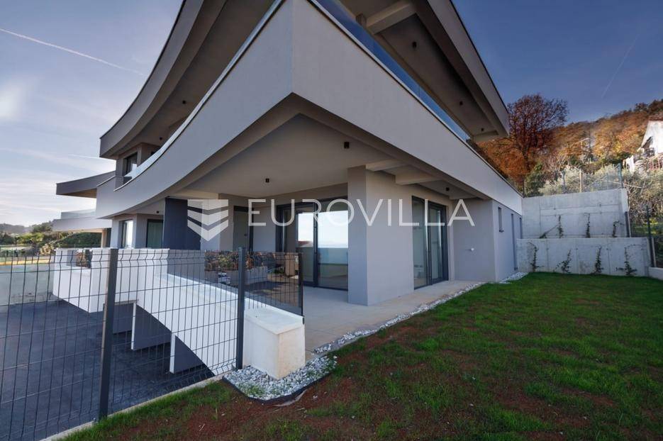 U mirnoj i iznimno atraktivnoj mikrolokaciji Lovrana, svega nekoliko minuta hoda od plaže i samog centra mjesta, prodaje se reprezentativan stan (B-S1) smješten na 1.katu moderne novogradnje s ukupno tri stambene jedinice.Stan netto stambene površine 86,99 m² odlikuje se pažljivo osmišljenim i funkcionalnim rasporedom prostorija. Sastoji se od dvije prostrane spavaće sobe, dvije kupaonice, dodatnog WC-a te elegantnog open-space prostora koji objedinjuje dnevni boravak, kuhinju i blagovaonicu. Iz dnevnog dijela pruža se otvoren pogled na more, uz izravan izlaz na veliku natkrivenu terasu.Dodatno, stanu pripada garažno parkirno mjesto, parkirno mjesto na okućnici kao i prostrano unutarnje spremište, čime se osigurava maksimalna funkcionalnost svakodnevnog života.Ukupna površina nekretnine iznosi 106,73 m², uključujući sve pripadajuće prostore.Zgrada je izvedena prema visokim standardima moderne gradnje te je opremljena aluminijskom stolarijom, podnim grijanjem, dizalicom topline i klimatizacijskim sustavima u svim prostorijama.Smještena u tihoj ulici bez prometa, ova nekretnina pruža izniman osjećaj mira, a istovremeno omogućuje brz i lagan pristup svim sadržajima.Ova nekretnina predstavlja rijetku i iznimno kvalitetnu priliku za kupce koji traže luksuzan penthouse u novogradnji, u neposrednoj blizini mora i Opatije, s naglaskom na privatnost, kvalitetu i dugoročnu vrijednost.Za dodatne informacije slobodno nas kontaktirajte.... Više na eurovilla.hr, ID: 982907