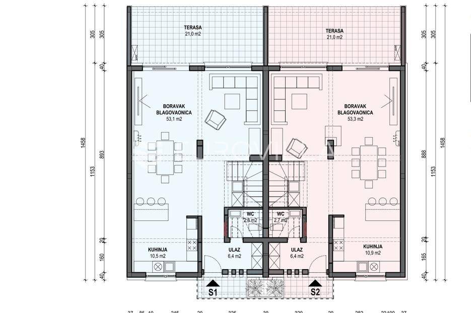 Slavonski Brod, Kolonija, četverosoban dvoetažni stan 163,32 m2, s vlastitim vrtom od cca 70 m2. Stan se nalazi u dvojnon objektu, te ima parking.Prizemlje se sastoji od predsoblja, wc-a, te open space dnevnog boravka, kuhinje i blagovaonice odakle se izlazi na terasu i vlastiti vrt. Na katu dolazimo do hodnika iz kojega se izlazi na lođu, 2 spavaće sobe, vešeraja, te glavne spavaće sobe s vlastitom kupaonicom i garderobom.Stan se nalazi u mirnom dijelu brodskog naselja Kolonija.Za više informacija stojimo na raspolaganju.... Više na eurovilla.hr, ID: 998120