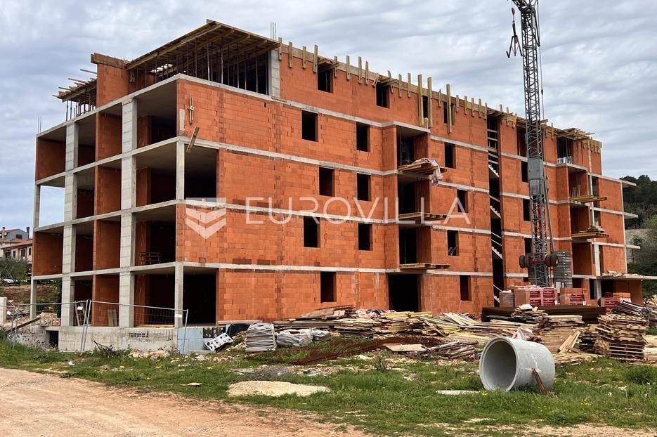 Na mirnoj lokaciji, udaljenoj od gradske vreve i buke, a na svega par minuta vožnje od centra Pule te mora, smjestila se ova višestambena moderna zgrada sa stanovima od 46 do 136 m2. Stanovi se protežu na četiri kata, dok je parking osiguran ispred zgrade u vidu vanjskih parkirnih mjesta ili u garažnim parkirnim mjestima koji se protežu na - 2 etaže. Čitava zgrada je povezana s liftom.Navedeni stan koji prodajemo, oznake je A4, nalazi se u prizemlju zgrade, ukupne površine je 62 m2 te se sastoji od : ulaznog hodnika, spavaće sobe, kupaonice, dnevnog boravka s kuhinjom i blagovaonom te loggie. Uz stan dolazi i garažno parkirno mjesto površine 13.75 m2 ( 6.87 m2 ) što čini ukupnu površinu. Površina stamog stana je 55 m2.Podno električno grijanje kroz cijeli stan, dok je za hlađenje zadužena inverter klima uređaj. ALU stolarija u antracit bojama. Predviđen završetak izgradnje je ljeto 2026. godine.Kupac oslobođen plaćanja poreza na promet nekretninama.Za više informacija o ovom projektu stojimo Vam na raspolaganju.... Više na eurovilla.hr, ID: 811169