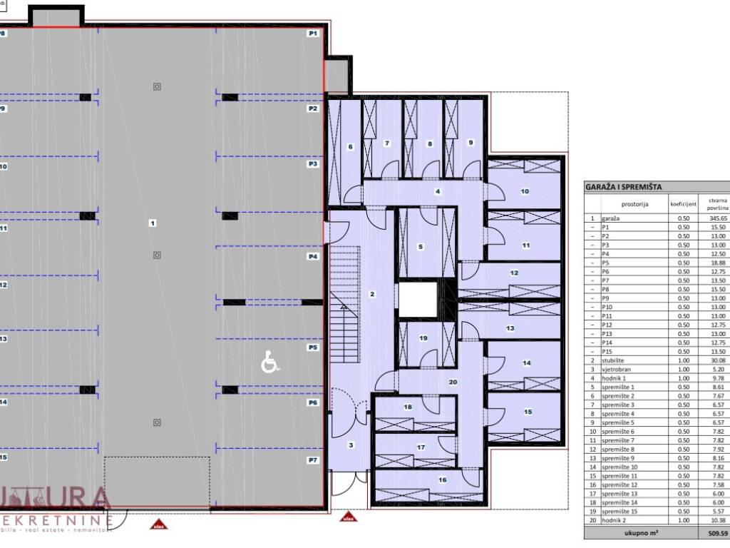 U cijenu i kvadraturu nisu uračunati garažno mjesto i spremište u podrumu zgrade; postoji mogućnost odabira istih.