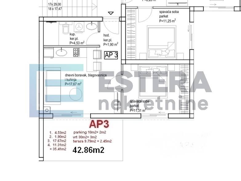 - Neto korisna površina (NKP): 42,86 m2