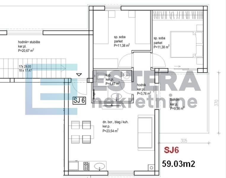 - Dnevni boravak s kuhinjom i blagovaonicom